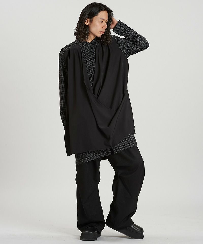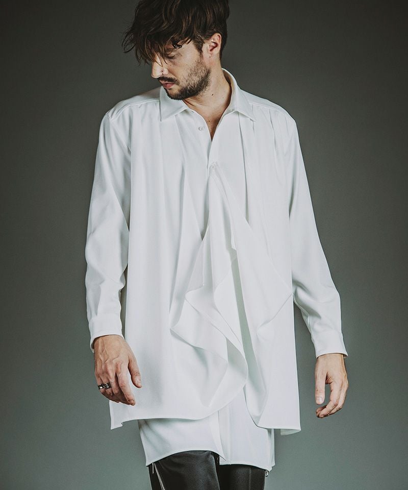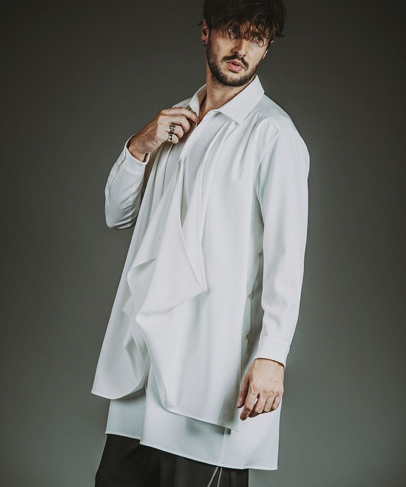 NO ID. 30%OFF【NO ID.(ノーアイディー)】ドレープロングSH シャツ(457006-370S)