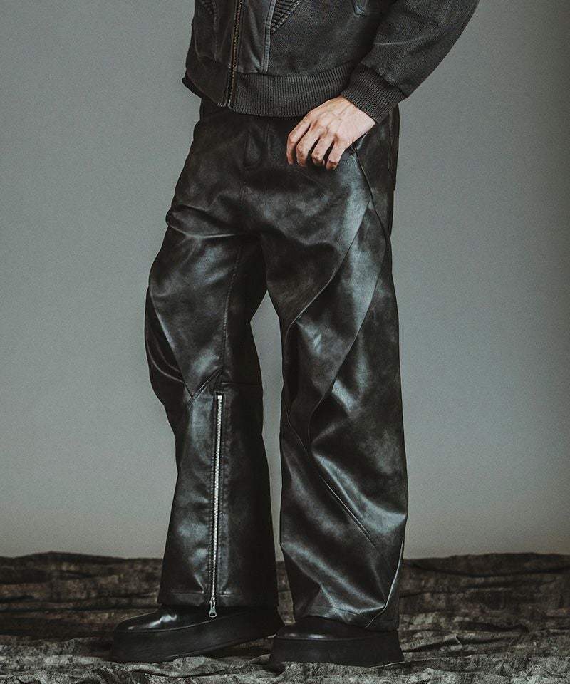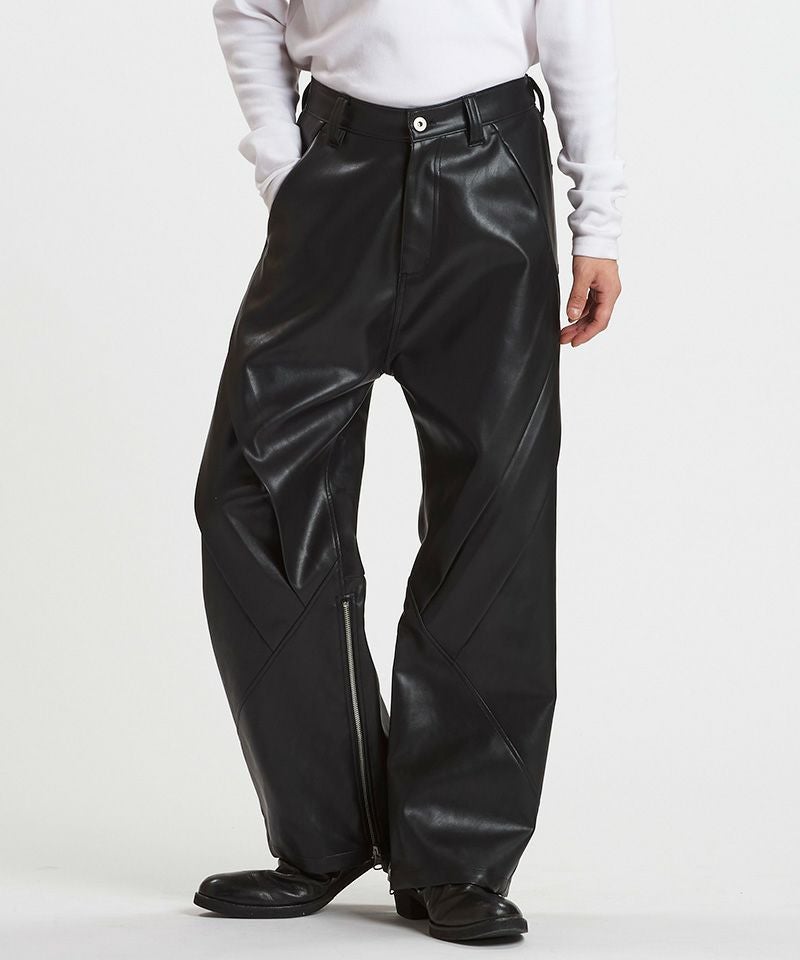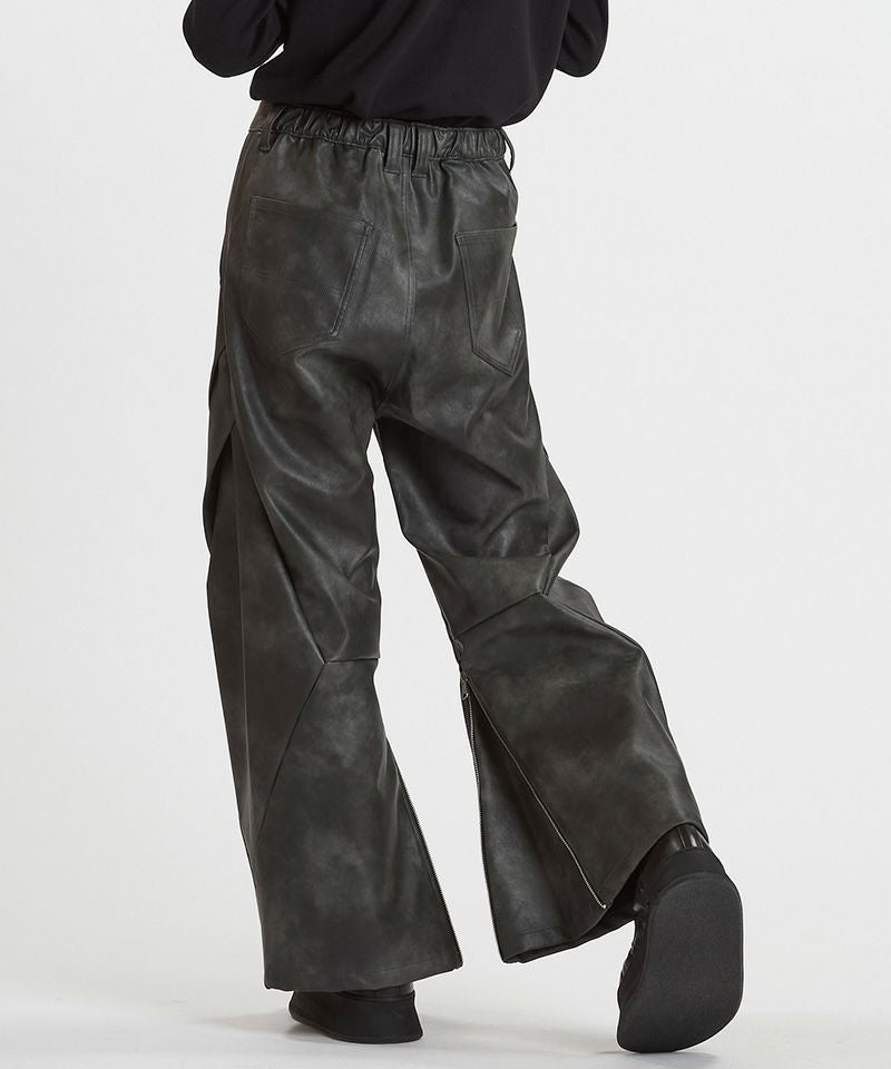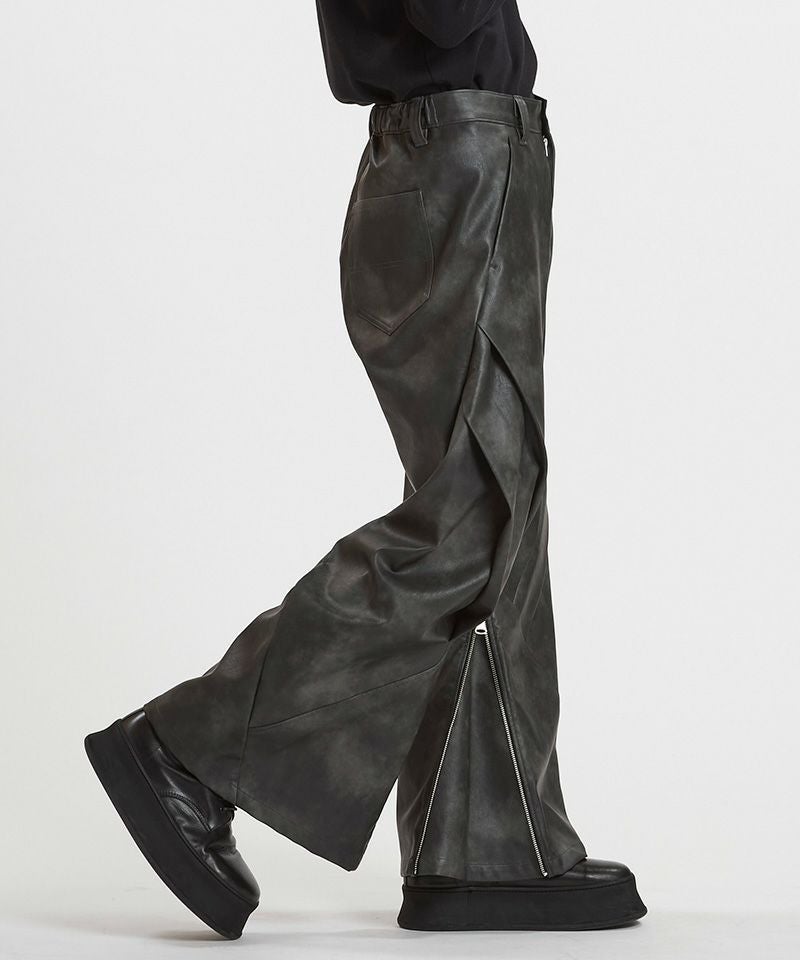 NO ID. 30%OFF【NO ID.(ノーアイディー)】シンセティックレザーZIPフレアPT パンツ(857006-347P)