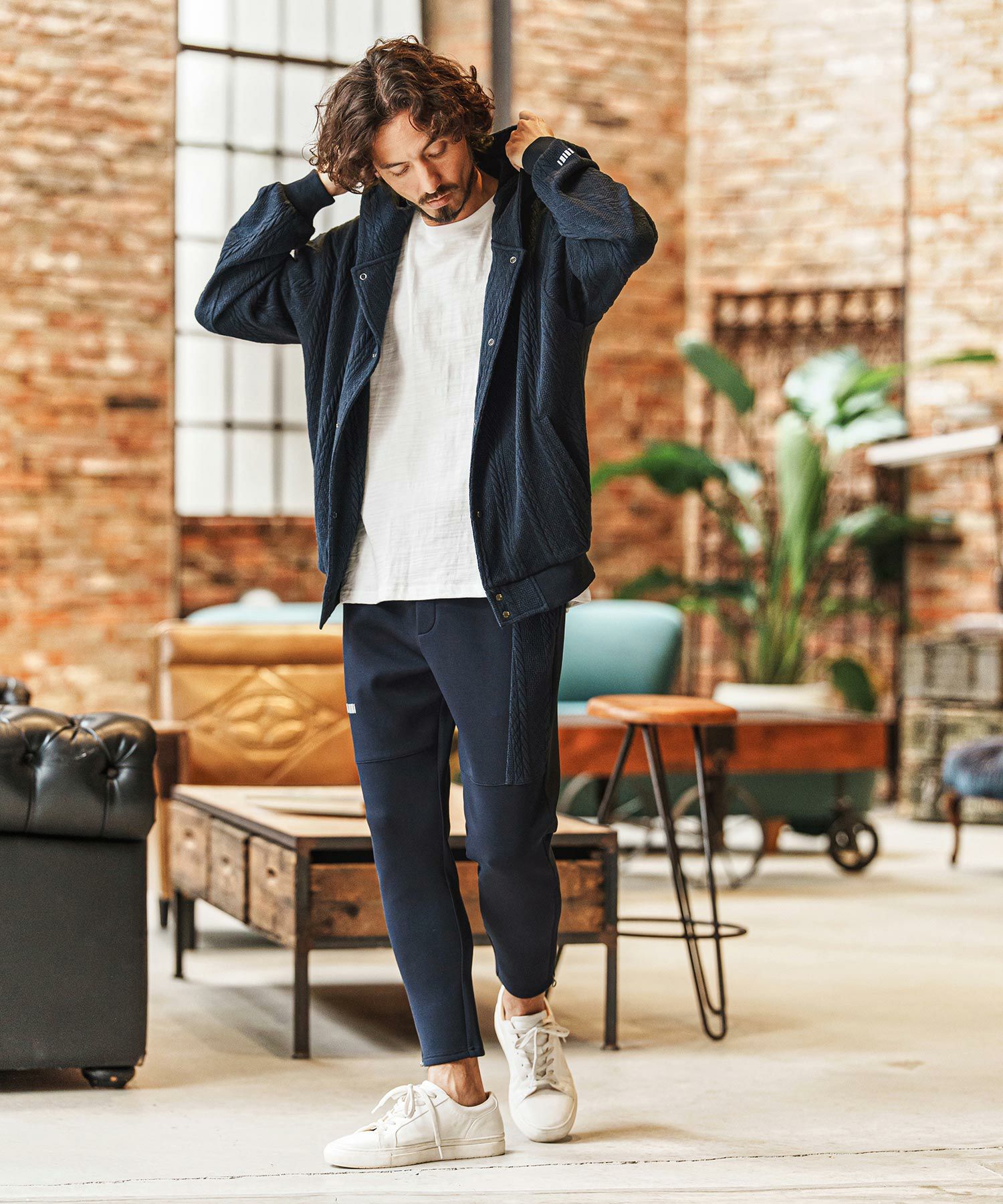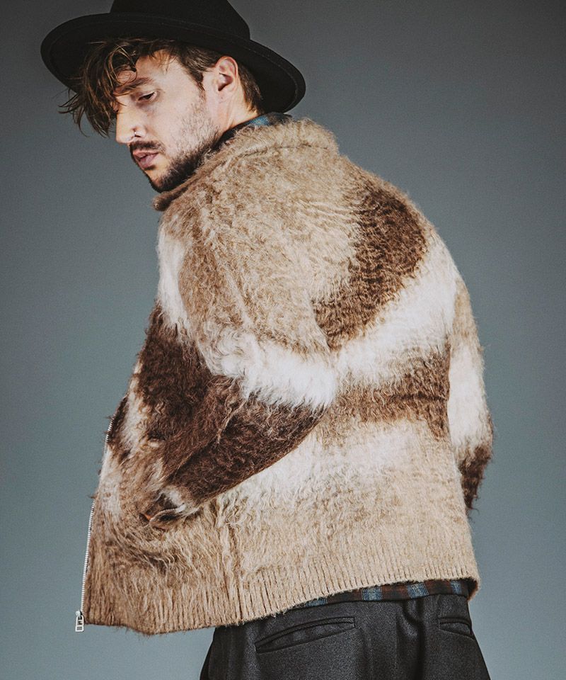 NO ID. 30%OFF【NO ID.(ノーアイディー)】シャギージャカードニットBLZ ブルゾン(857010-346K)