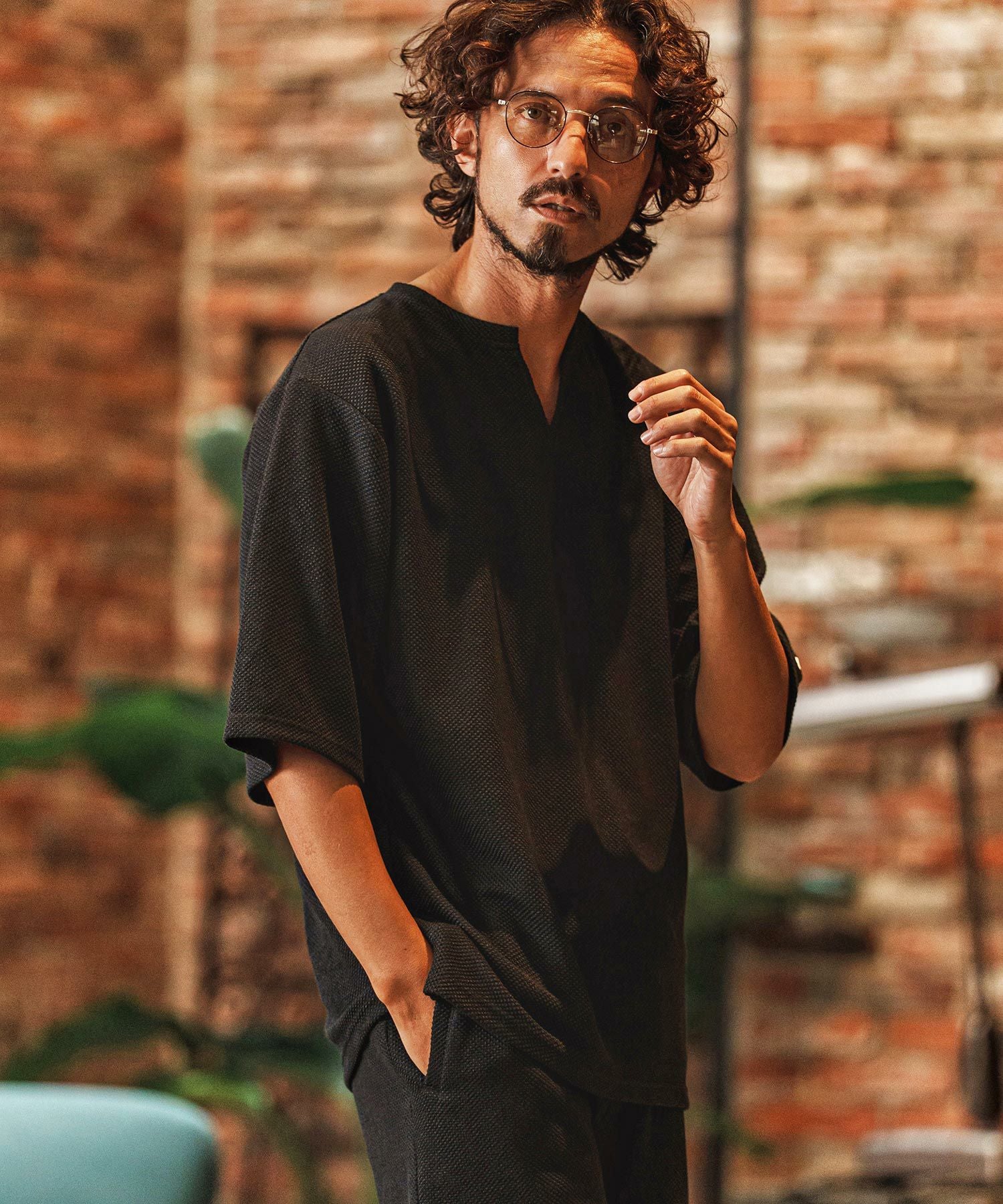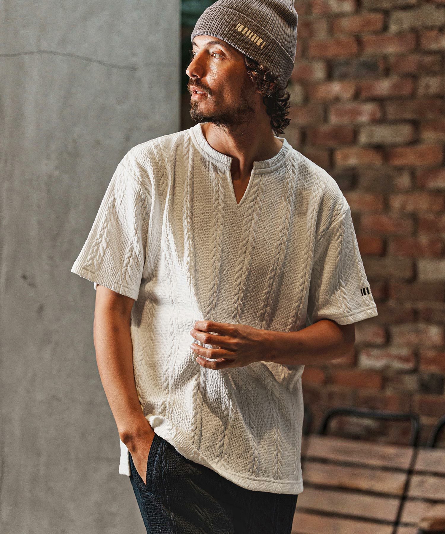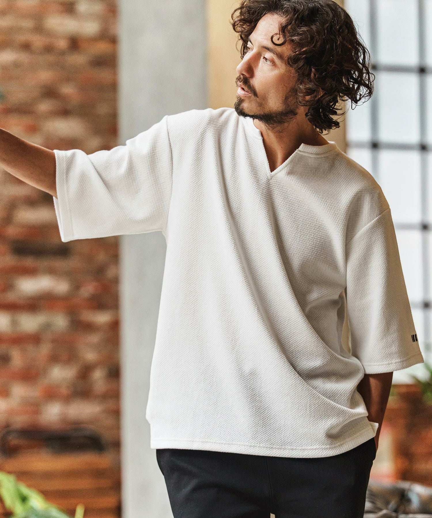felkod 【felkod(フィルコッド)】Waffle Mesh Key Neck Pullover キーネックTシャツ(F26S080)
