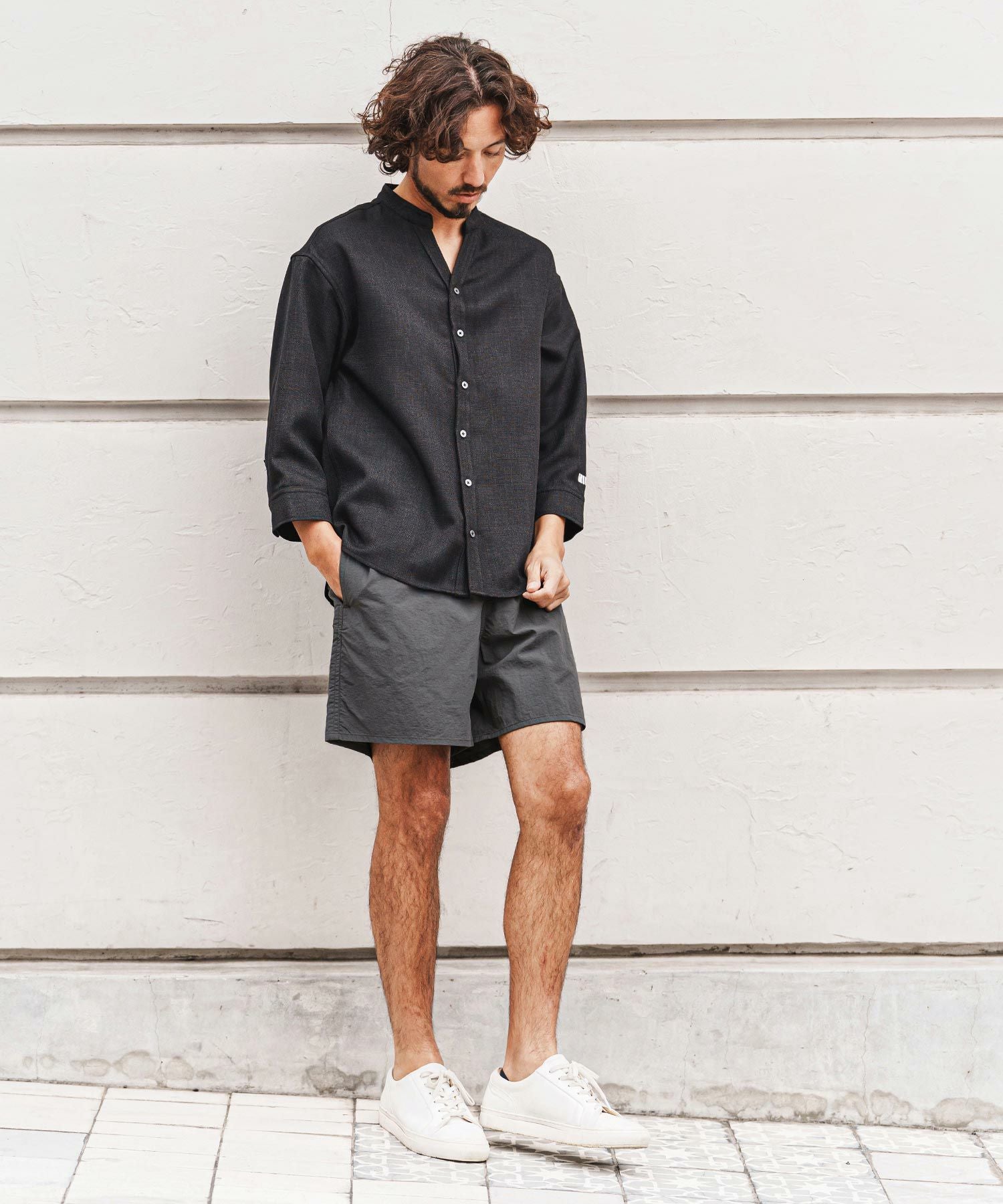 felkod 【felkod(フィルコッド)】Linen Like Fabric Band Collar Shirts バンドカラー七分袖シャツ(F26S160)