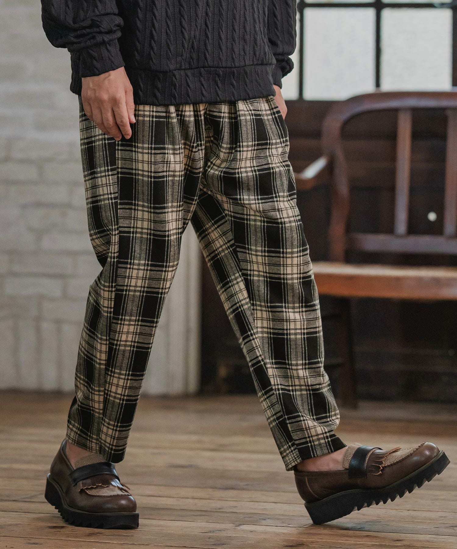 STOF 【STOF(ストフ)】MIX CHECK BONTAGE PANTS ボンテージパンツ(SF26SS-16)