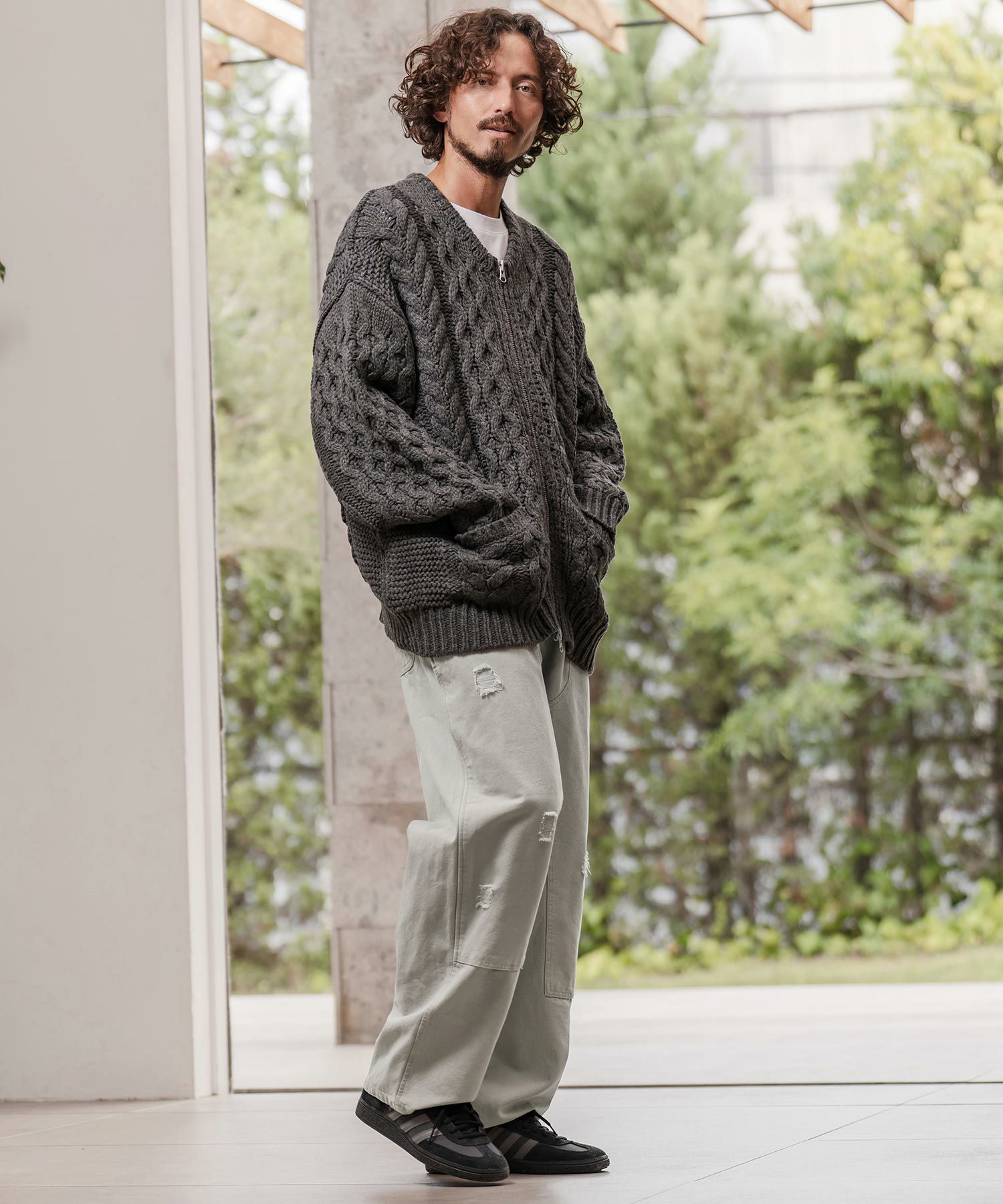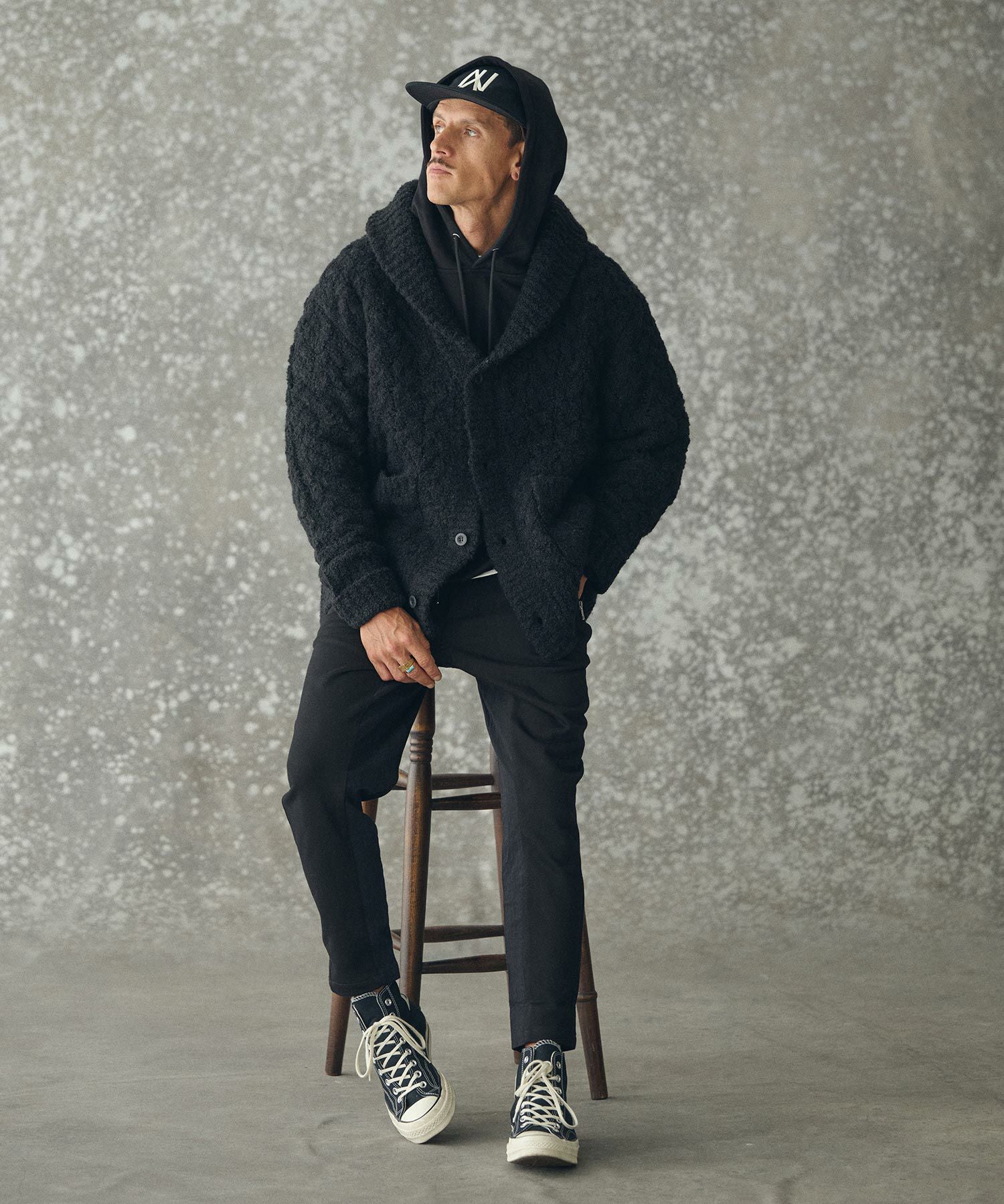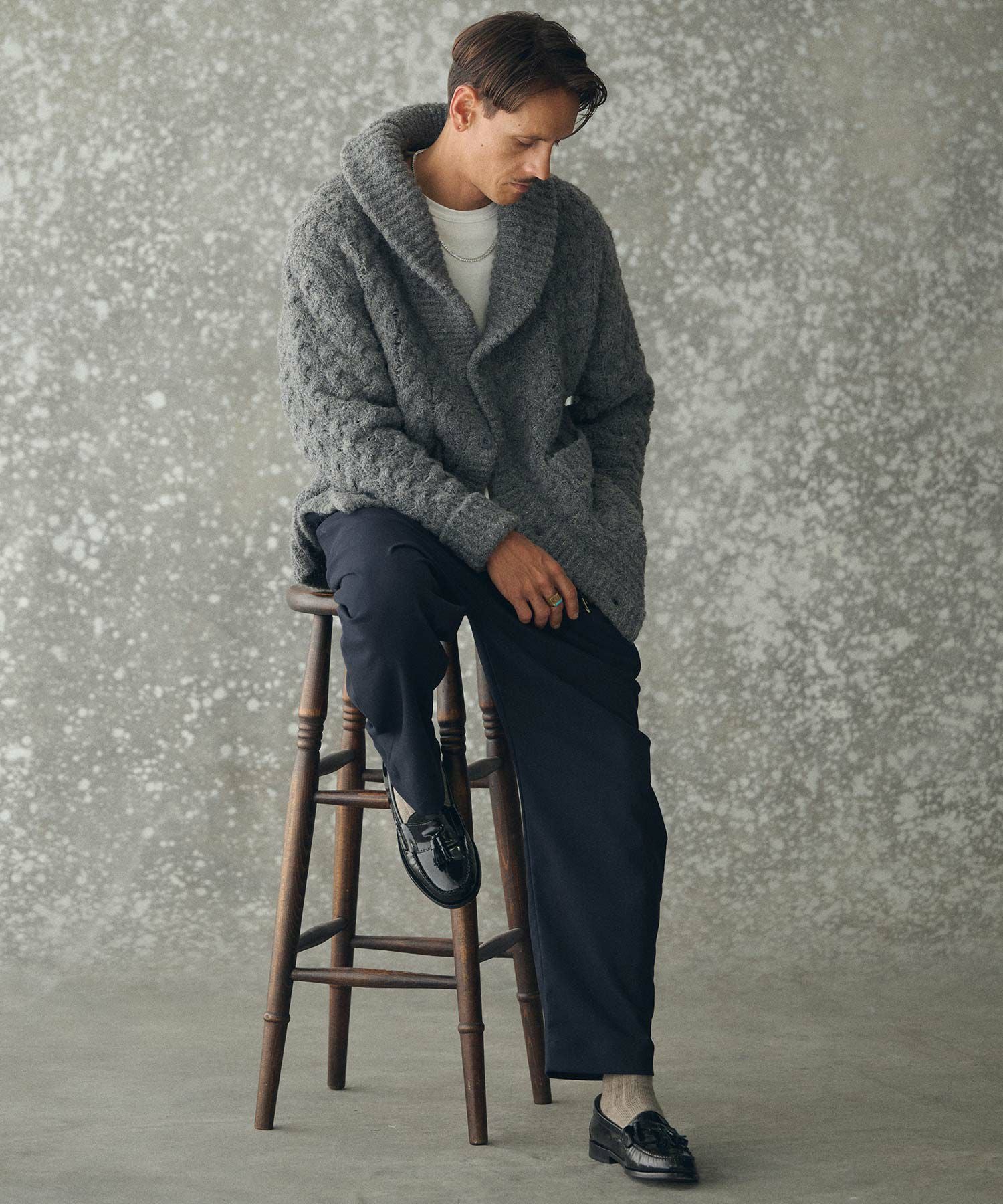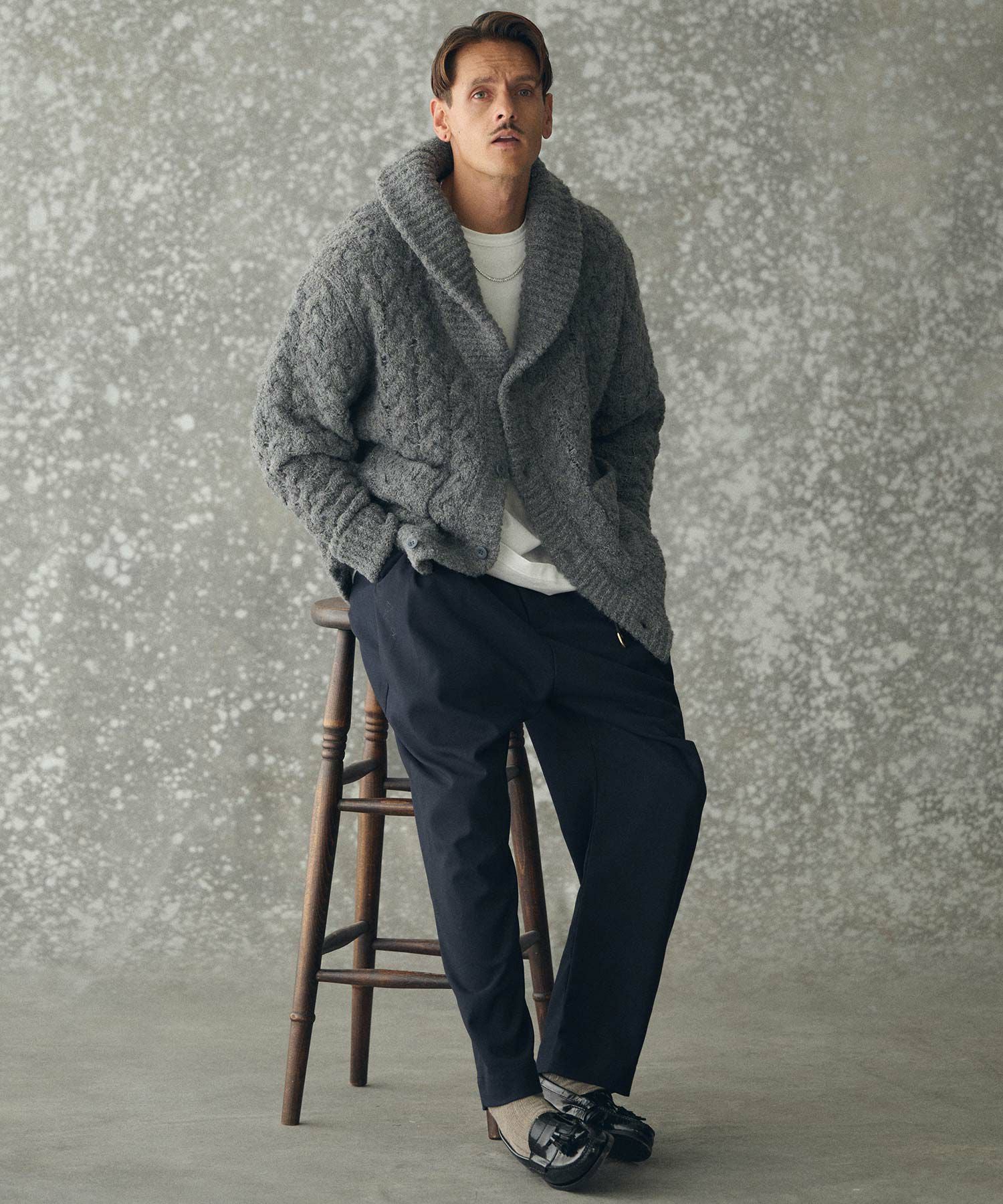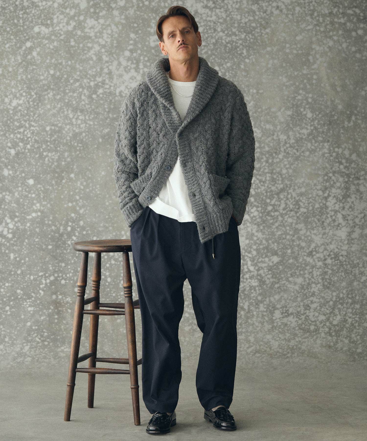 THEOREM 【THEOREM(セオレム)】Loop Yarn Cable Knit Shawl Cardigan ショールカーディガン(TRM25-T046A)