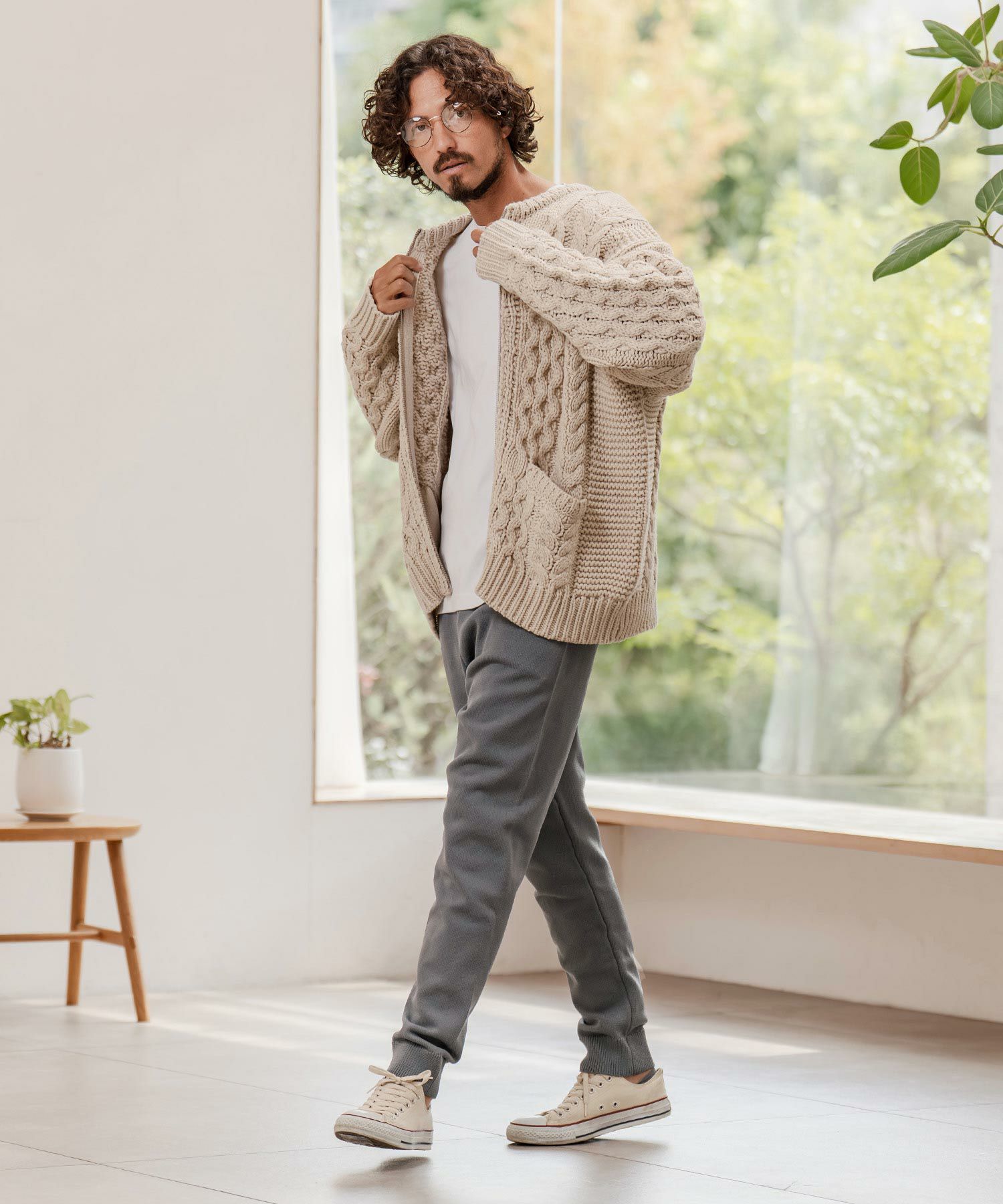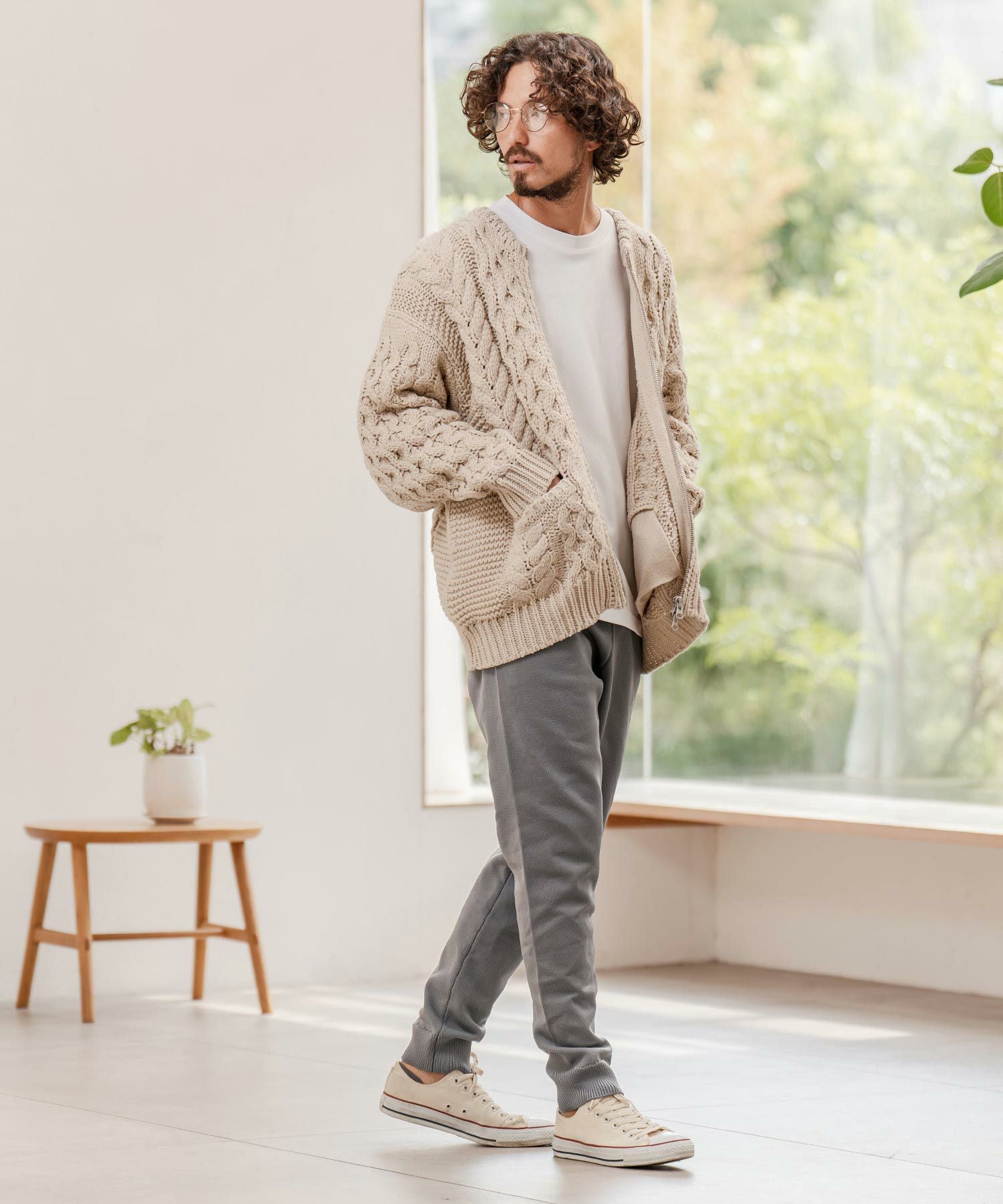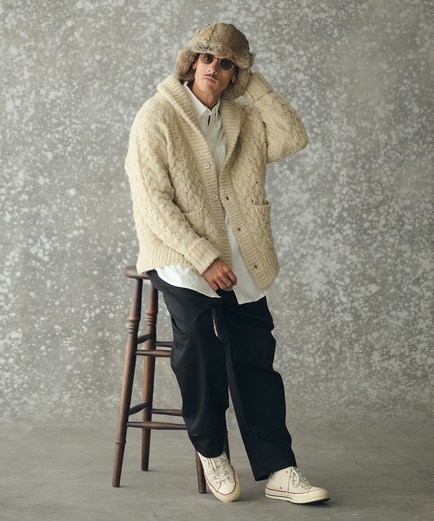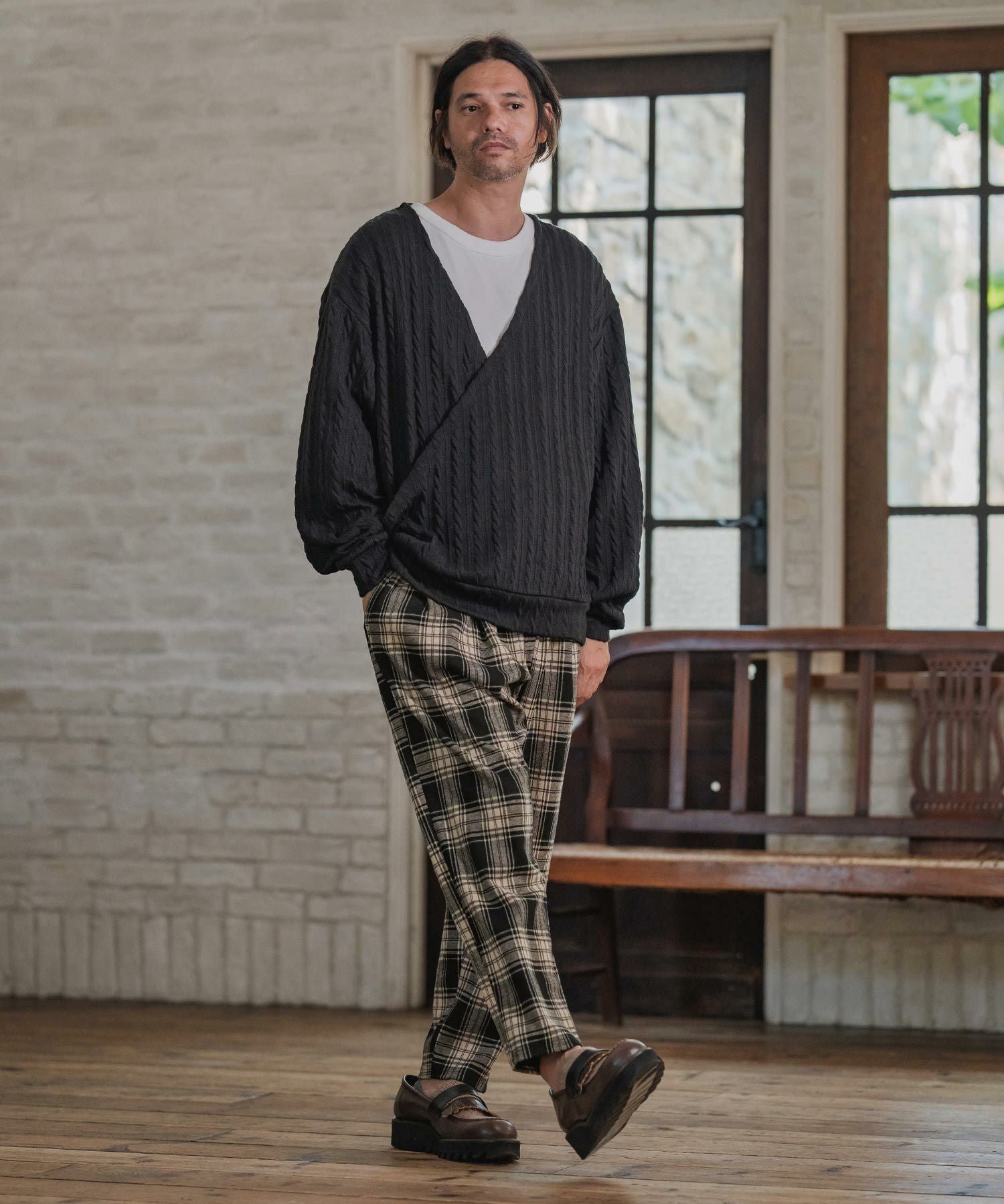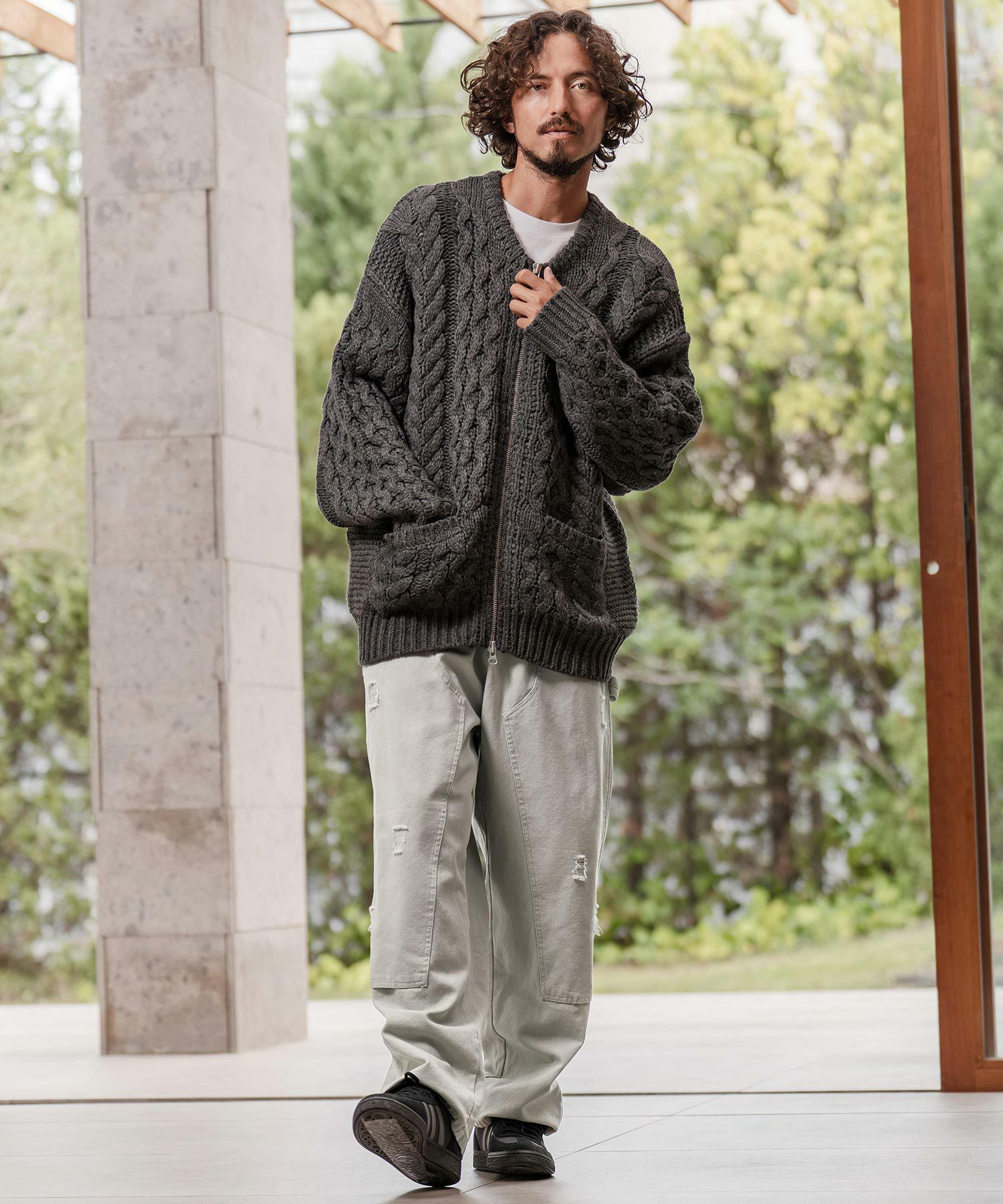 THEOREM 【THEOREM(セオレム)】Loop Yarn Cable Knit Shawl Cardigan ショールカーディガン(TRM25-T046A)