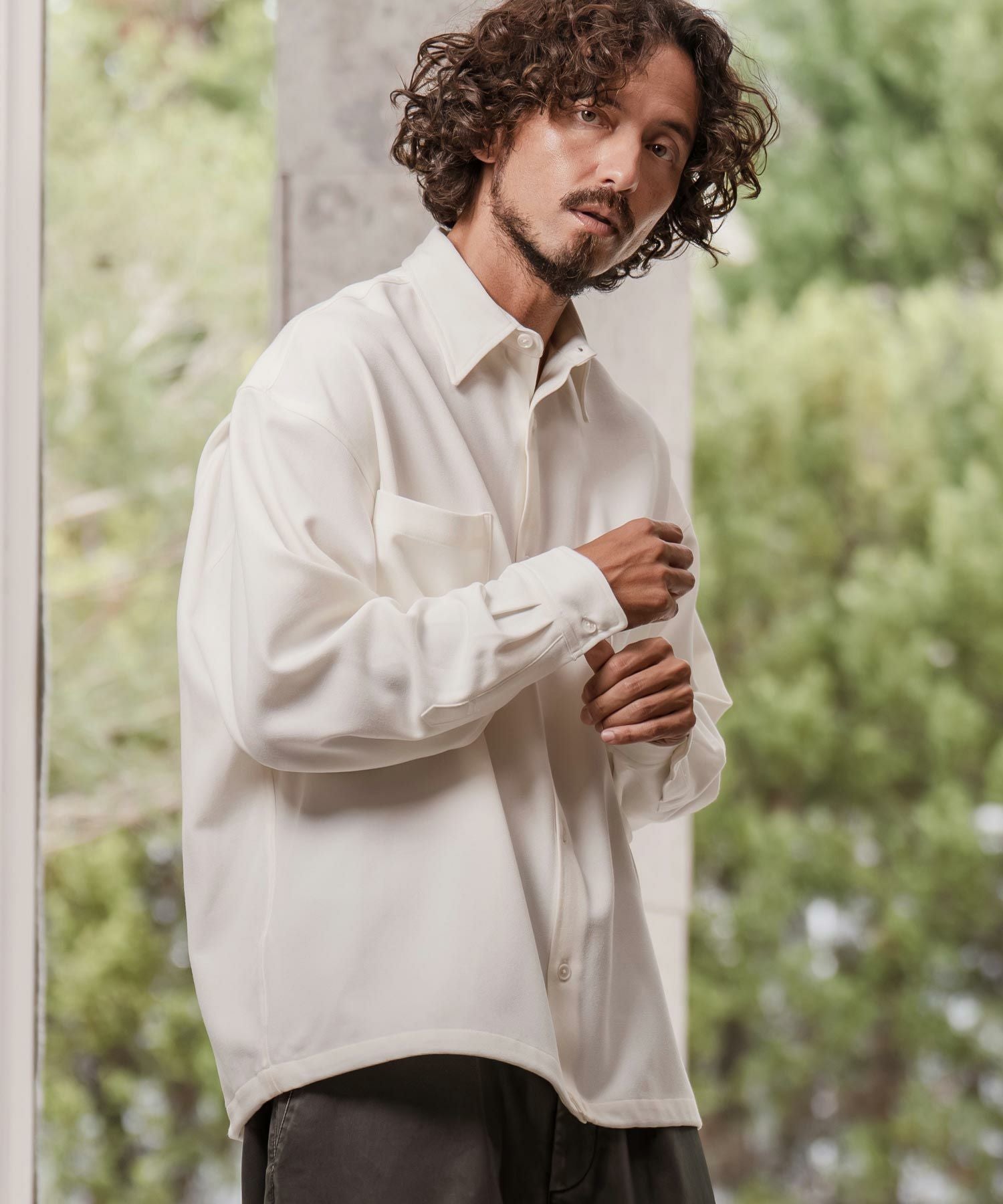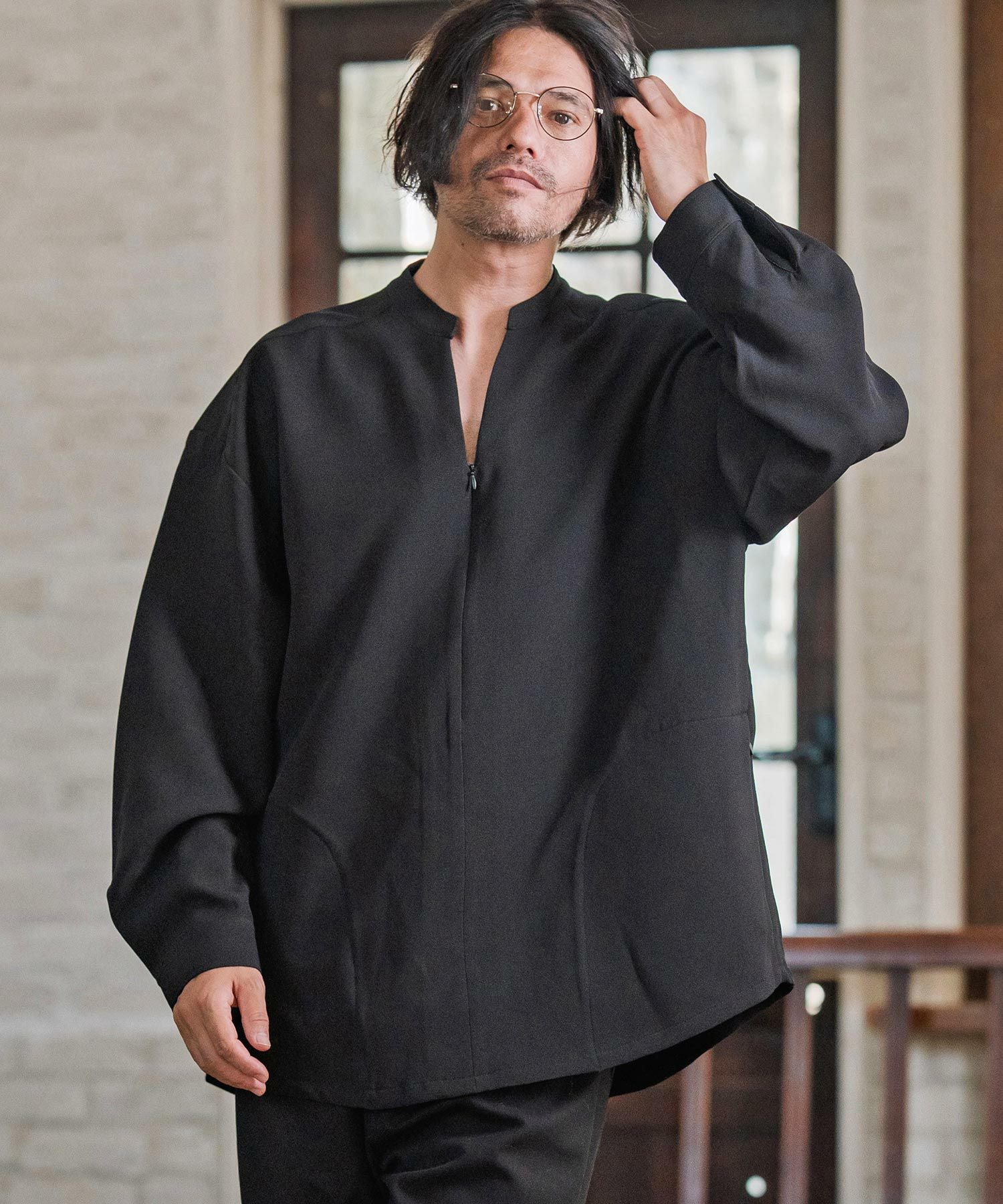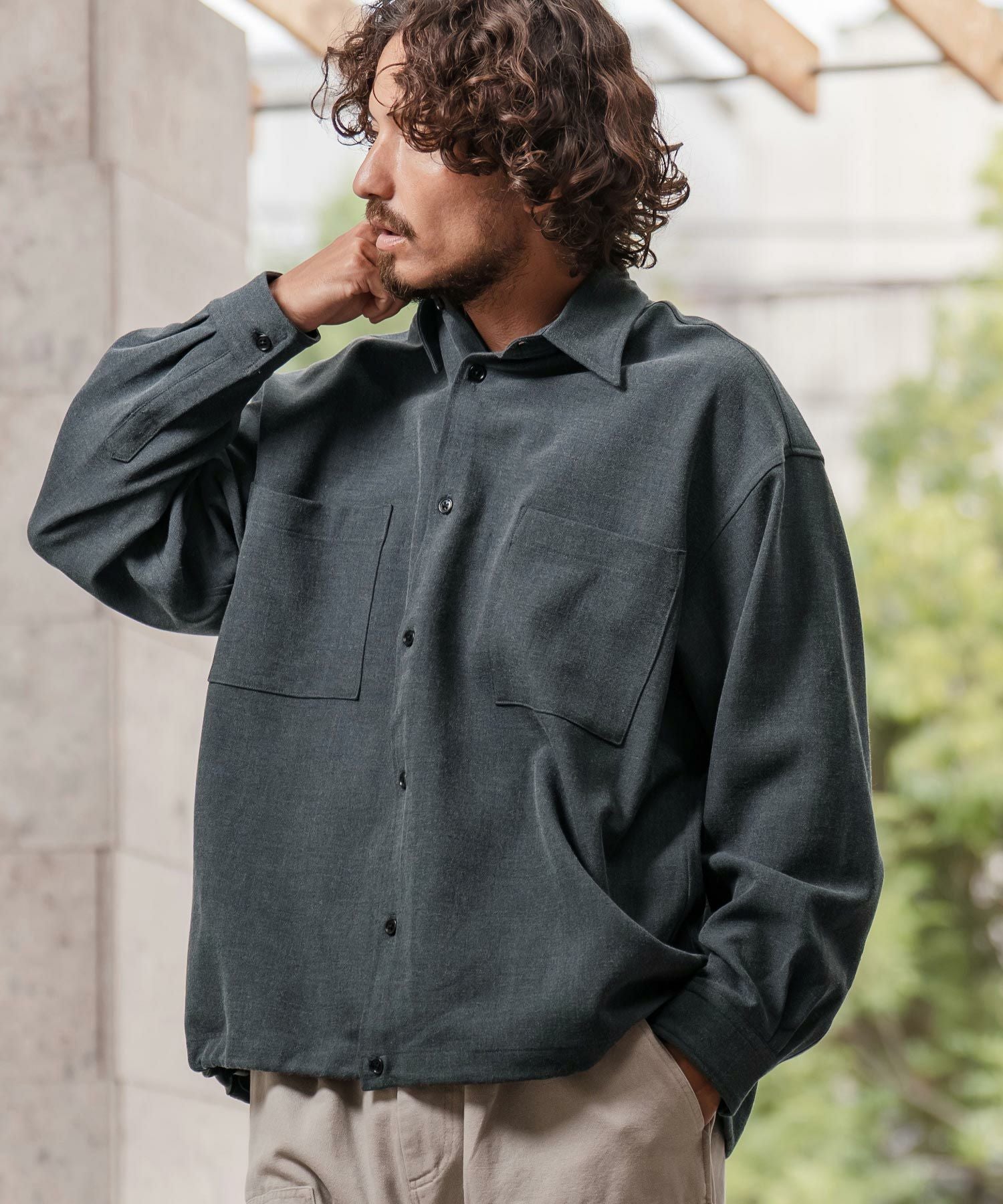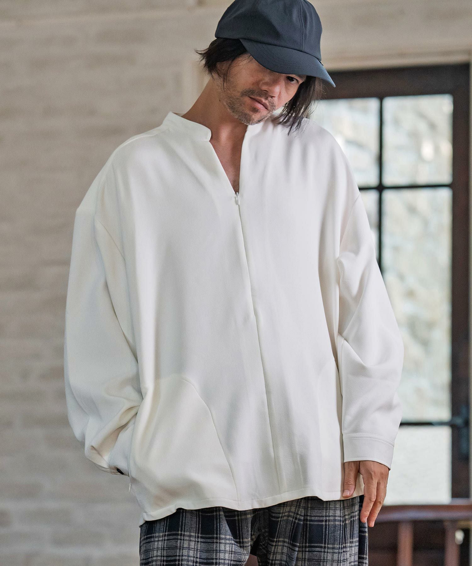 NO ID. 30%OFF【NO ID.(ノーアイディー)】 ZIPロングSH シャツ(457006-043S)