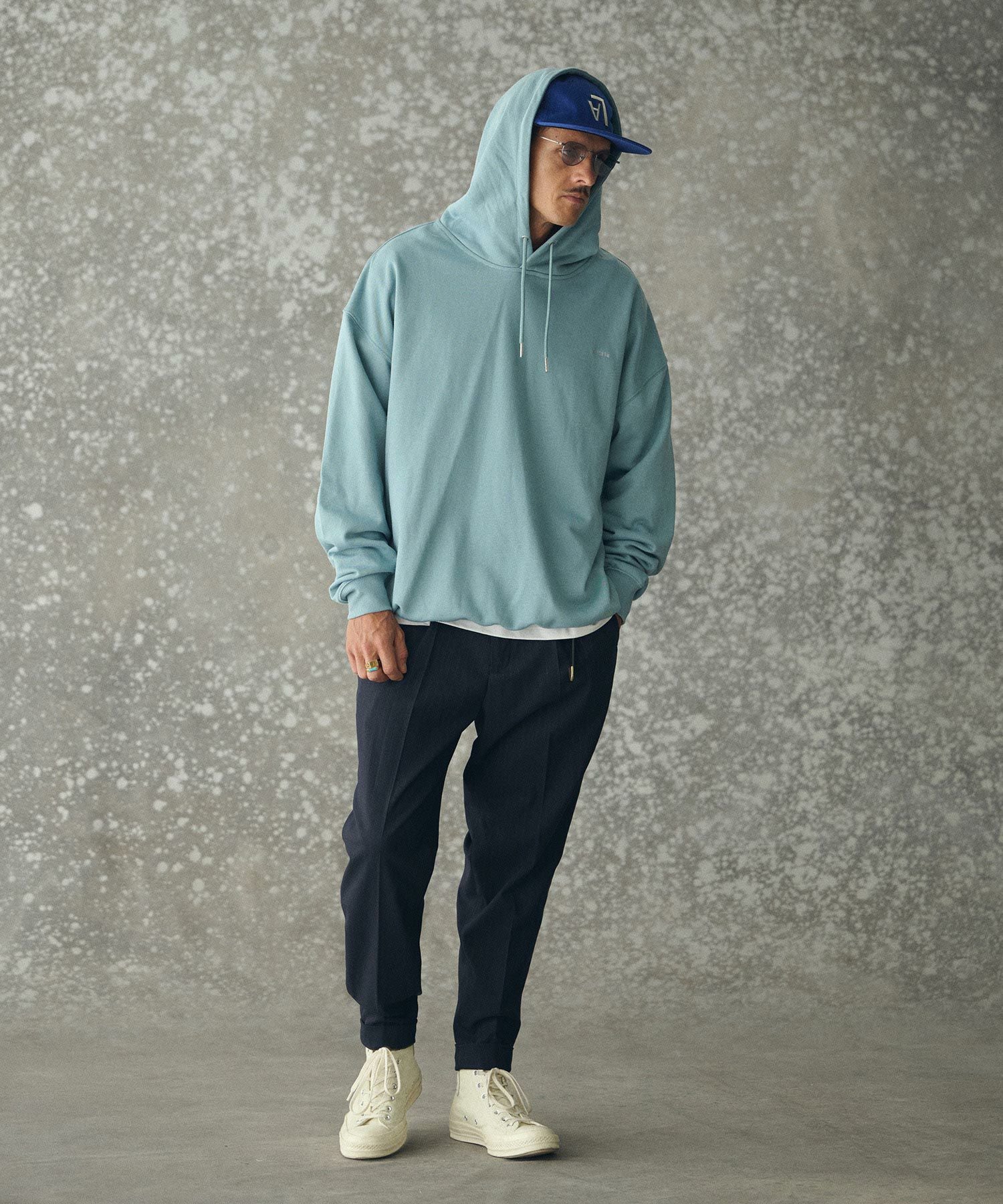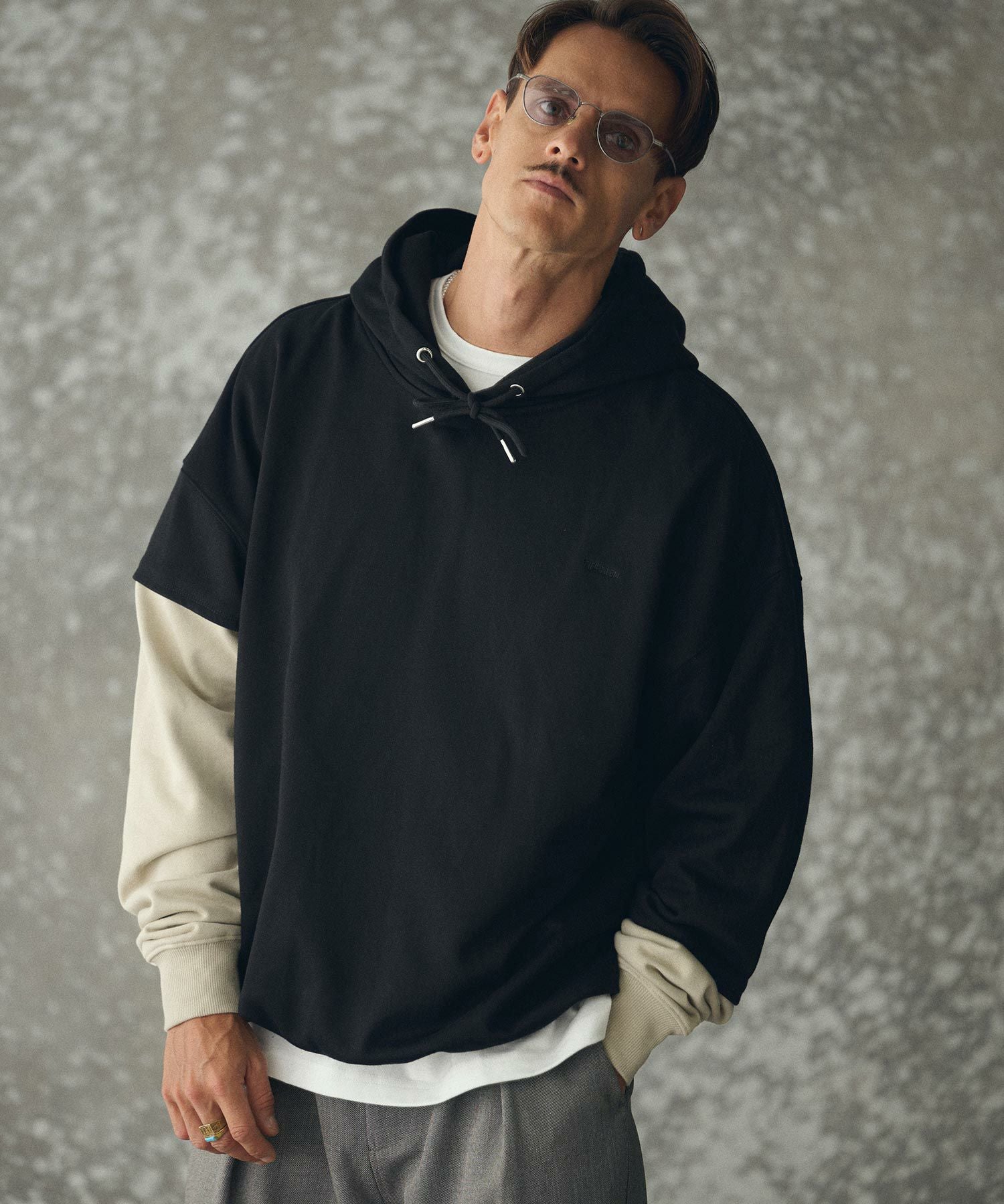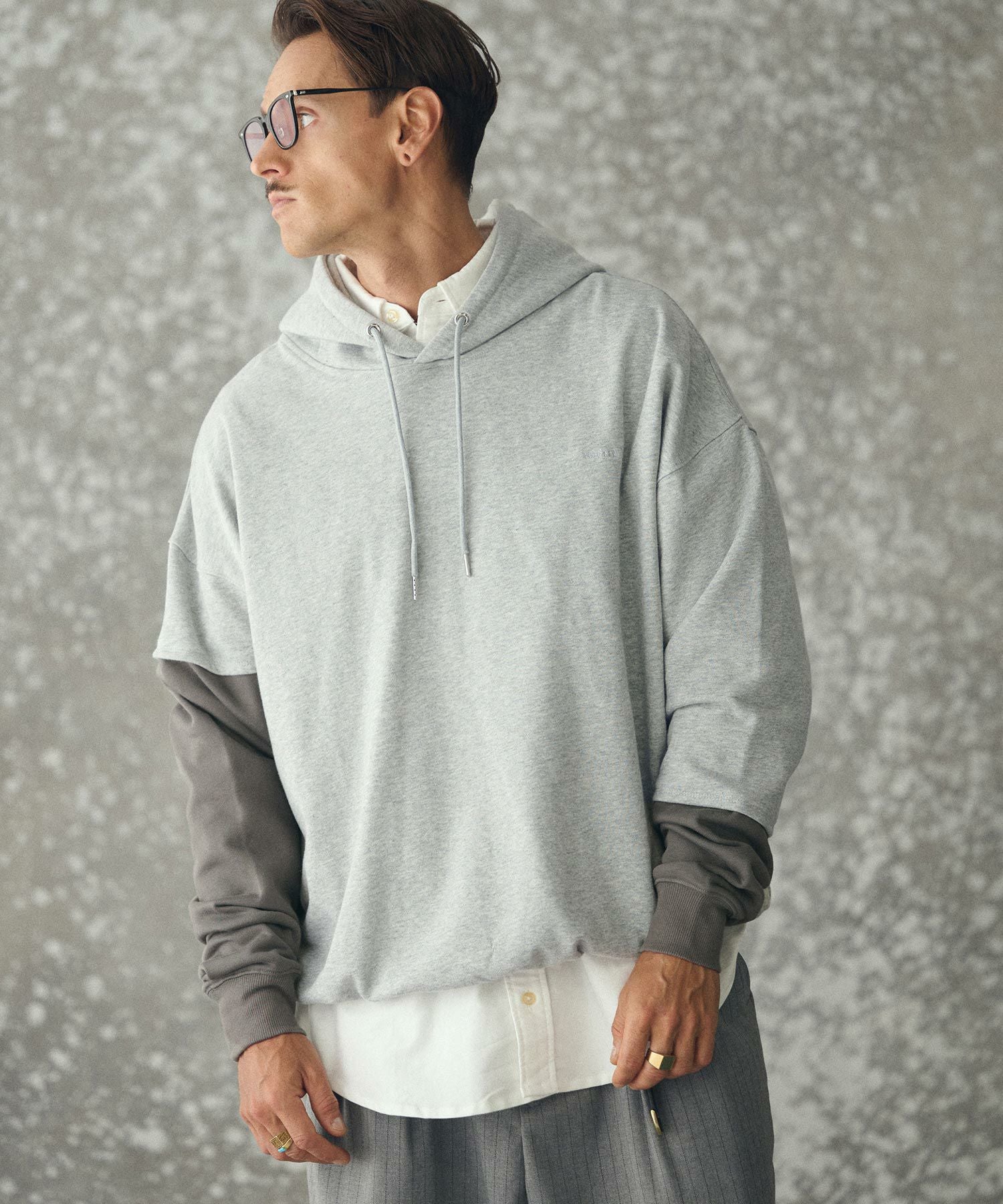 THEOREM 【THEOREM(セオレム)】 One Point Embroidered Laidback Switching Hoodie パーカー(TRM25-T042A)