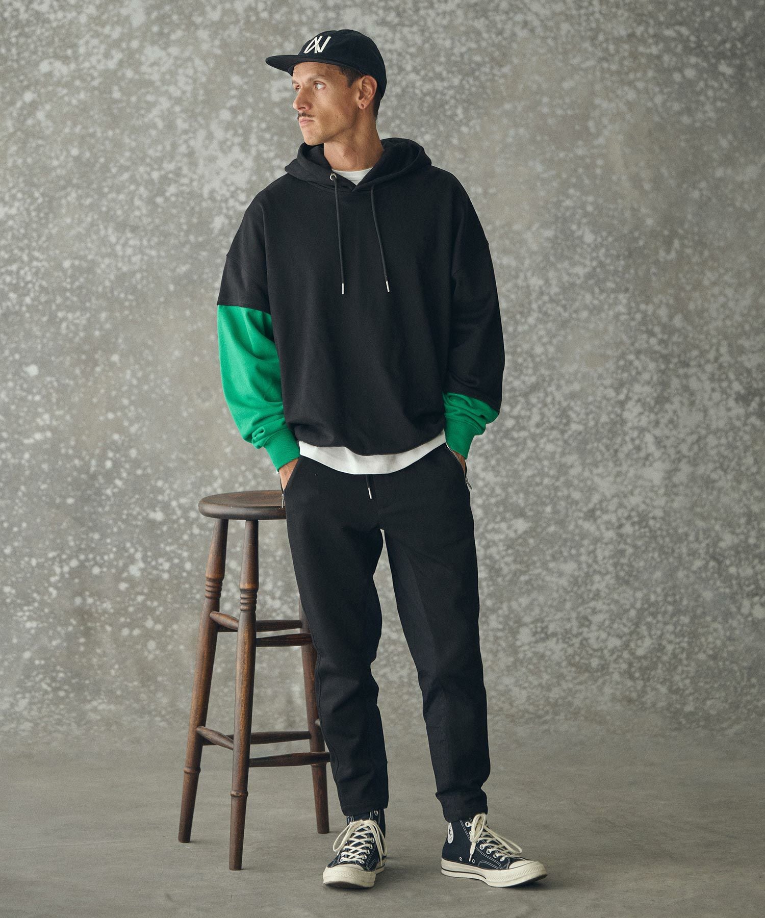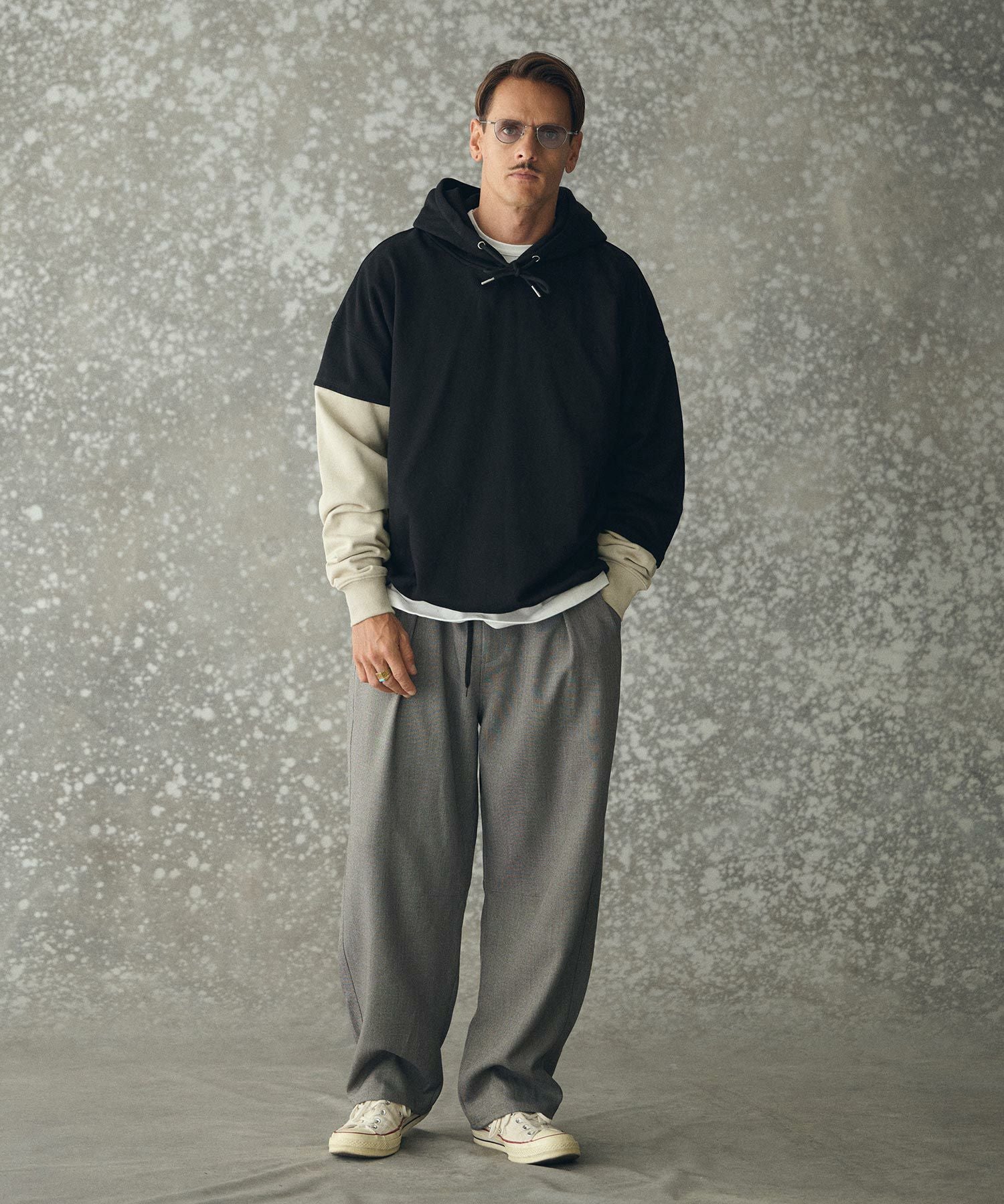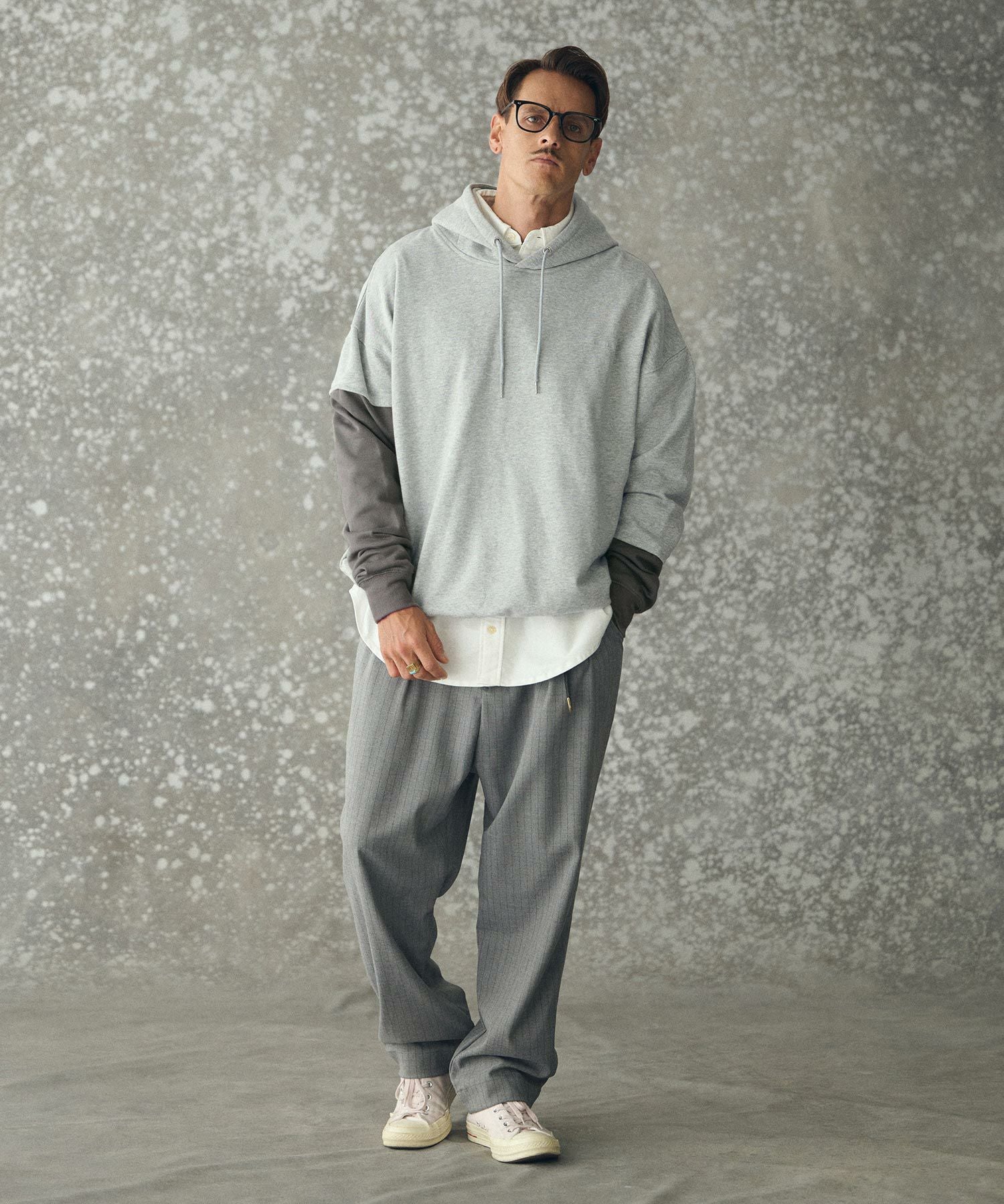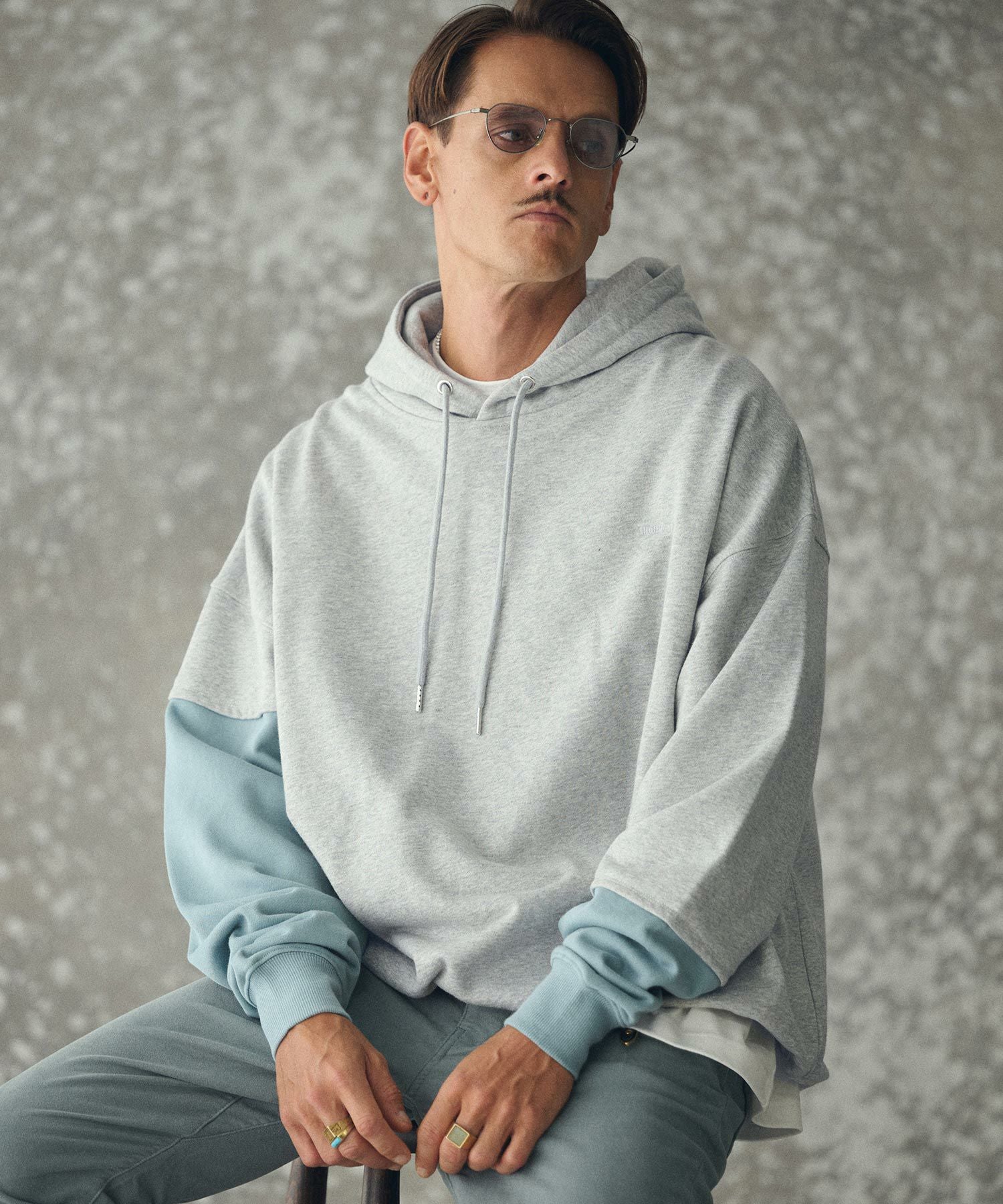 THEOREM 【THEOREM(セオレム)】 One Point Embroidered Laidback Switching Hoodie パーカー(TRM25-T042A)