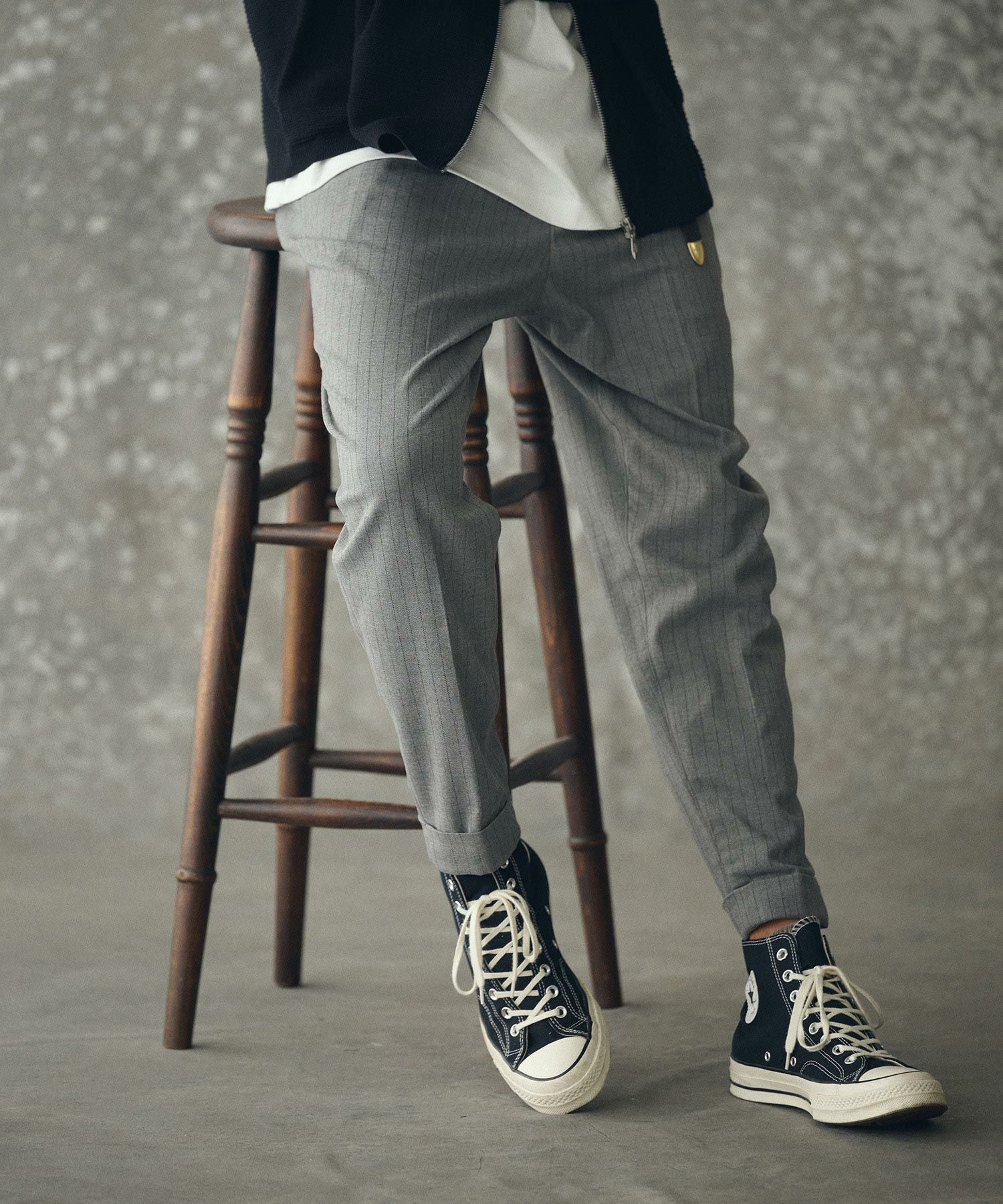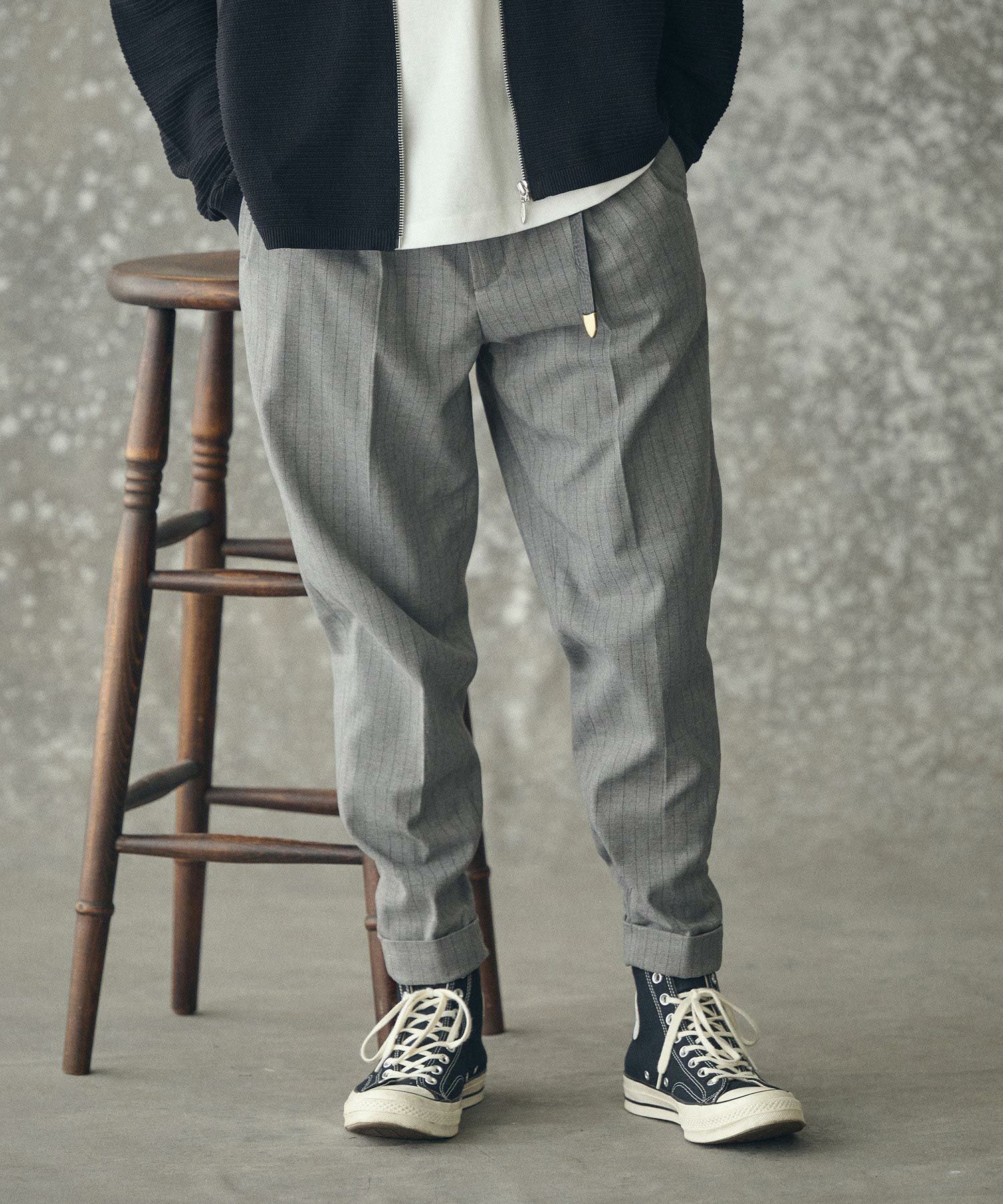 THEOREM 【THEOREM(セオレム)】 Turn up TR Stripe Tapered Pants ピンストライプテーパードスラックス パンツ(TRM25-P023A)