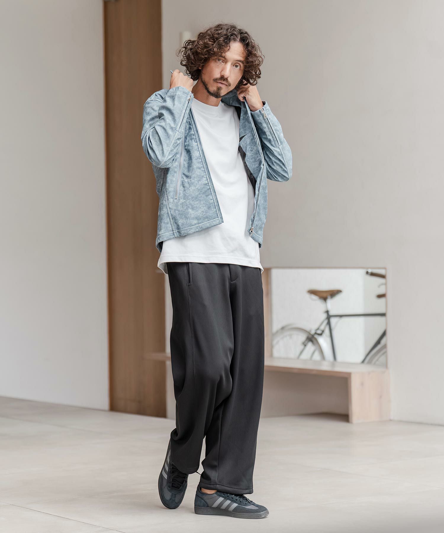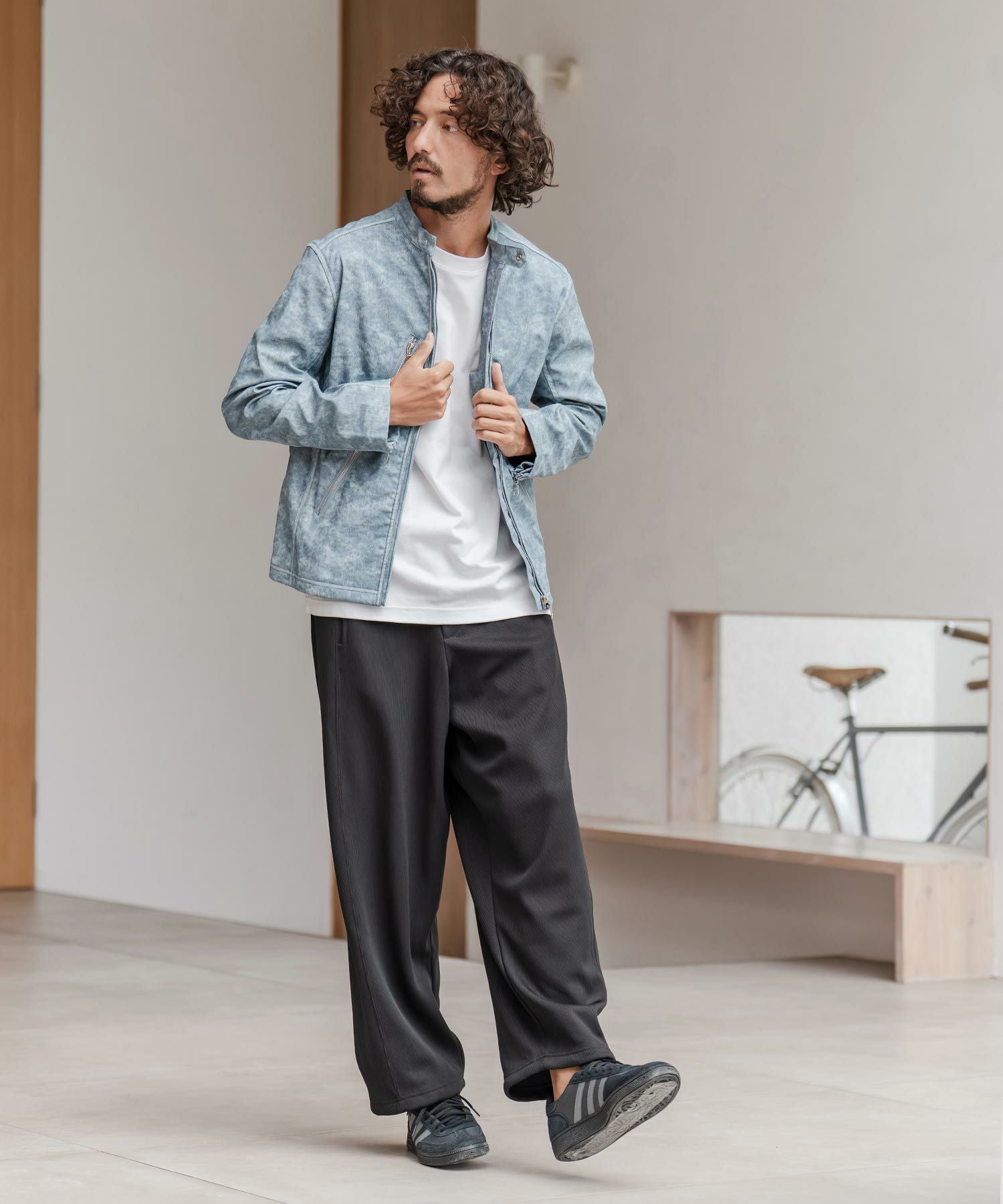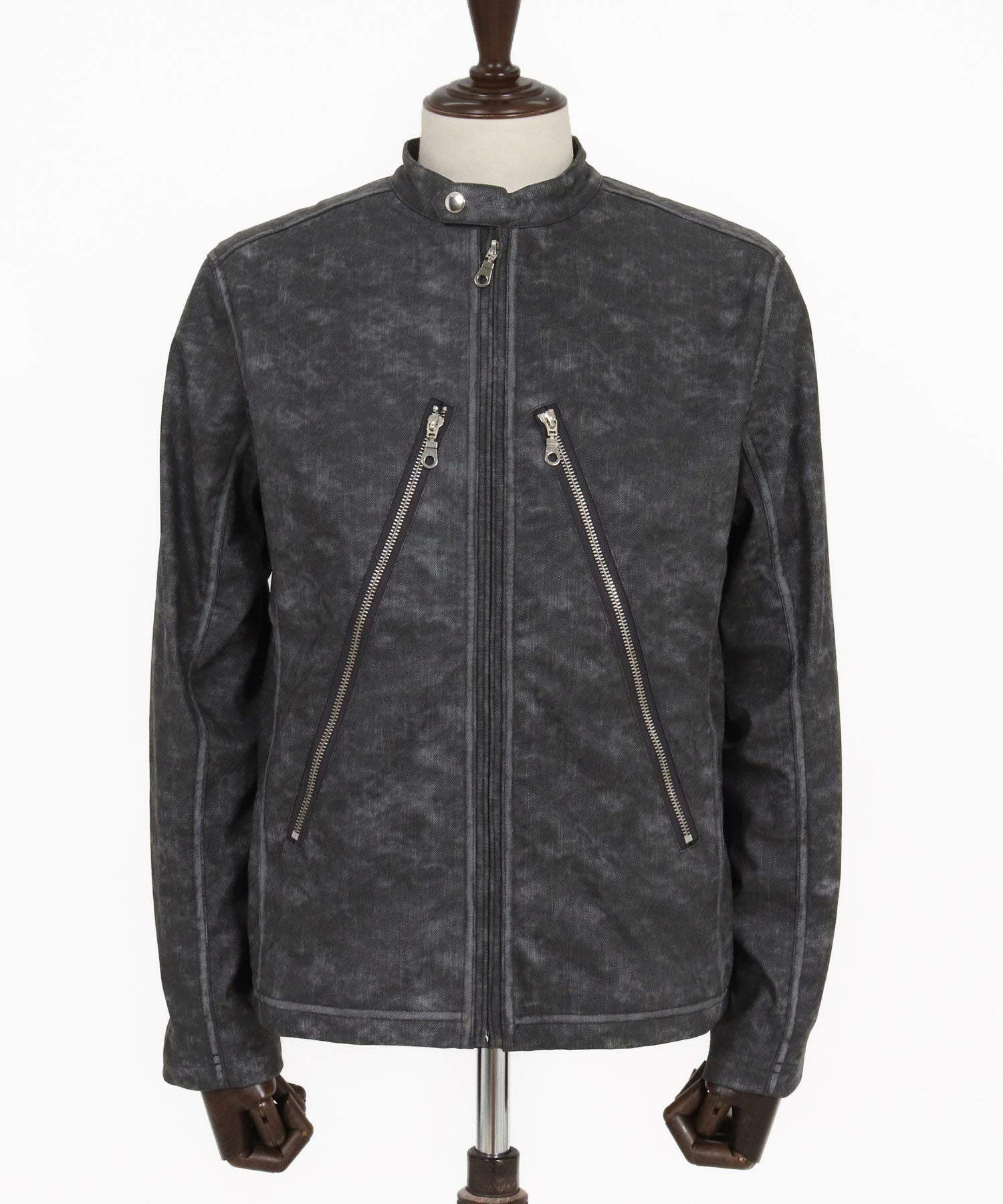 CAMBIO 30%OFF【CAMBIO(カンビオ)】合成皮革デニムライクシングルライダース ジャケット(HLCM0204)