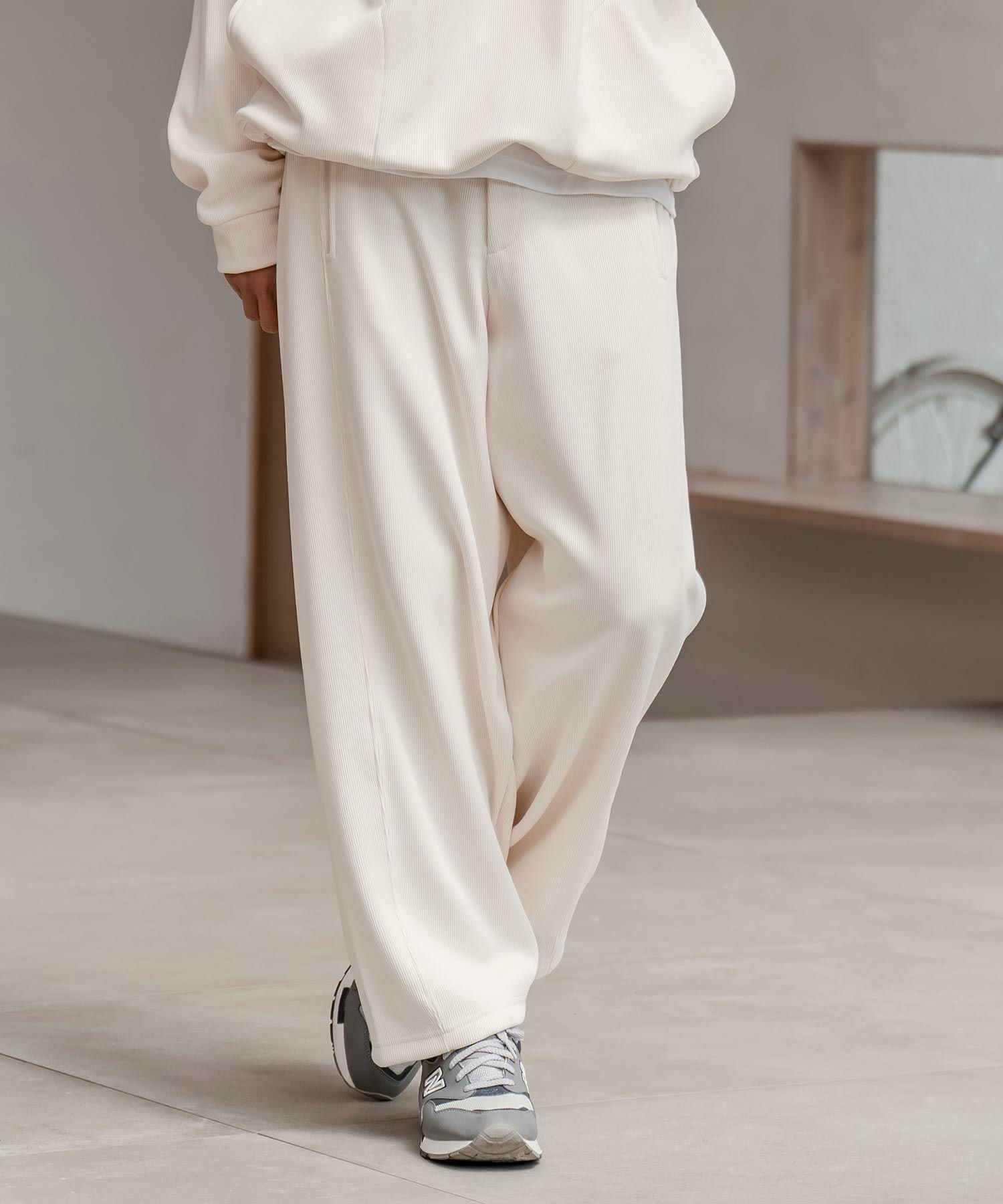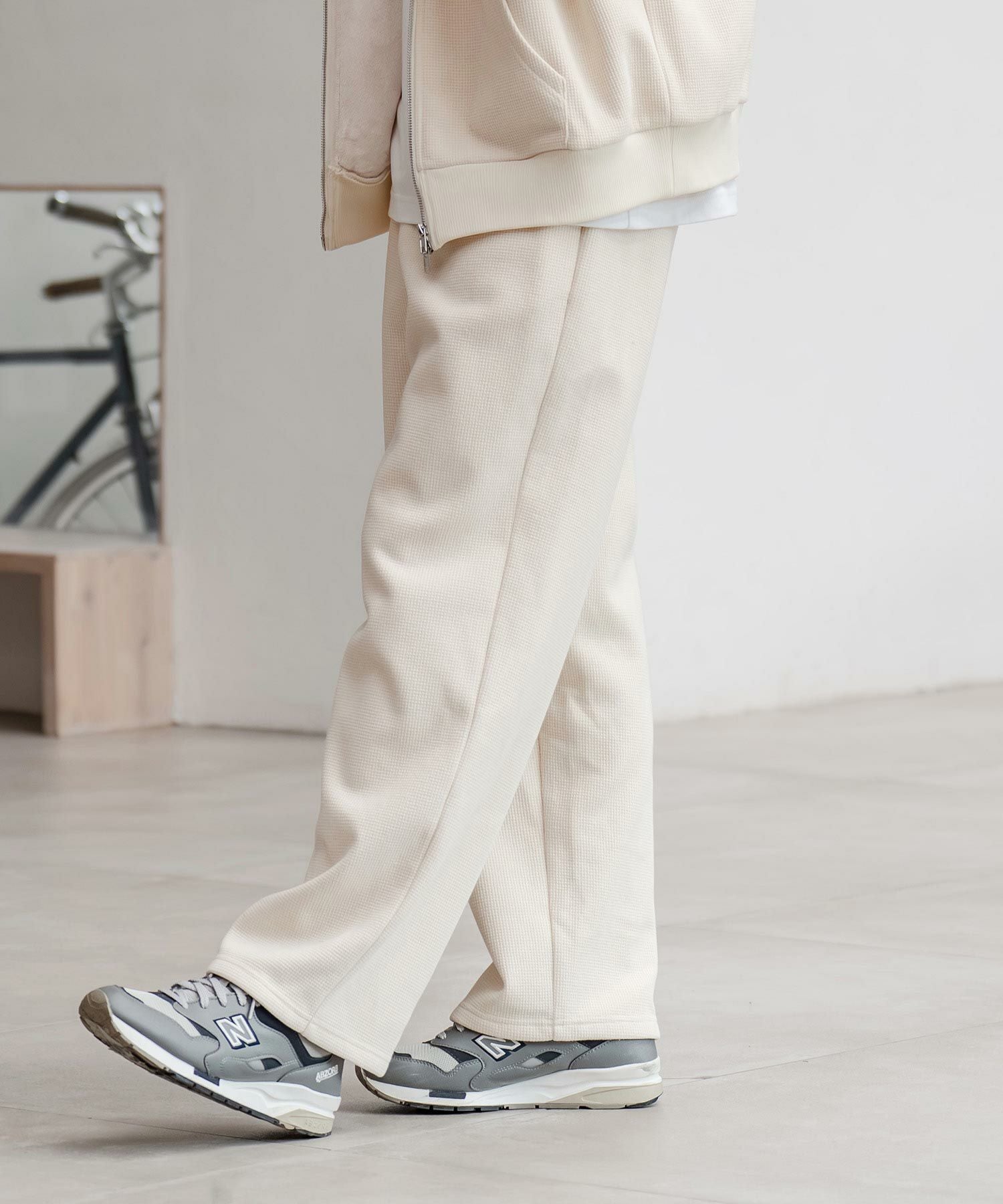 CAMBIO 【CAMBIO(カンビオ)】Back Shaggy Boa Bonding Waffle Wide Straight Pants ワイドストレートパンツ(A57525cmb)