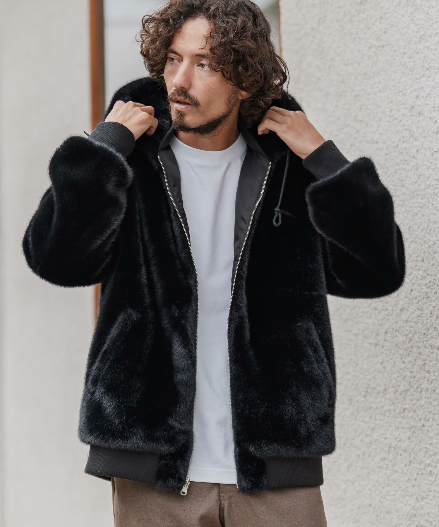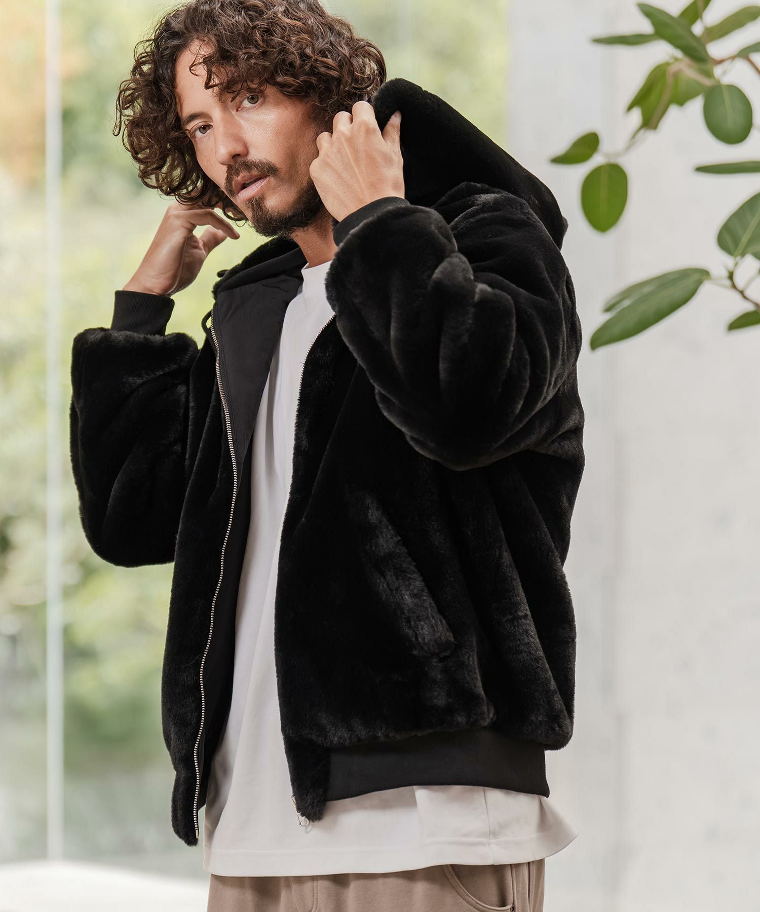 CAMBIO 【CAMBIO(カンビオ)】Back Shaggy Boa Bonding Waffle Zip Up Parka ジップアップパーカー(A57425cmb)