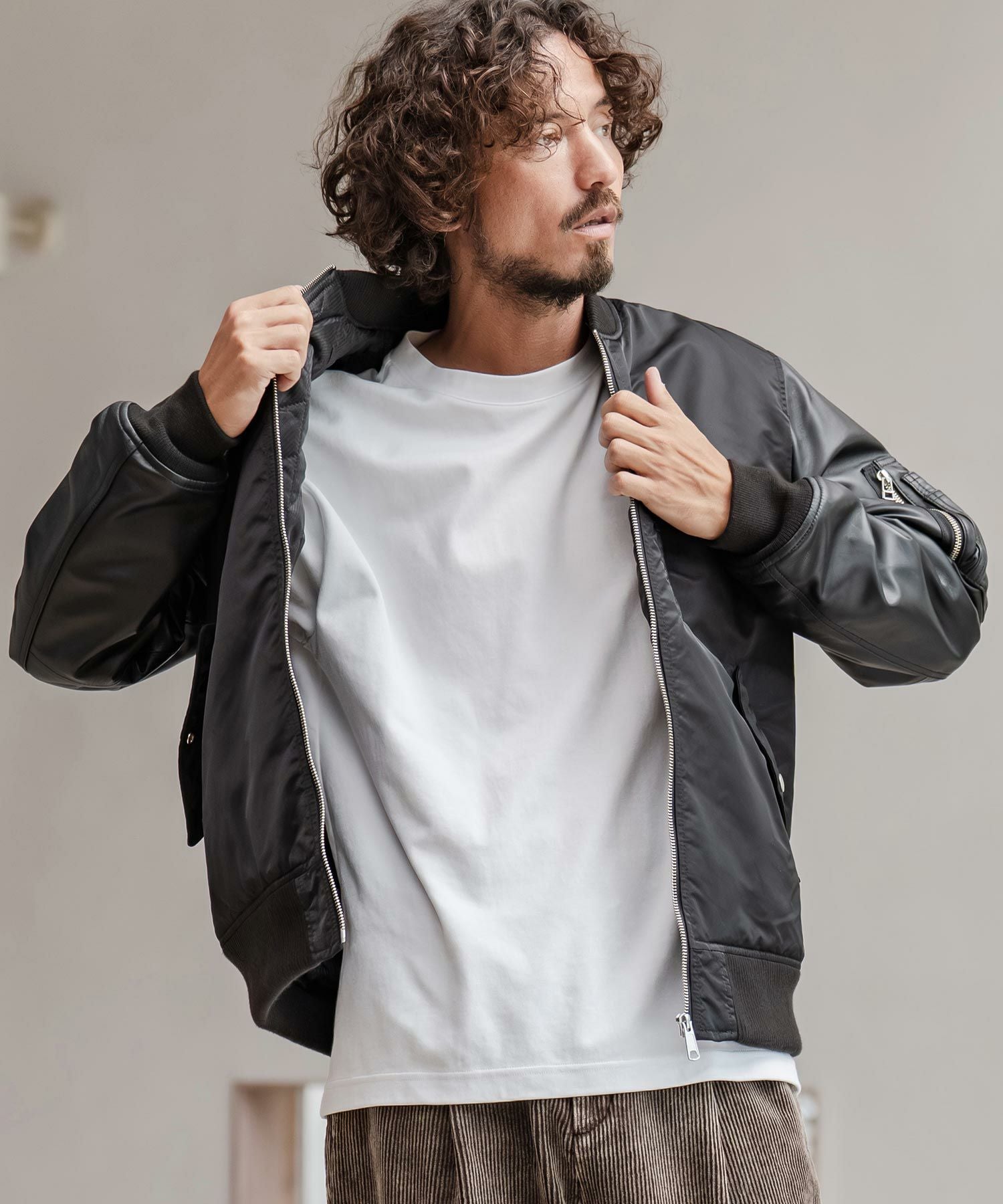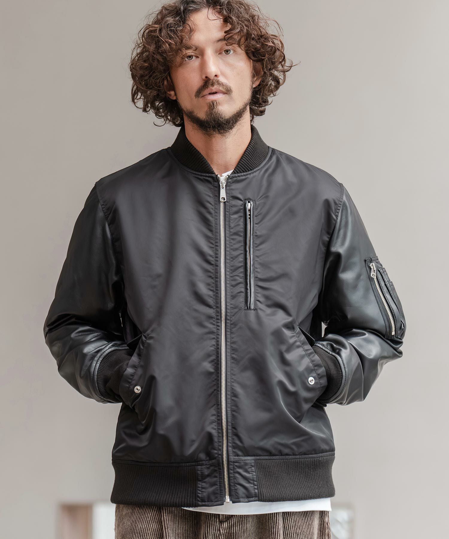 CAMBIO 【CAMBIO(カンビオ)】ナイロンツイル×レザーMA-1ジャケット