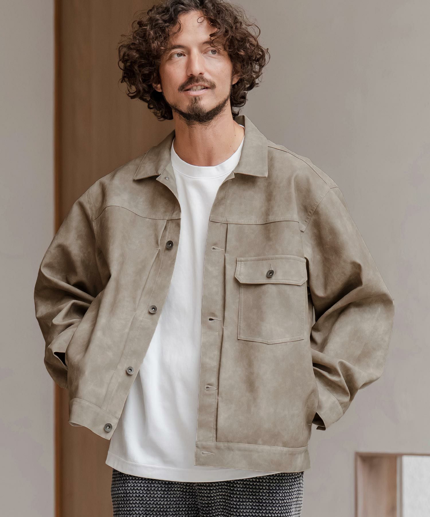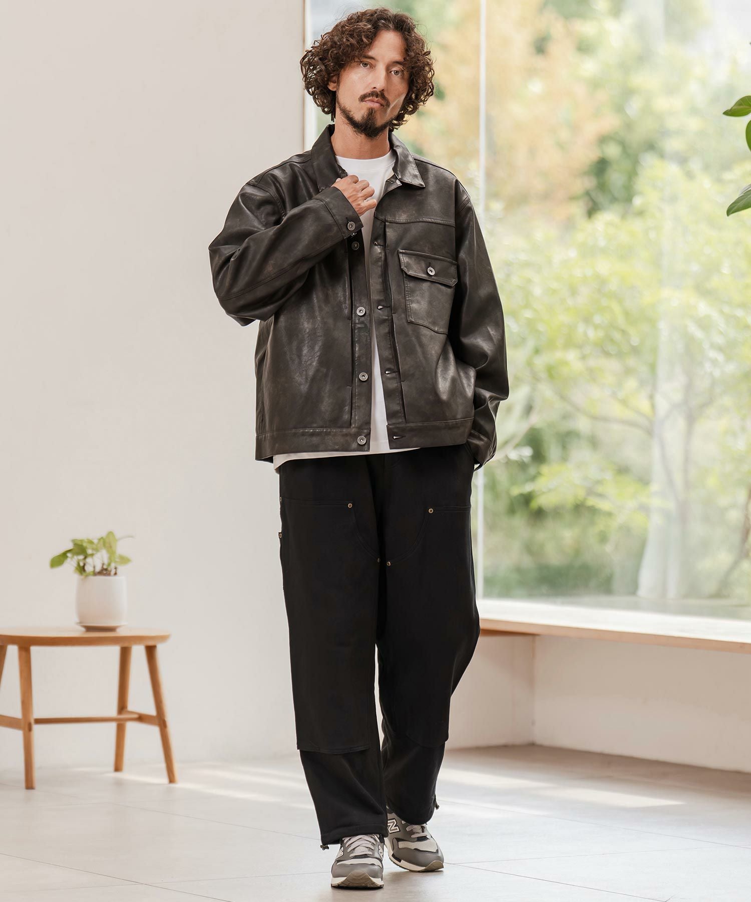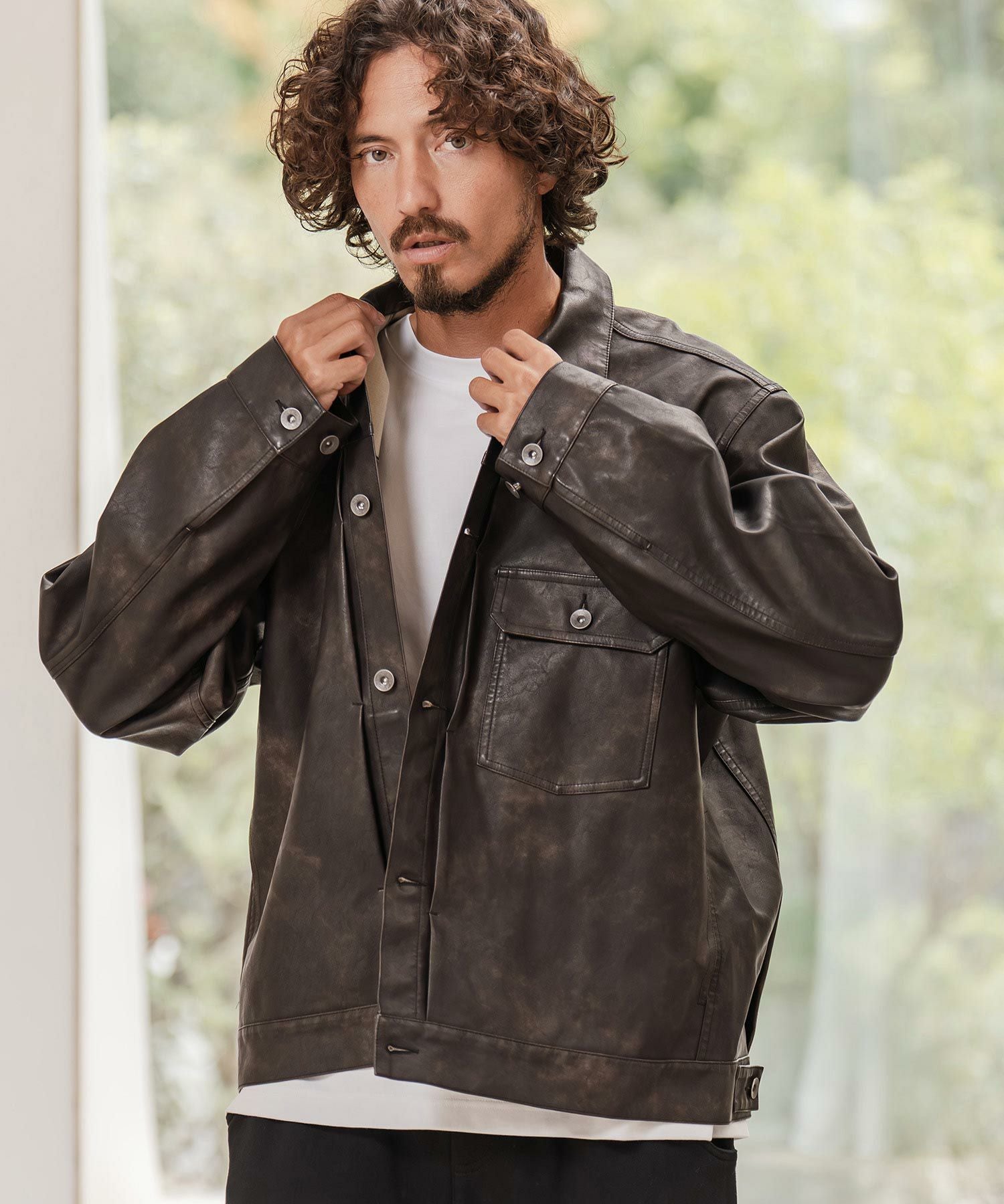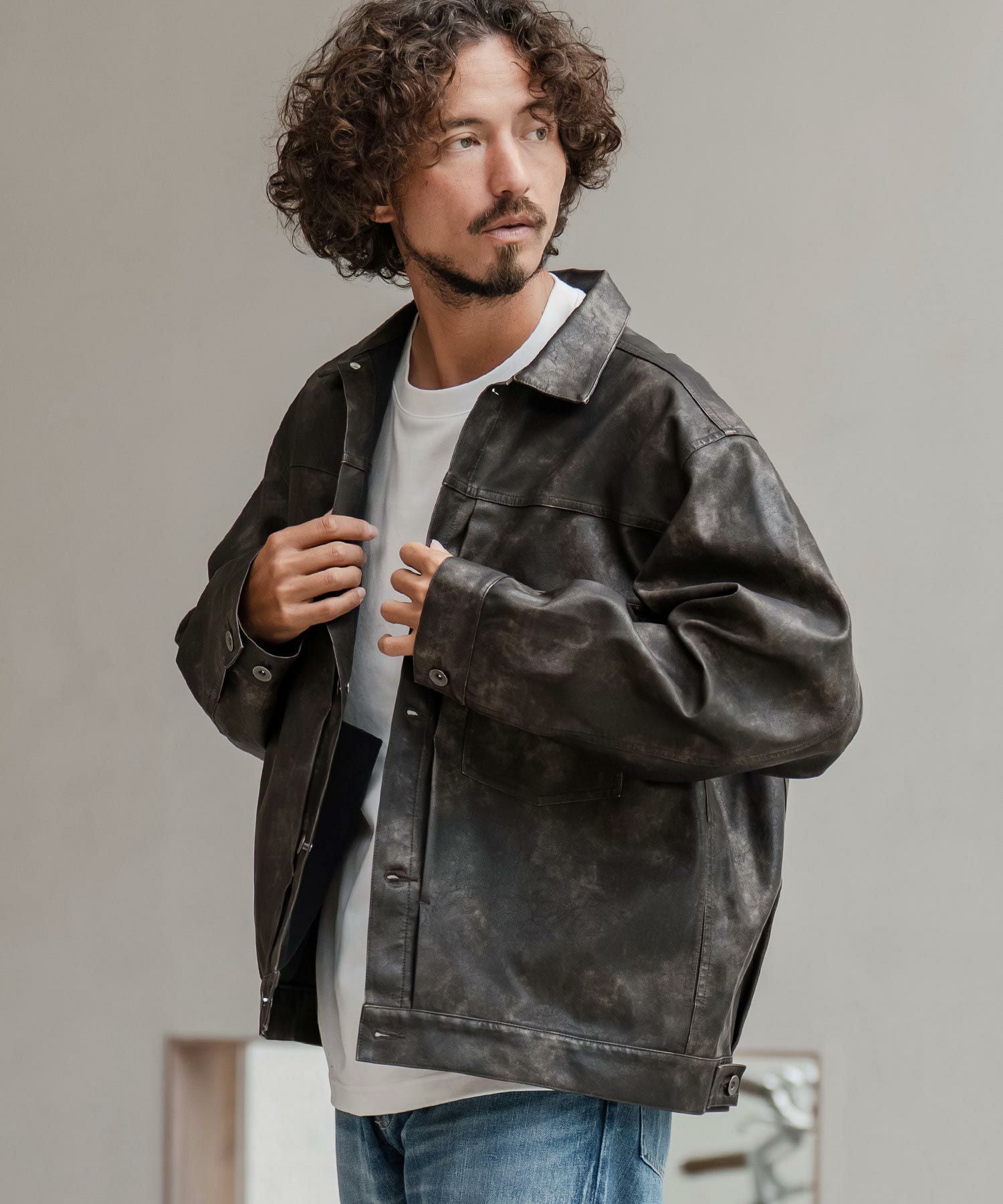 CAMBIO 【CAMBIO(カンビオ)】ヴィンテージライクシンセティックレザーGジャン