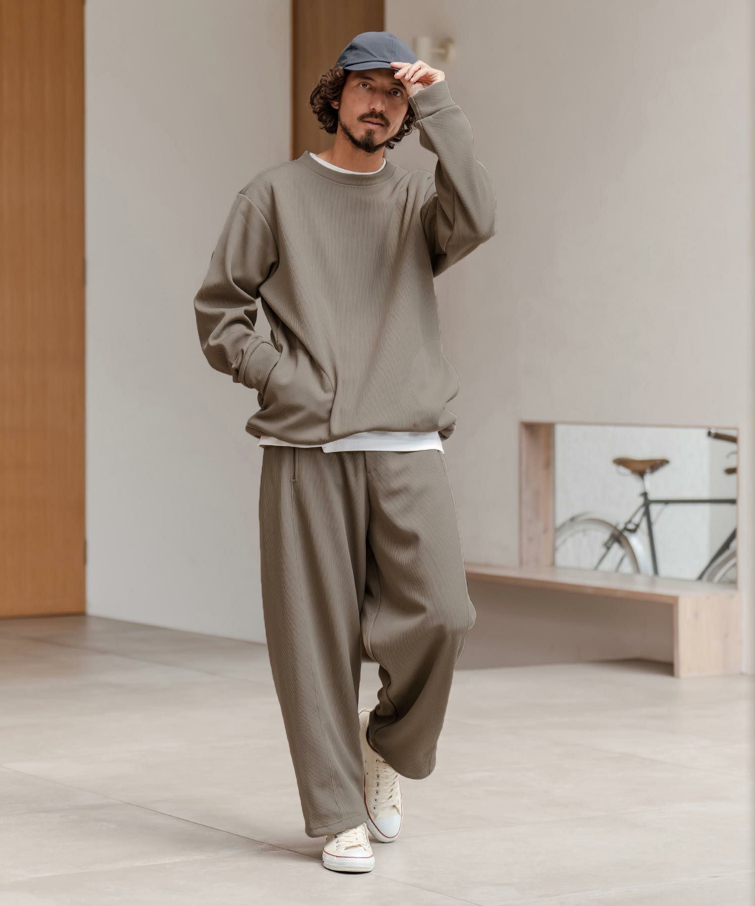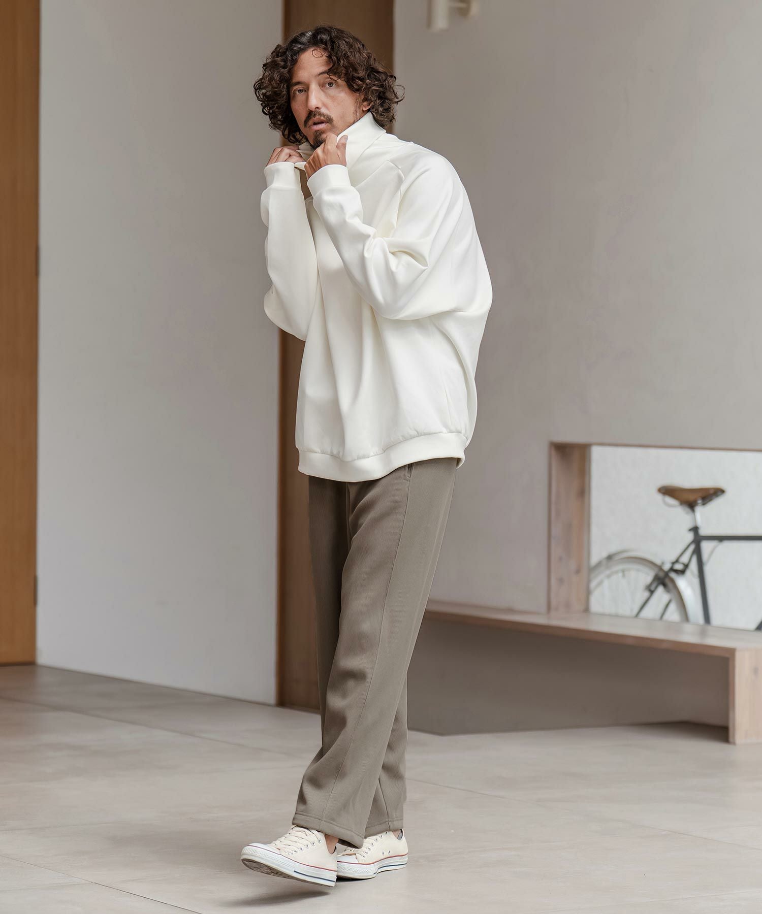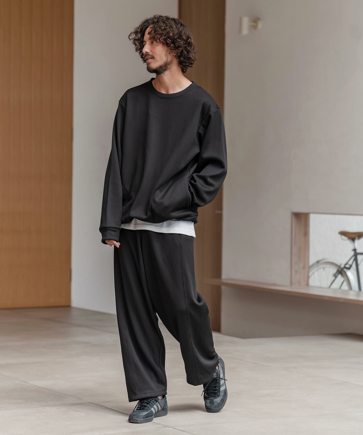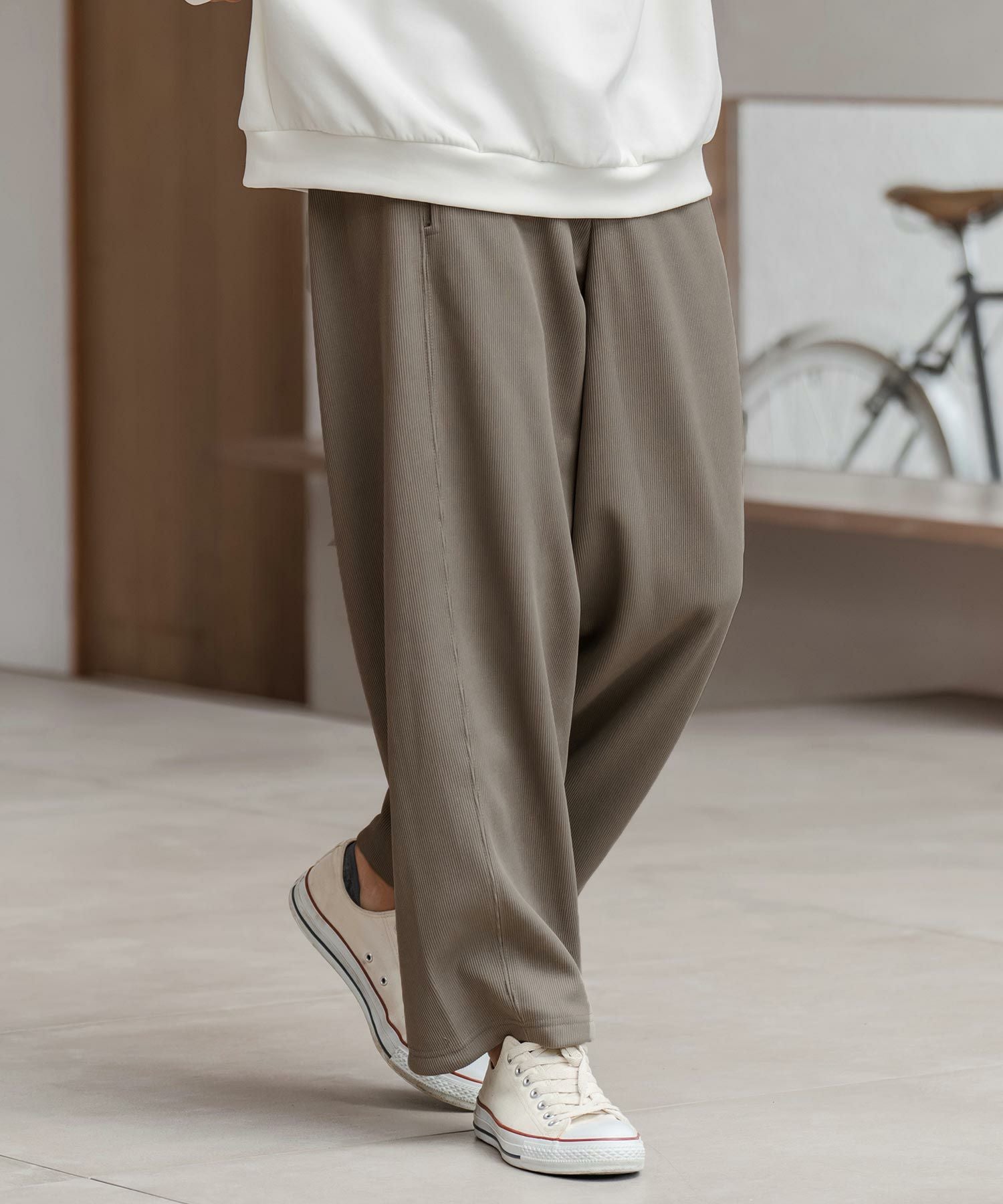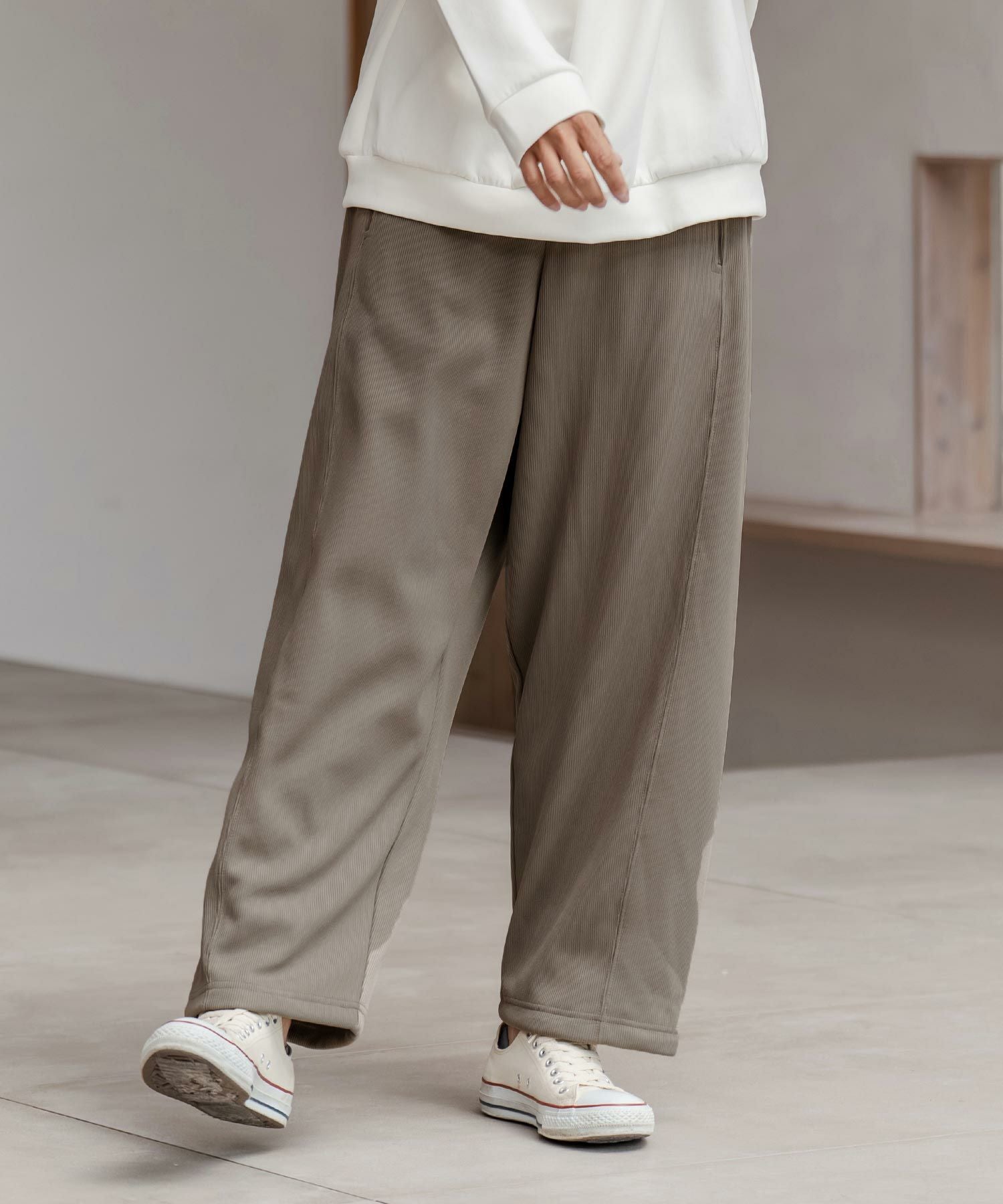 CAMBIO 【CAMBIO(カンビオ)】ドビー裏起毛ボンディングワイドパンツ