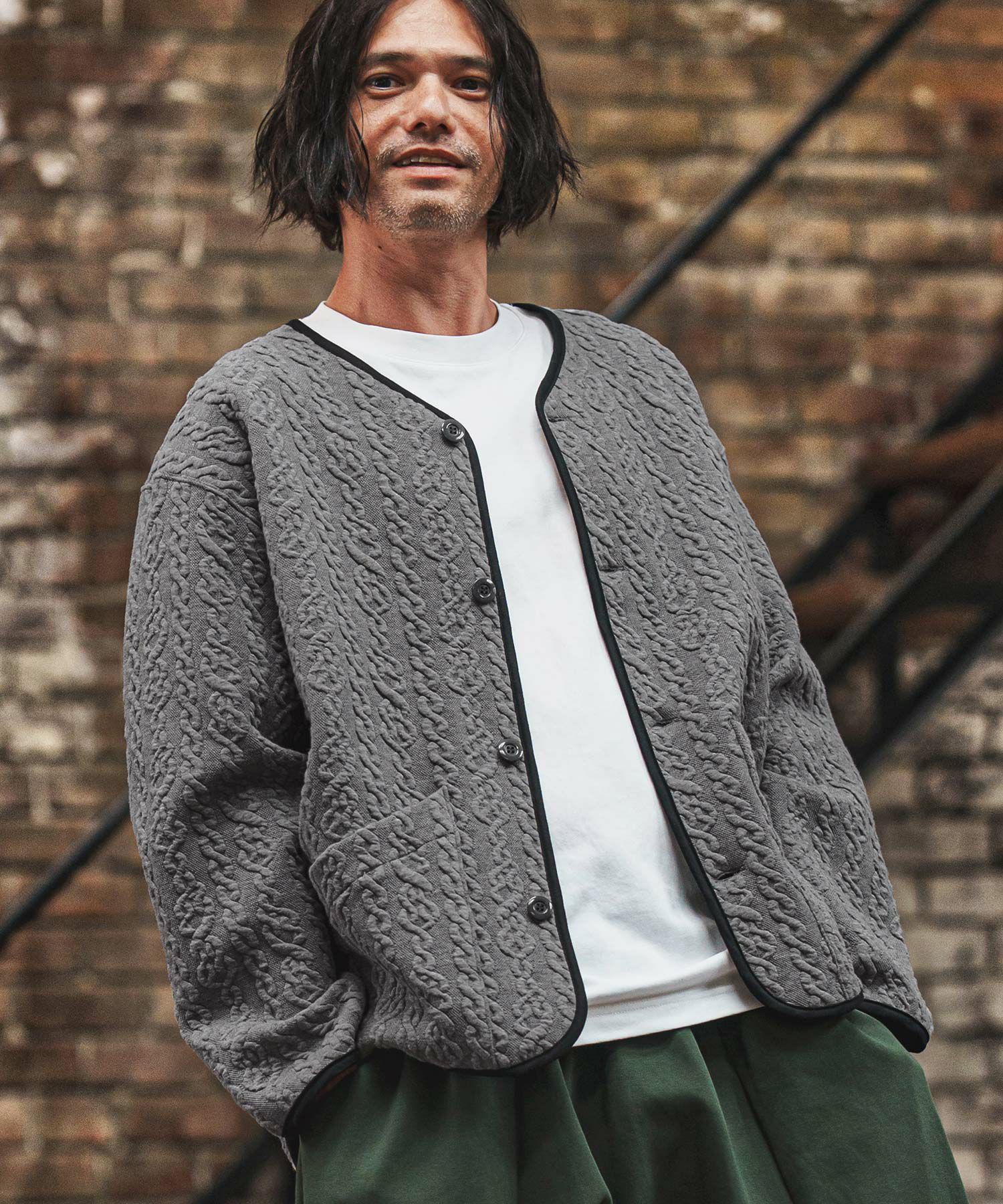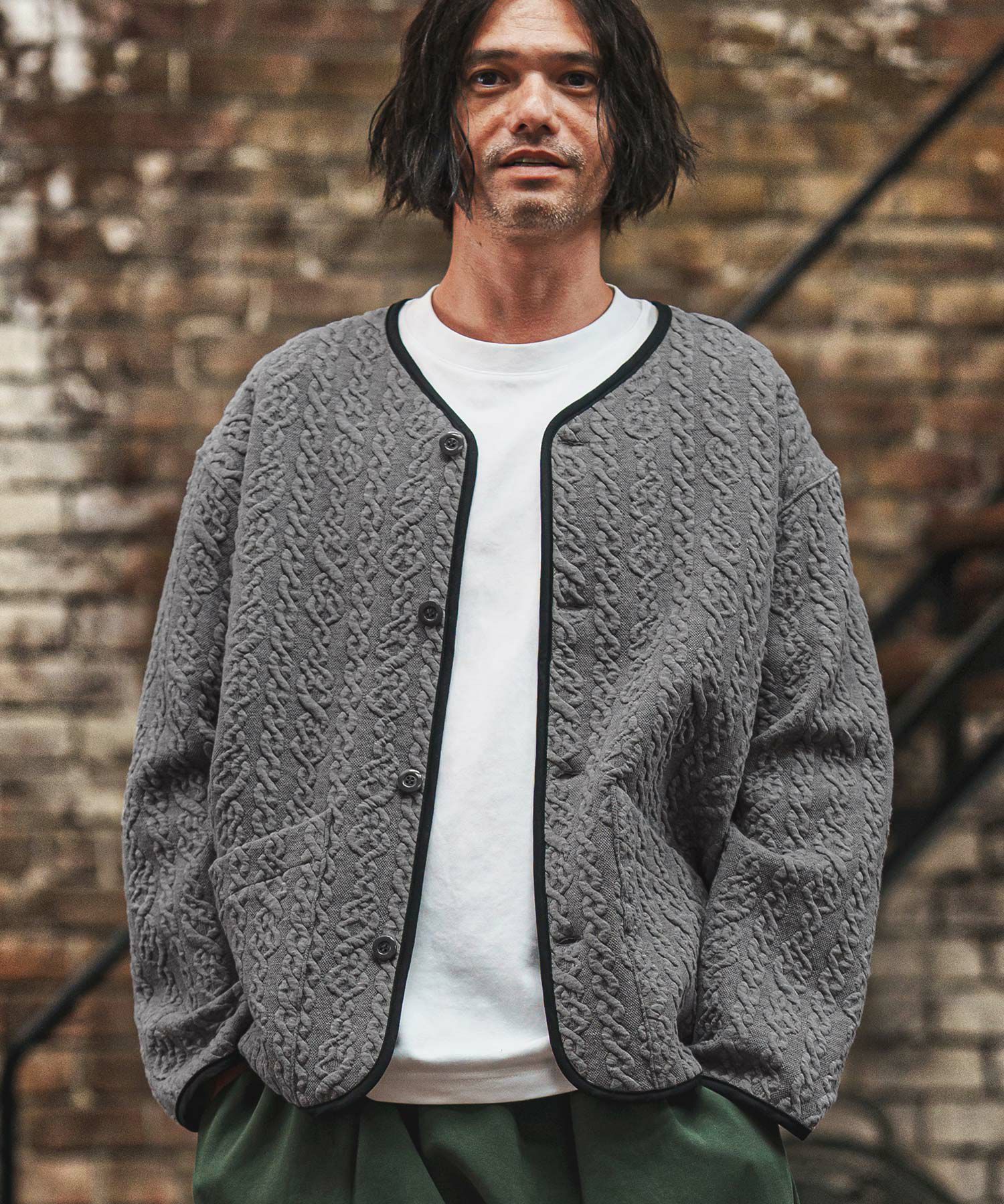 他の画像を見る ATTACHMENT 【ATTACHMENT(アタッチメント)】 COTTON DOUBLE FACECOLLARLESS CARDIGAN カラーレスカーディガン(AJ52-085) ¥ 33,000 税込 お気に入りに登録する