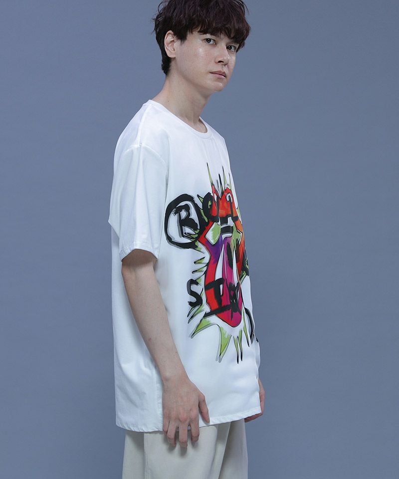 特殊なプリントで立体感があり、不思議な揺らぎを感じるTシャツです。