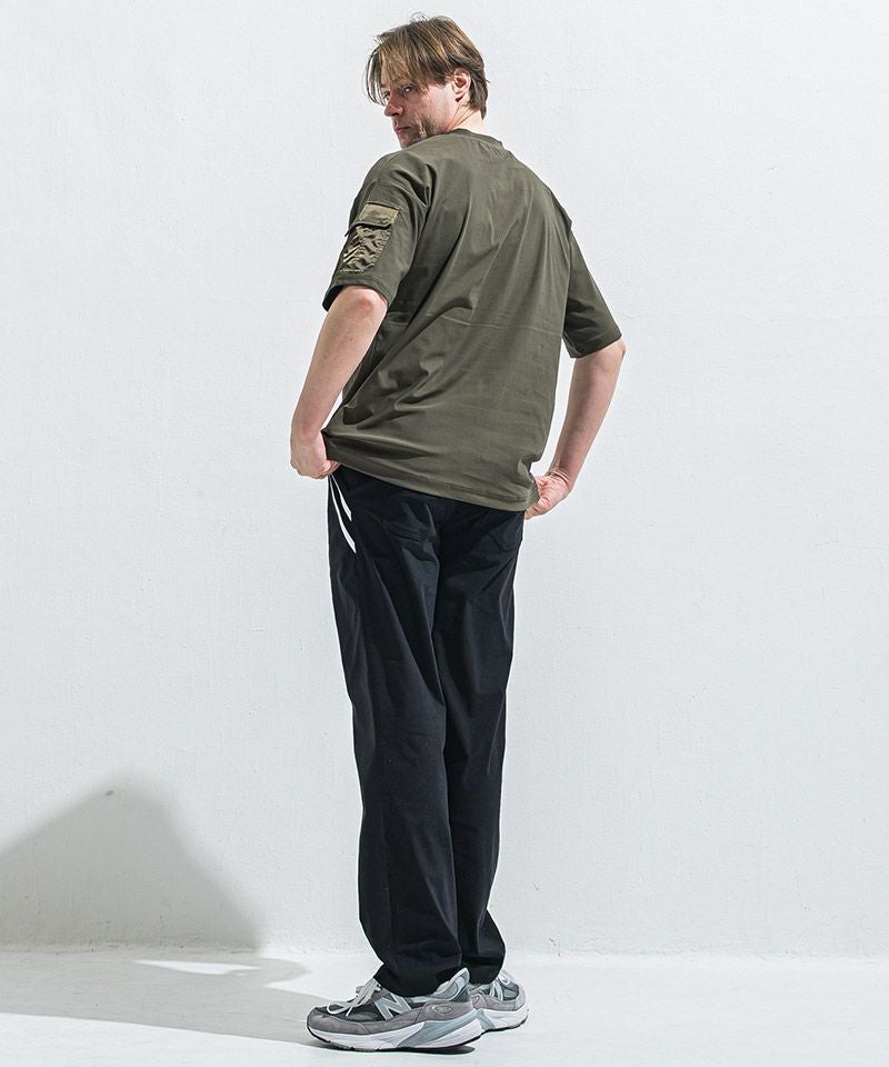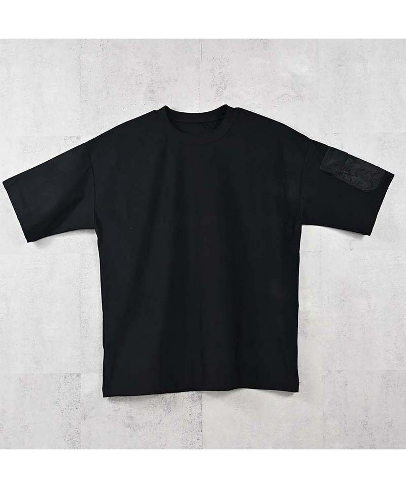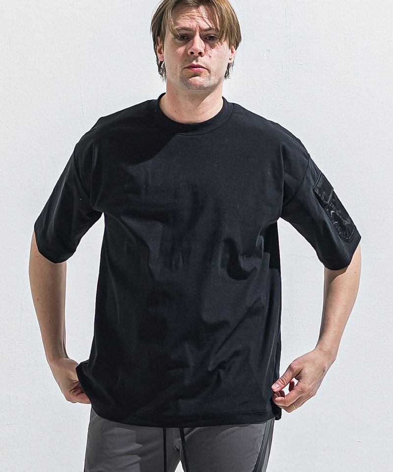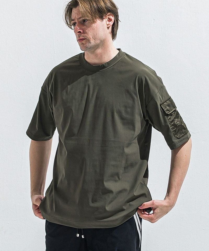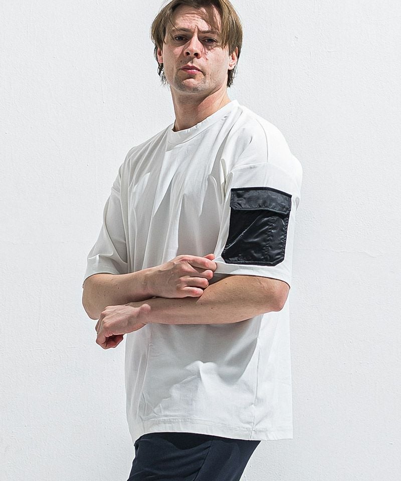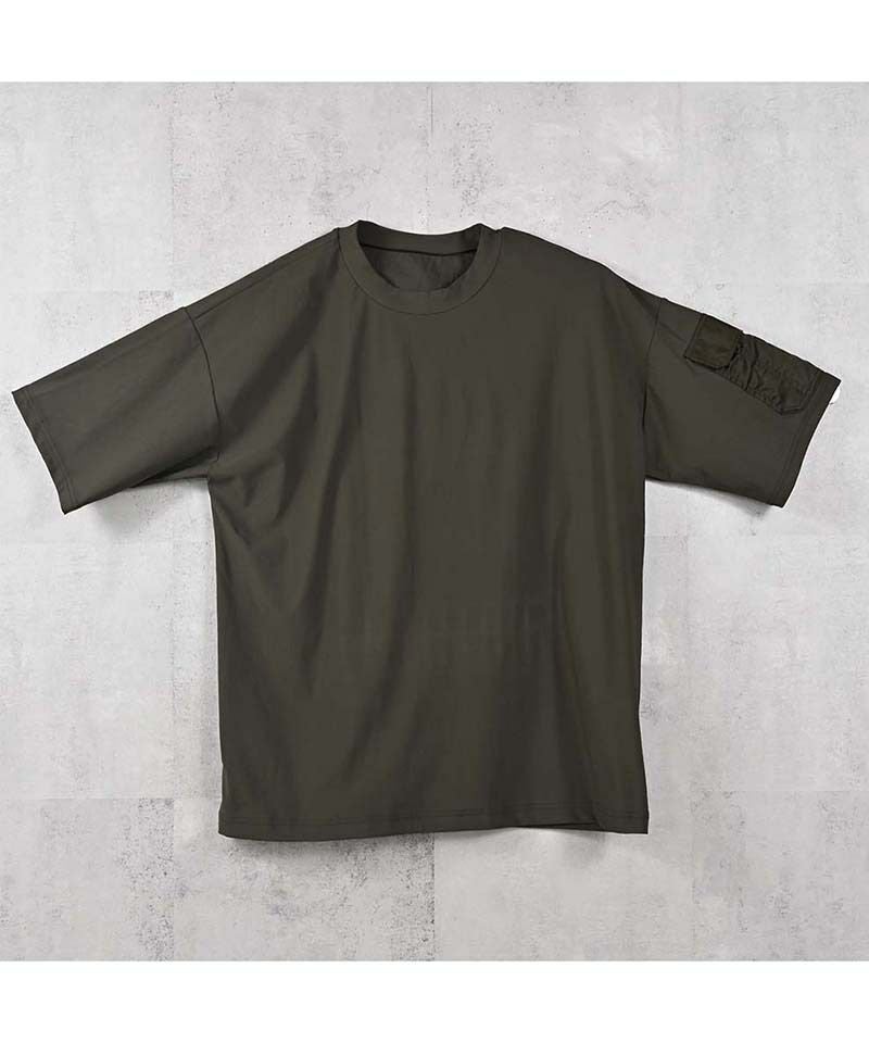 ミリタリーポケットがアクセントのナイロンオーバーTシャツ。
