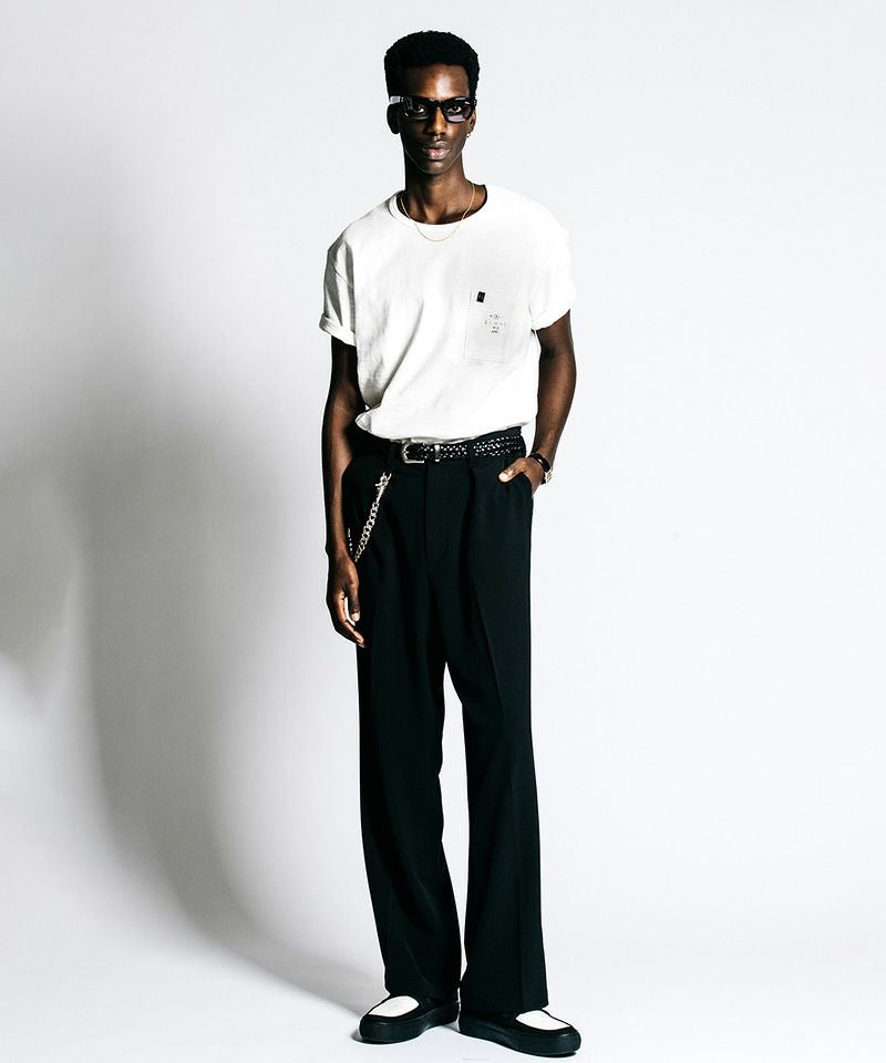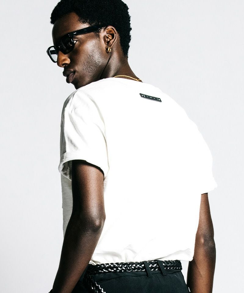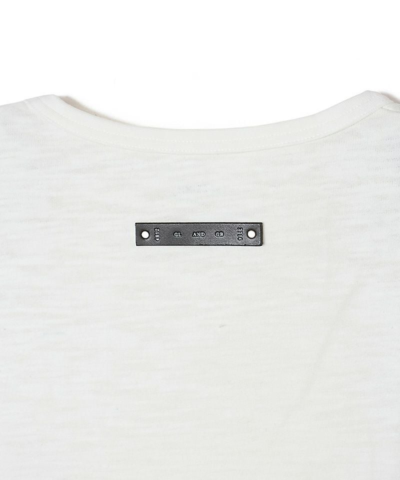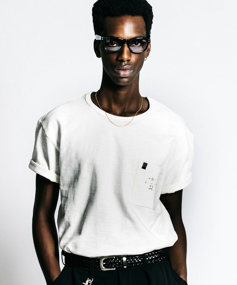胸元に鎮座するポケットと、背面に配されたウォッシャブルレザータグは、実用性をアイデンティティへと昇華させたインダストリアルな象徴です。