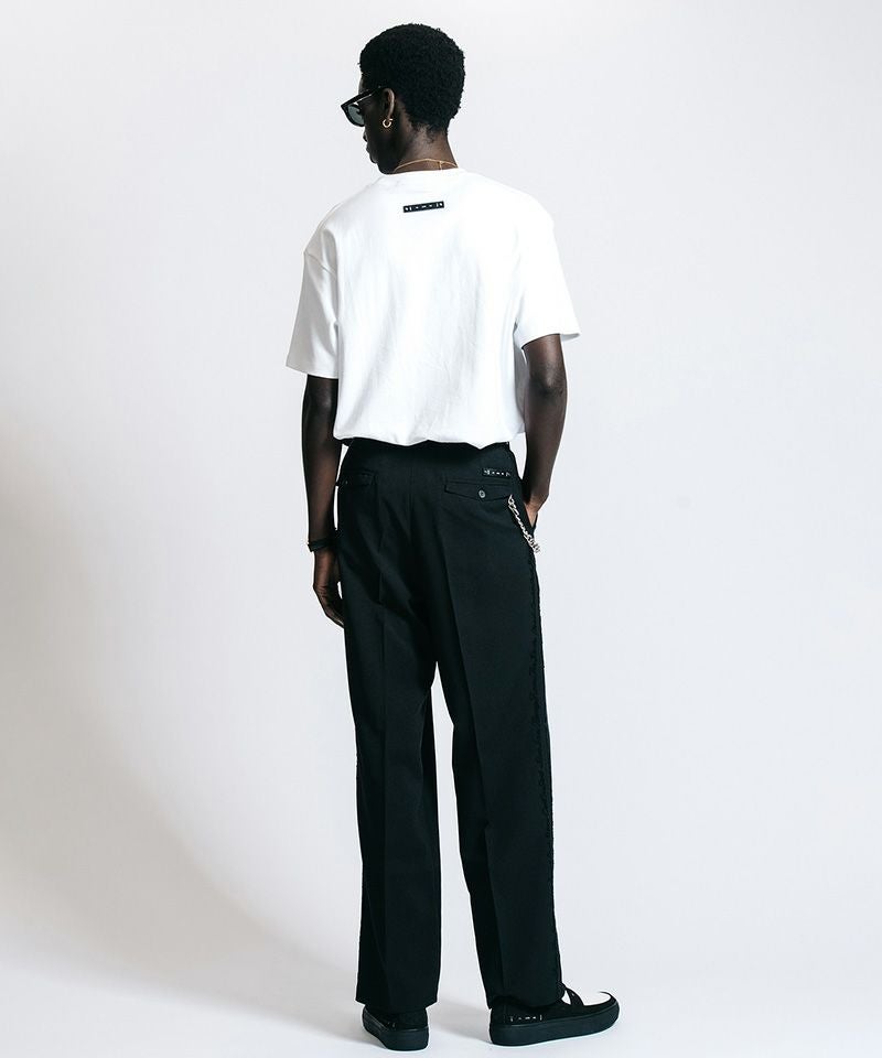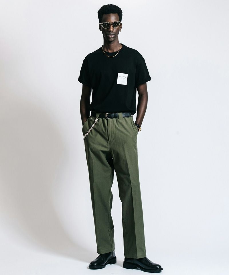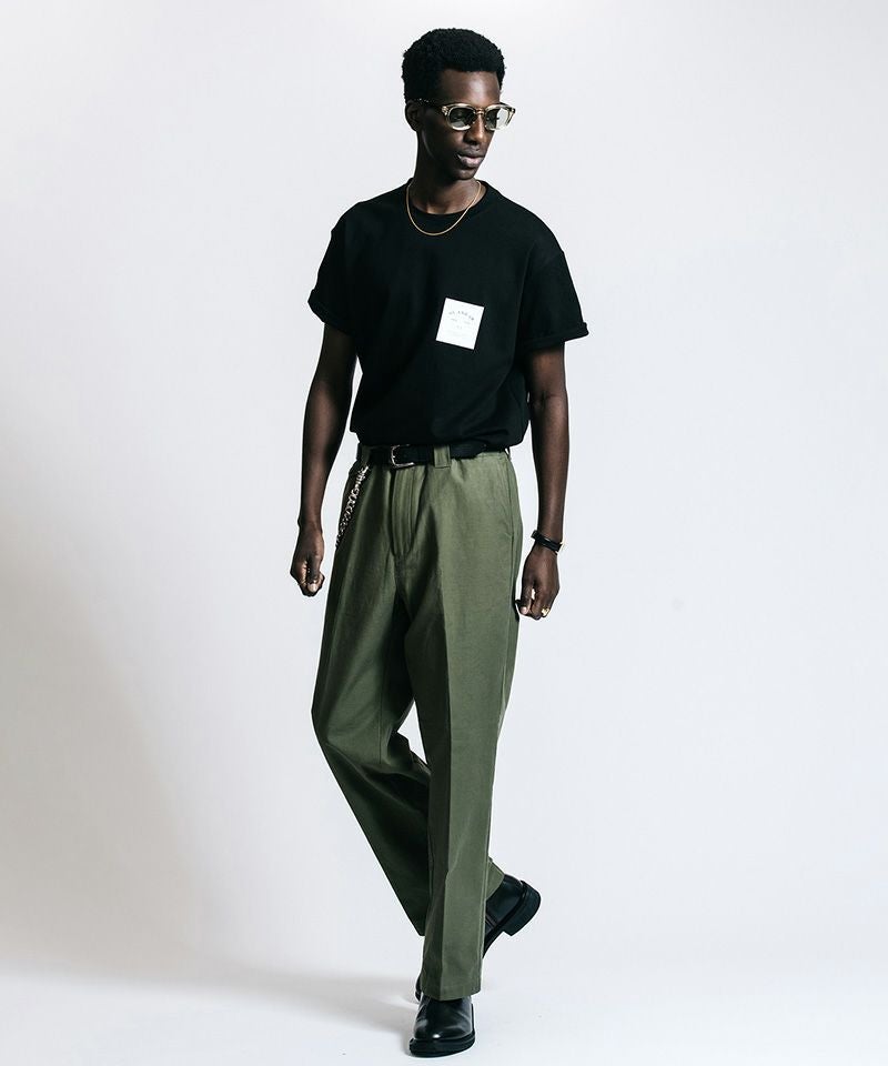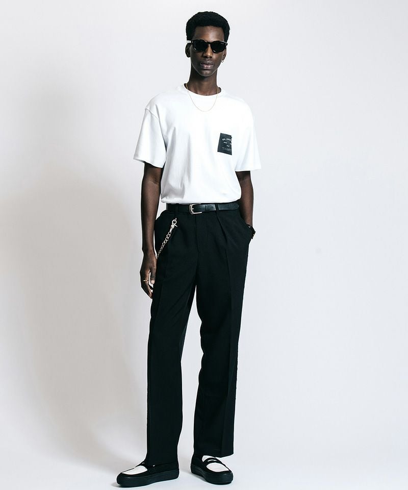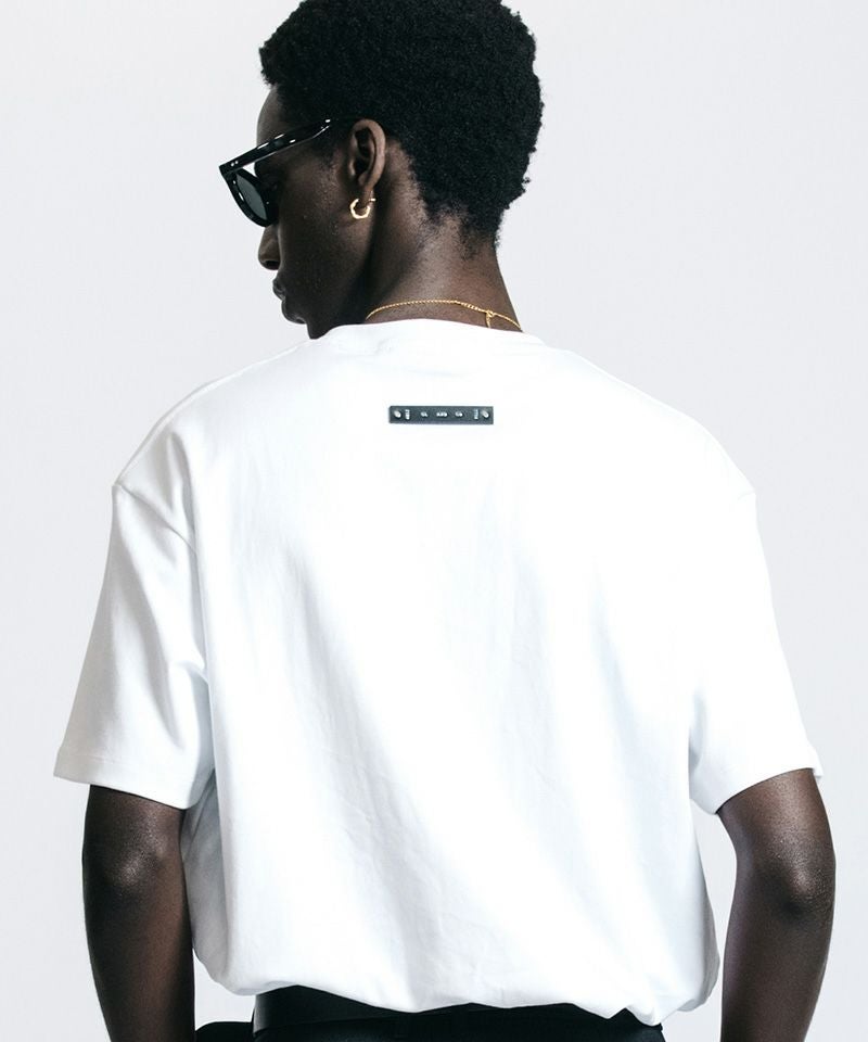 胸元に静かに、しかし確固たる存在感を放つボックスロゴは、既存の枠組みを理解した上で自分だけのルールを愉しむ大人の、揺るぎない美学を体現しています。