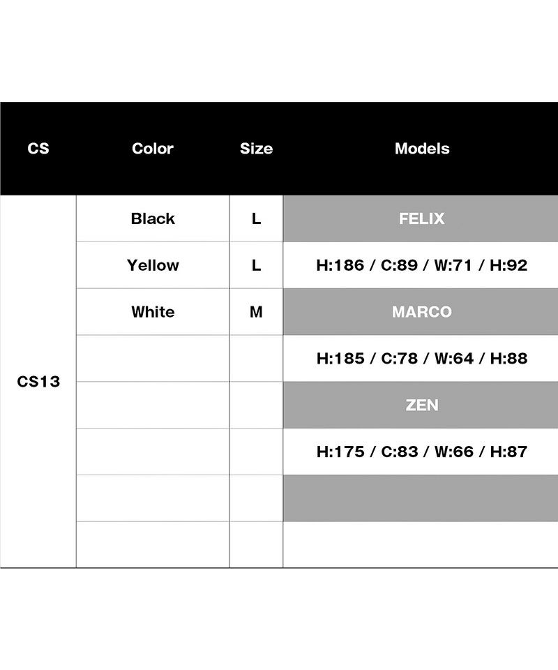 サイズ/着丈(Length)/身幅(Chest)/肩幅(Shoulder)/袖丈(Sleeves) /