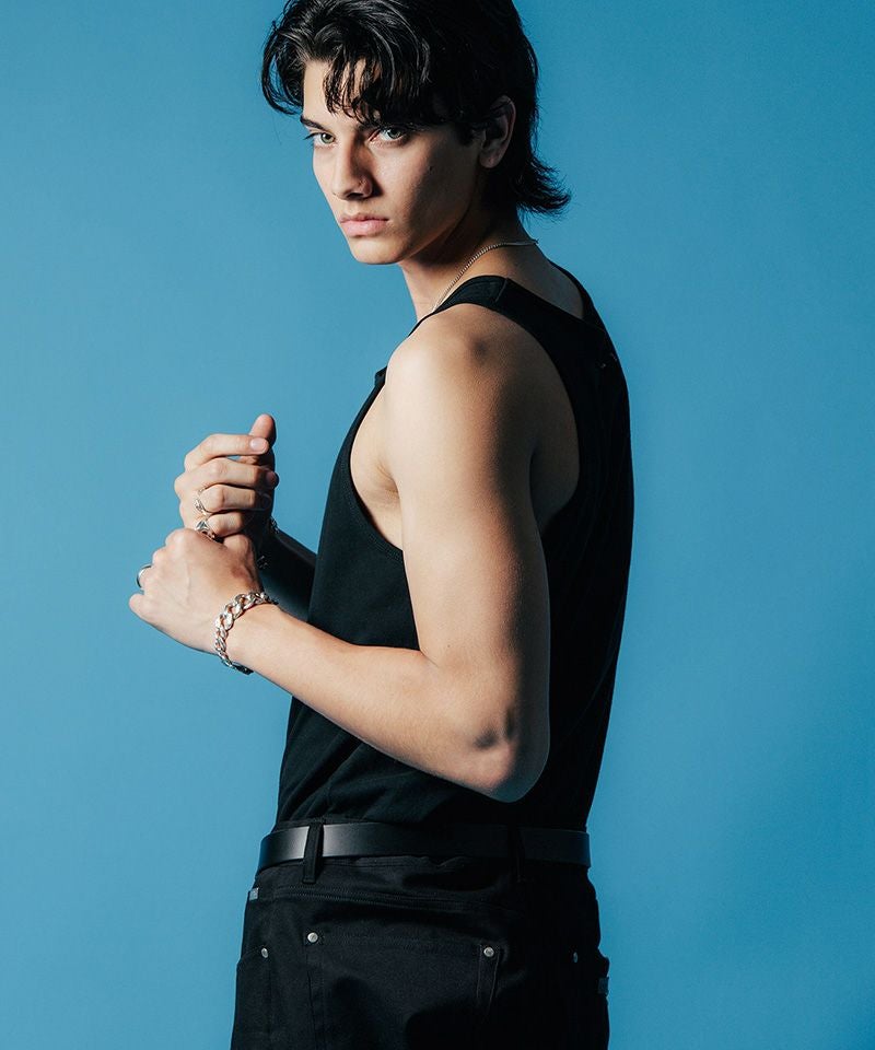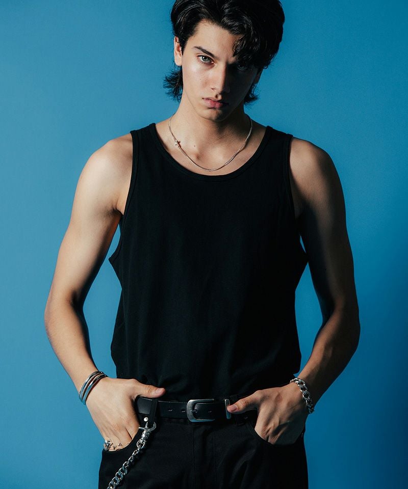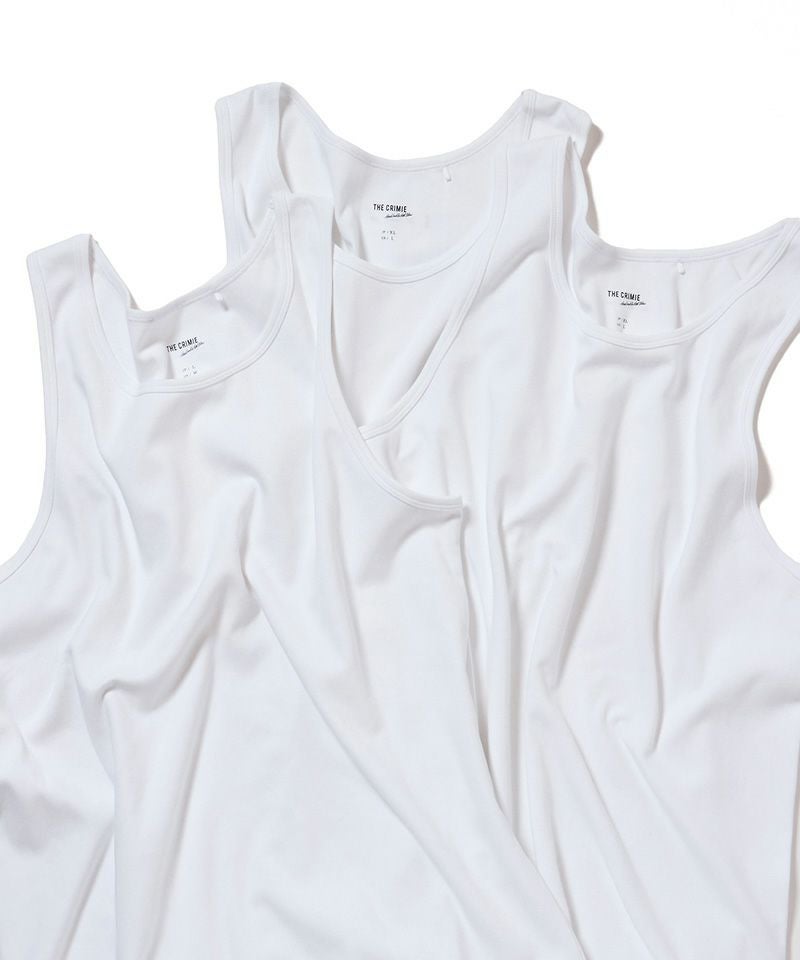 THE CRIMIEが展開する定番のプリントTと同様のボディを使用した贅沢な2P+1Pサービスパックタンクトップ。
