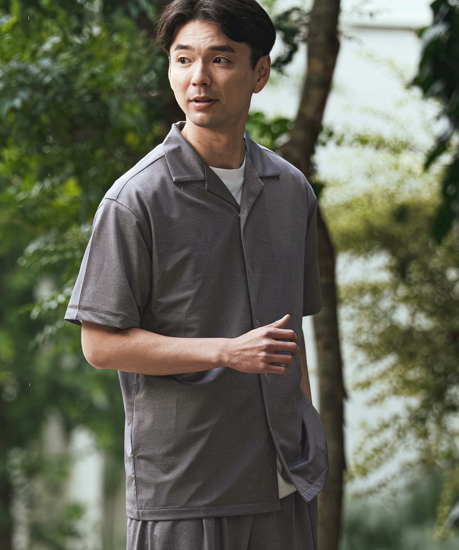 Jih Nunc 【Jih Nunc(ジーヌンク)】【予約販売4月中旬~下旬入荷】ストレッチルーズシルエットハーフスリーブシャツ(JIH-R1176)