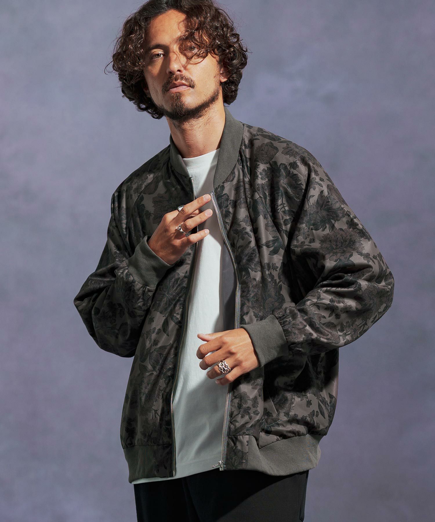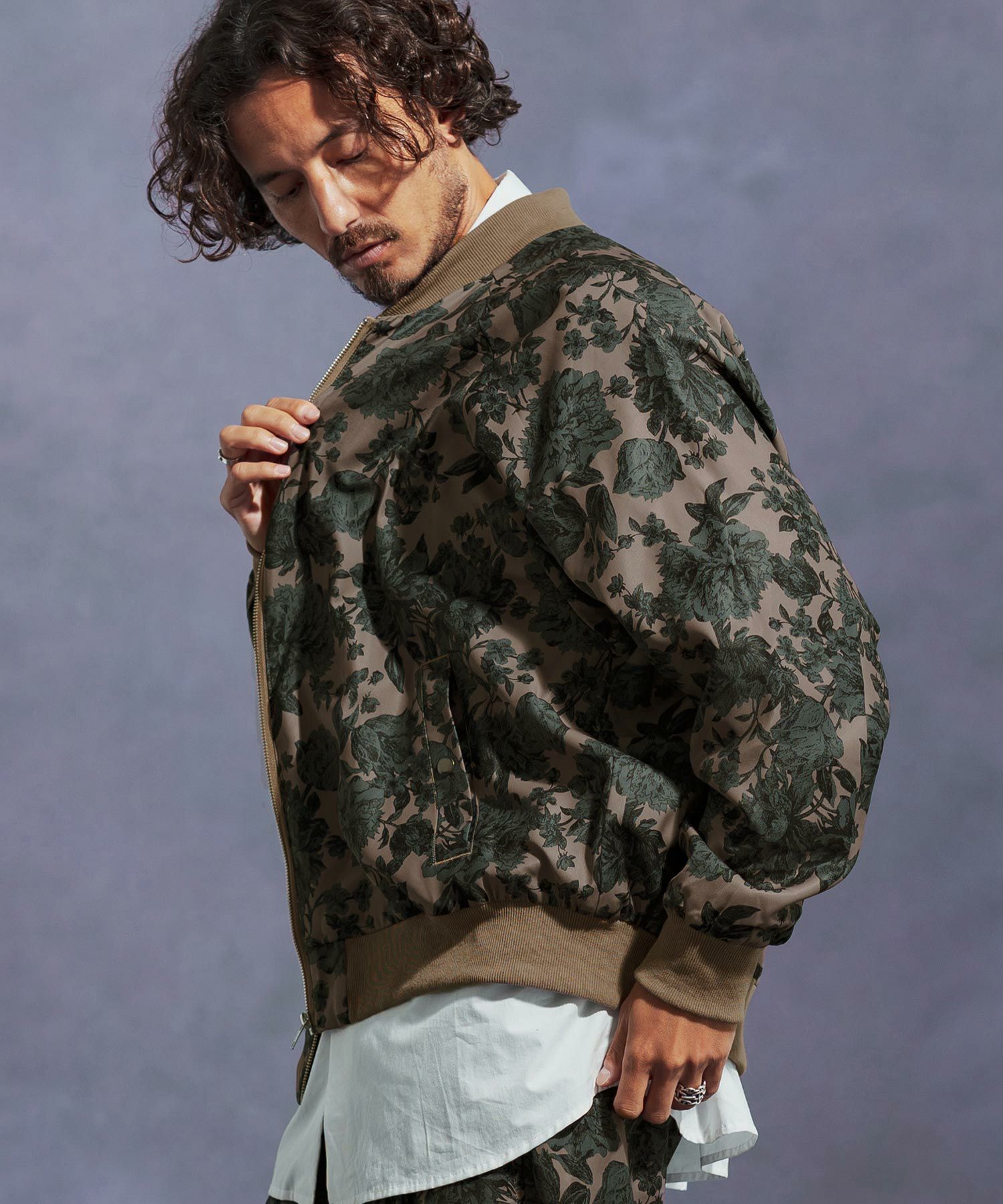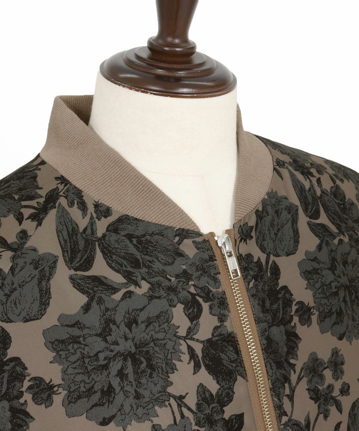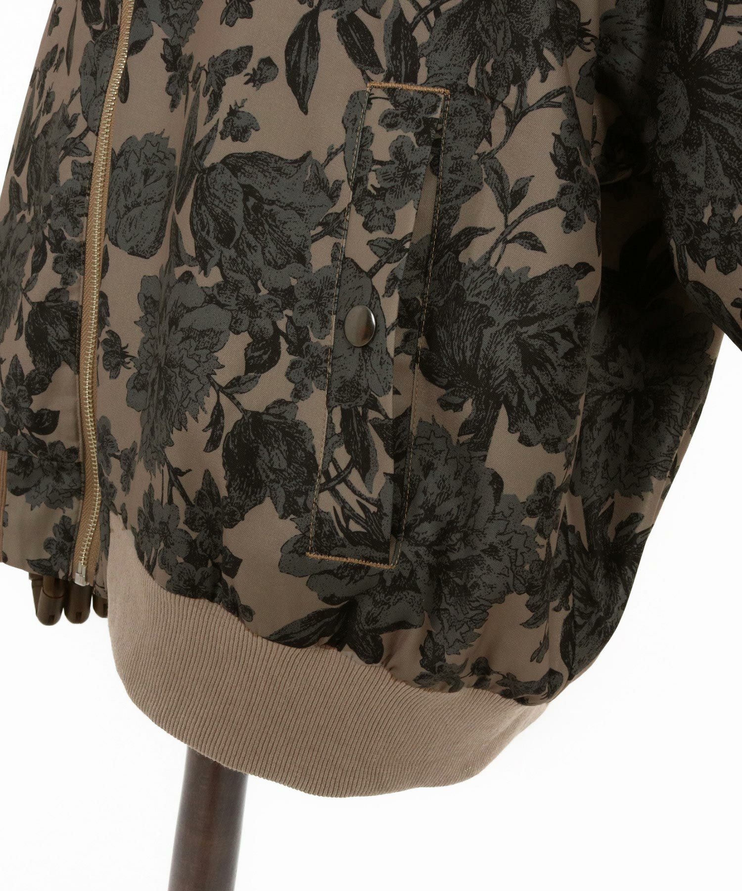 フラワー総柄プリントのリブブルゾン。