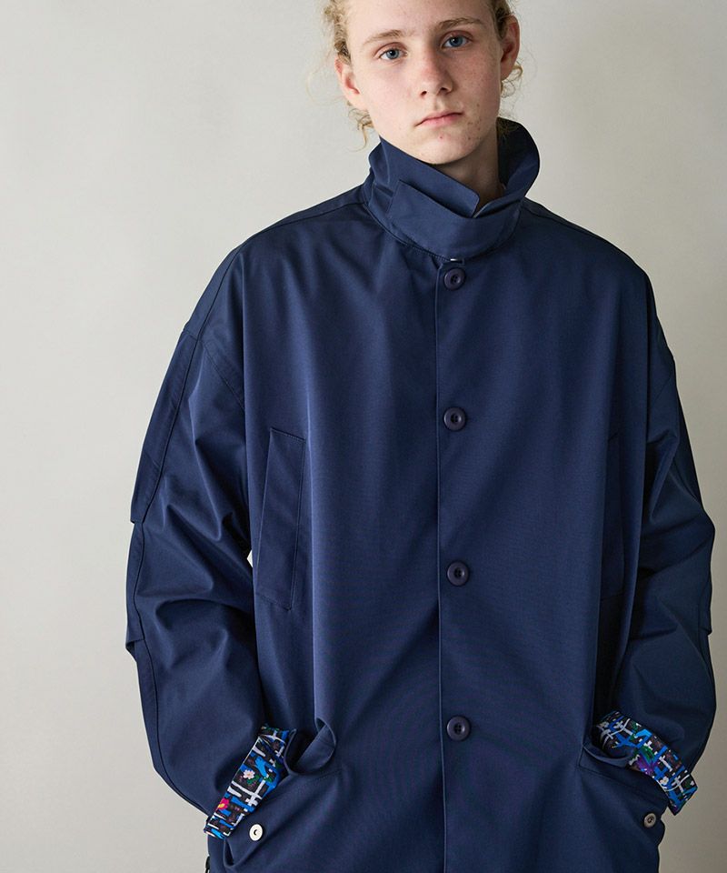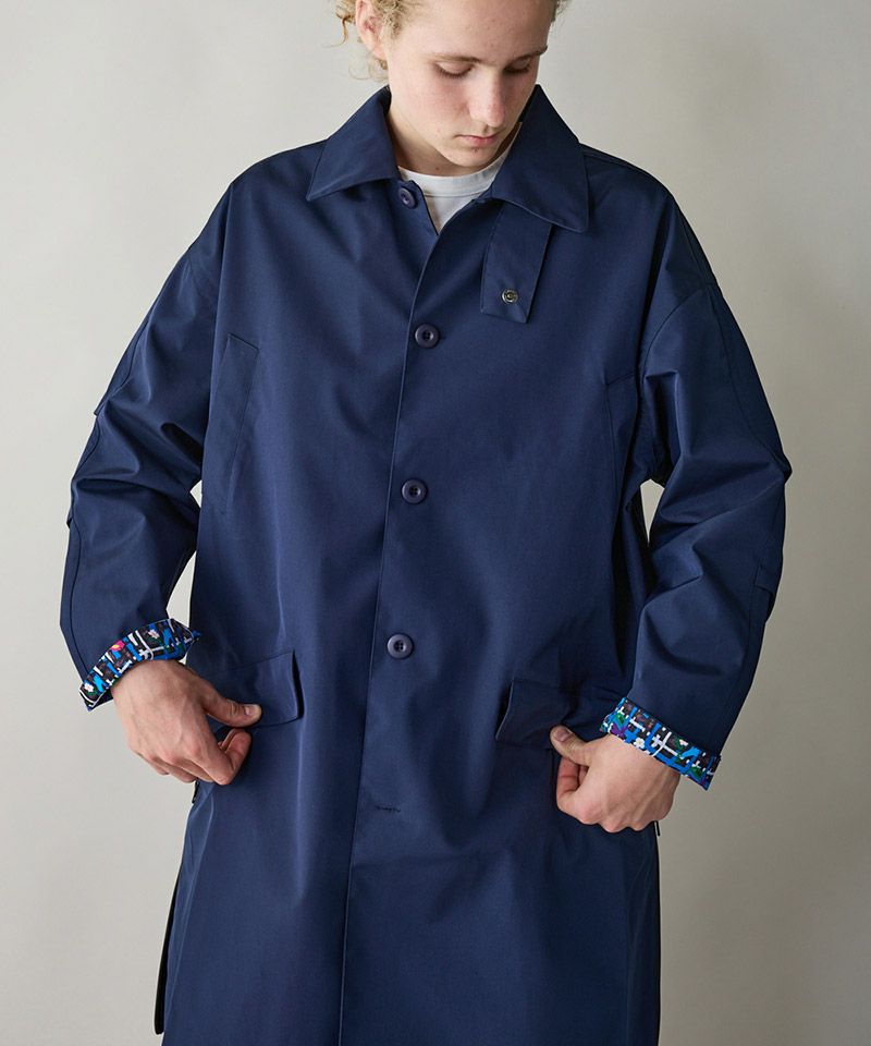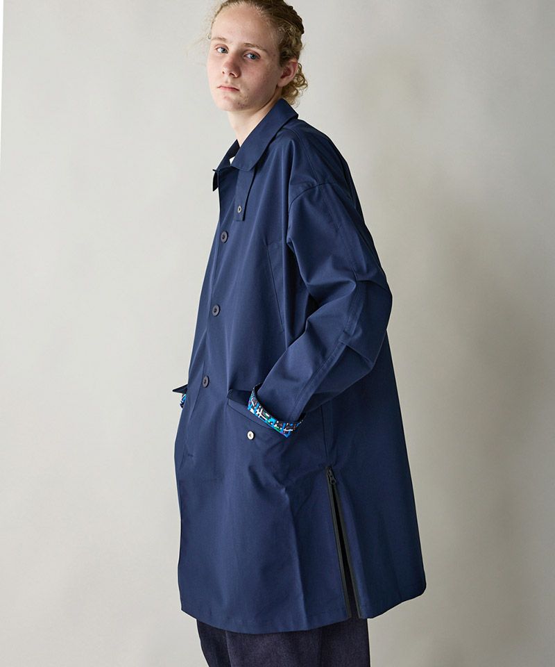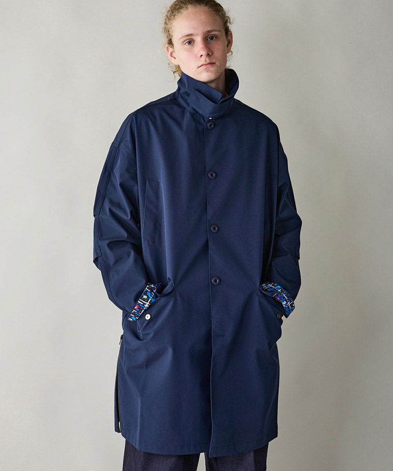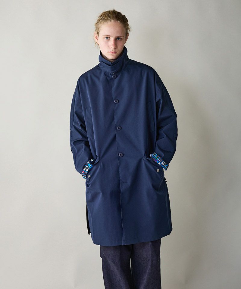 3層構造の高機能素材を採用したステンカラーコート。
