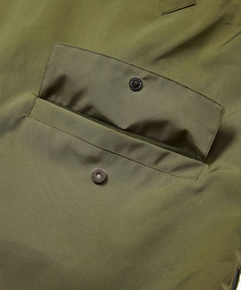 表地はハリのある質感で、耐水・防風・透湿性を兼ね備え、天候に左右されない快適な着用感を提供します。