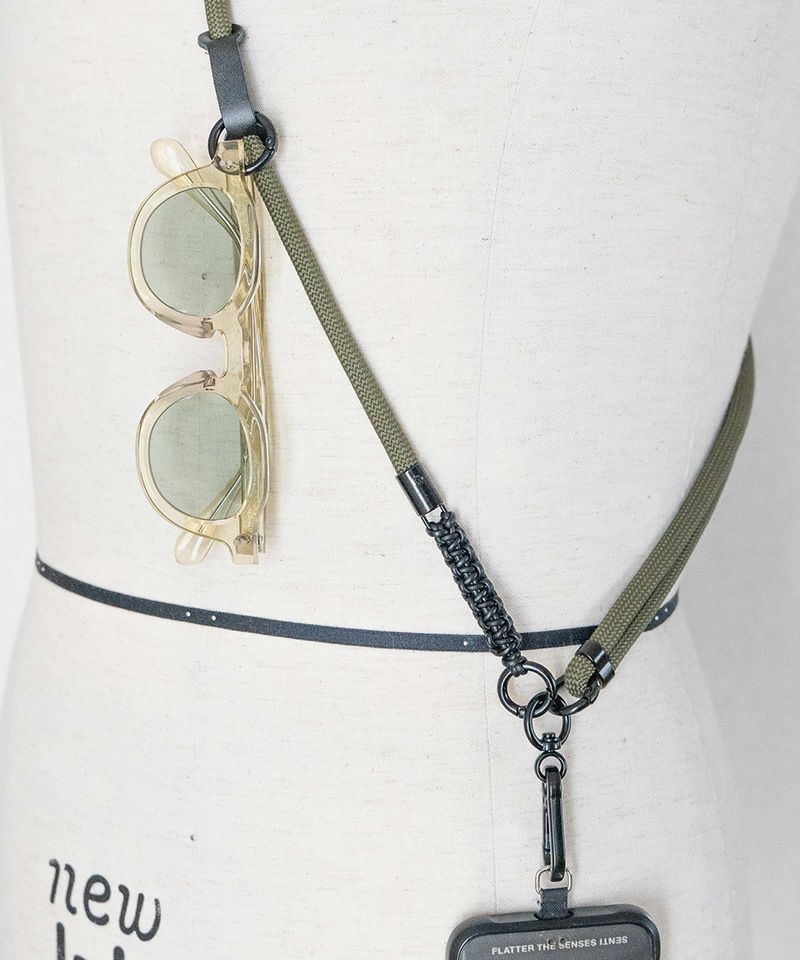 ■コード途中にはタブ+丸カラビナを配置しておりサングラス他、小物を引っかけられます