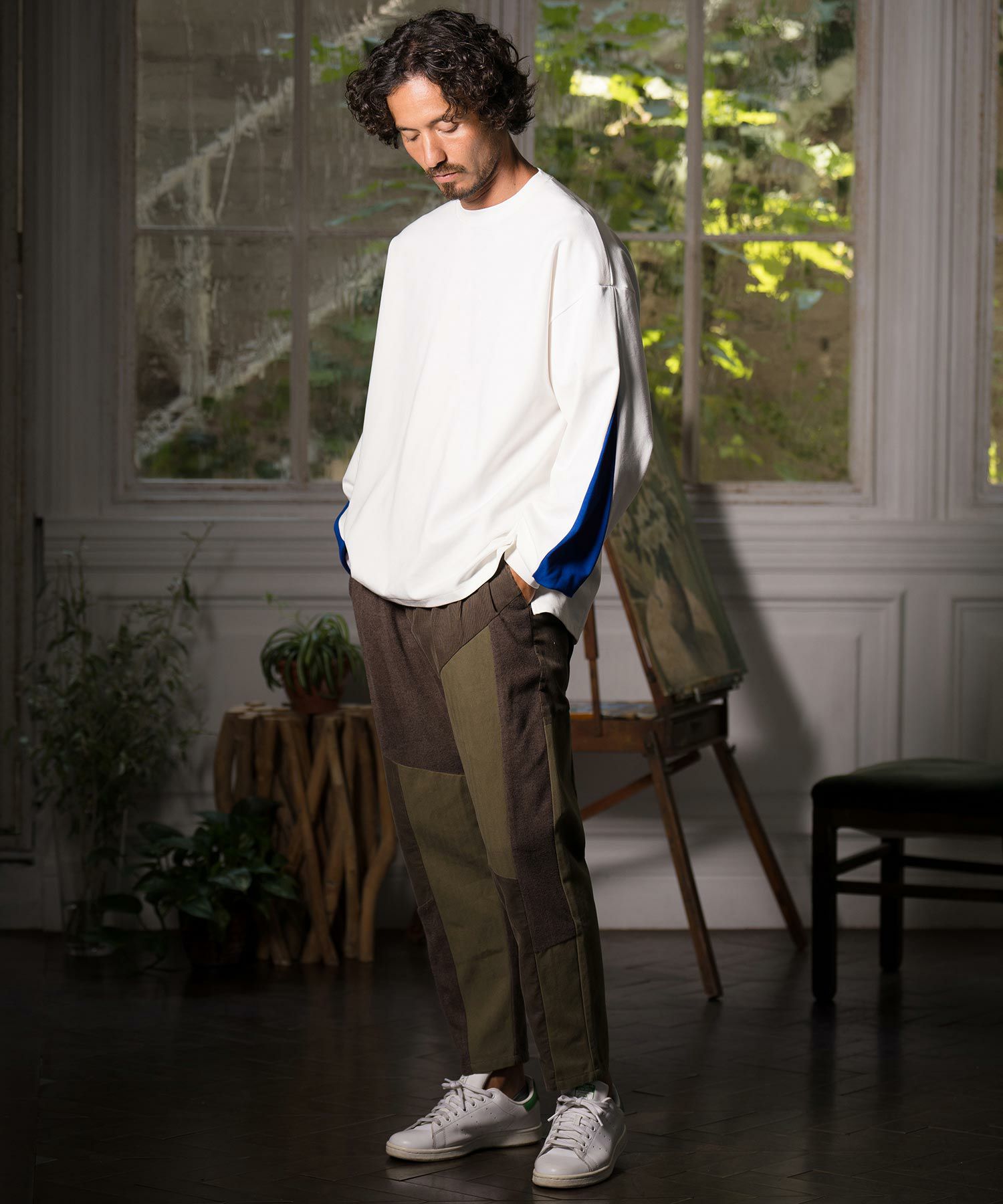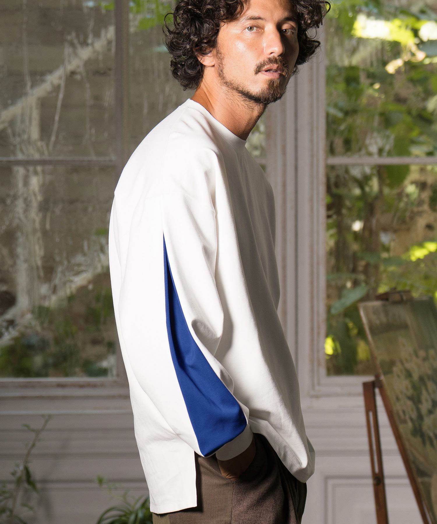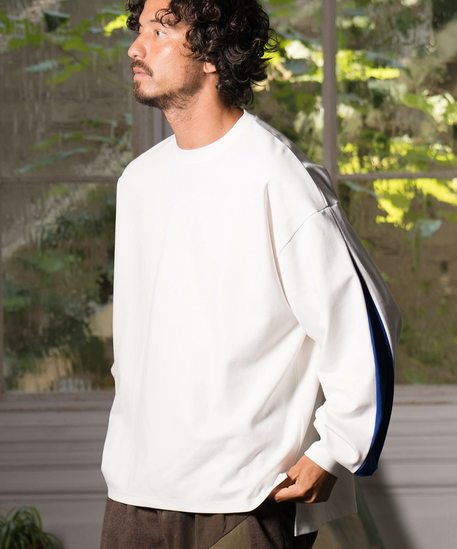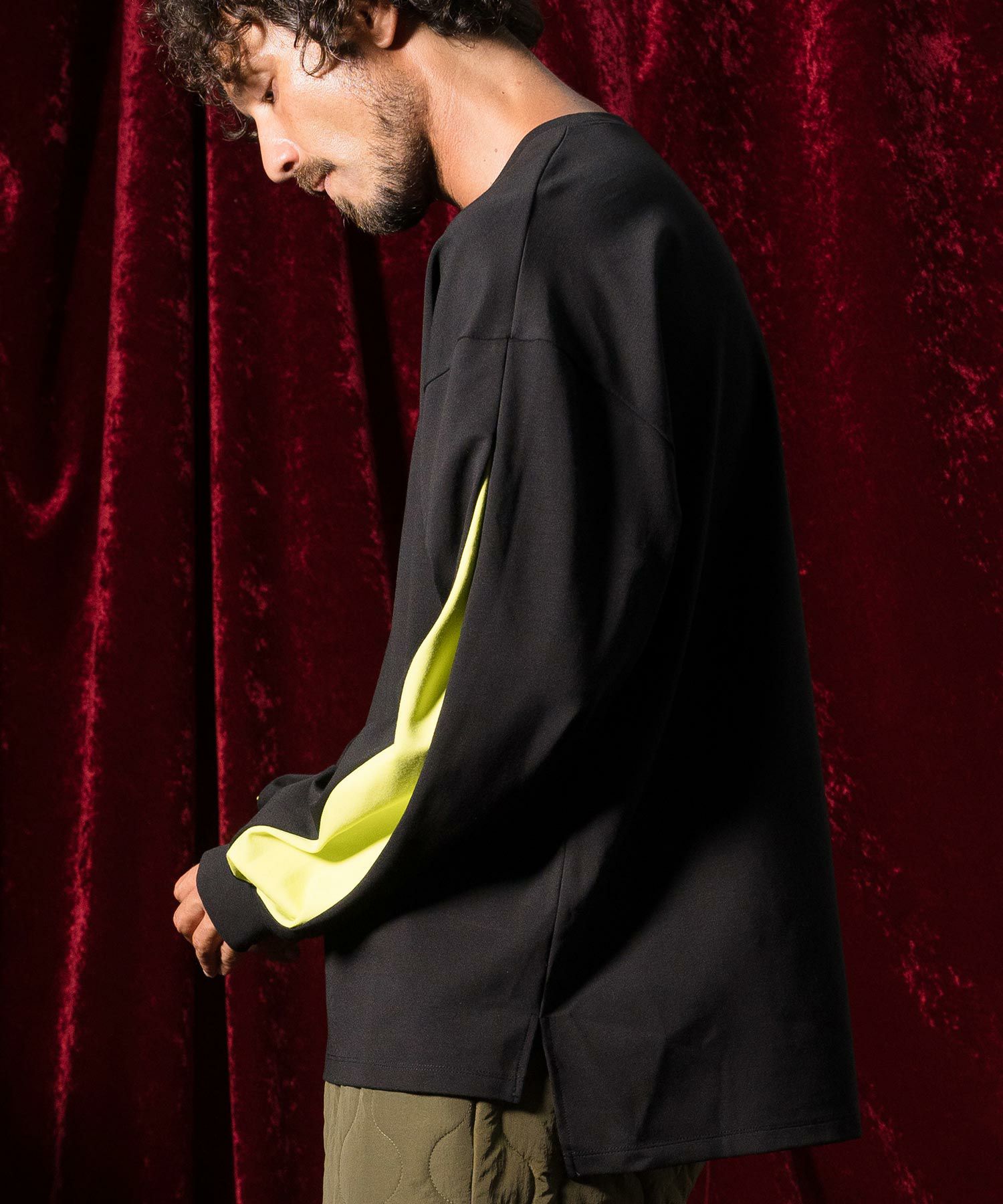 袖に配色タックデザインを配した個性的なディティールのロングスリーブカットソーです。