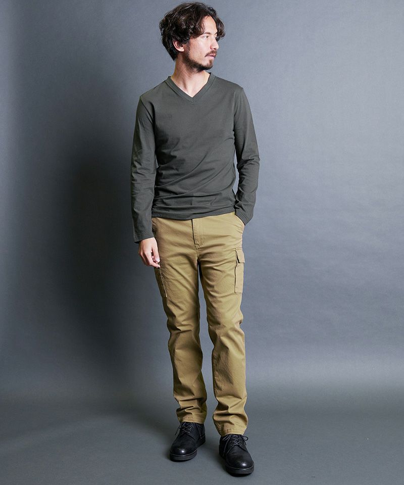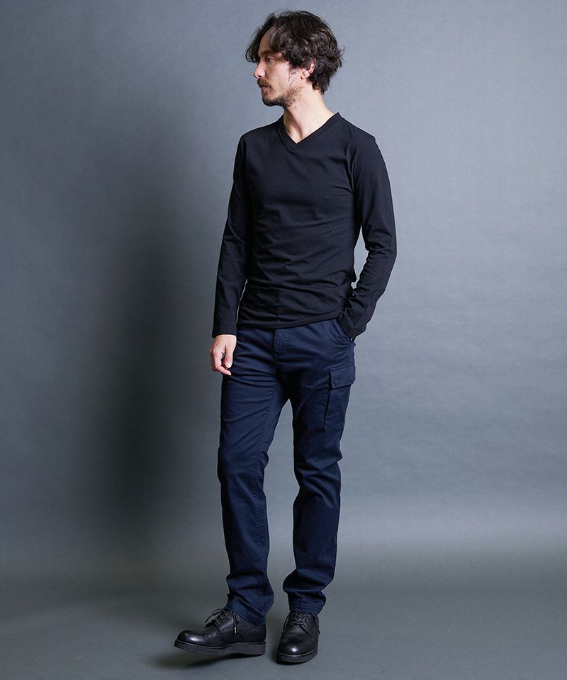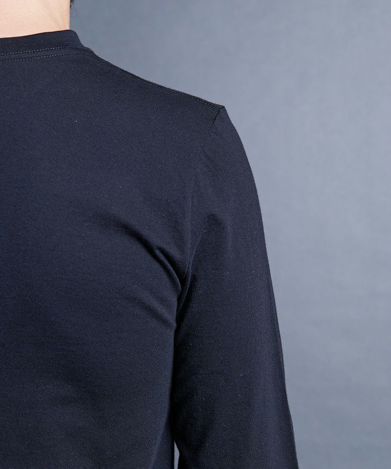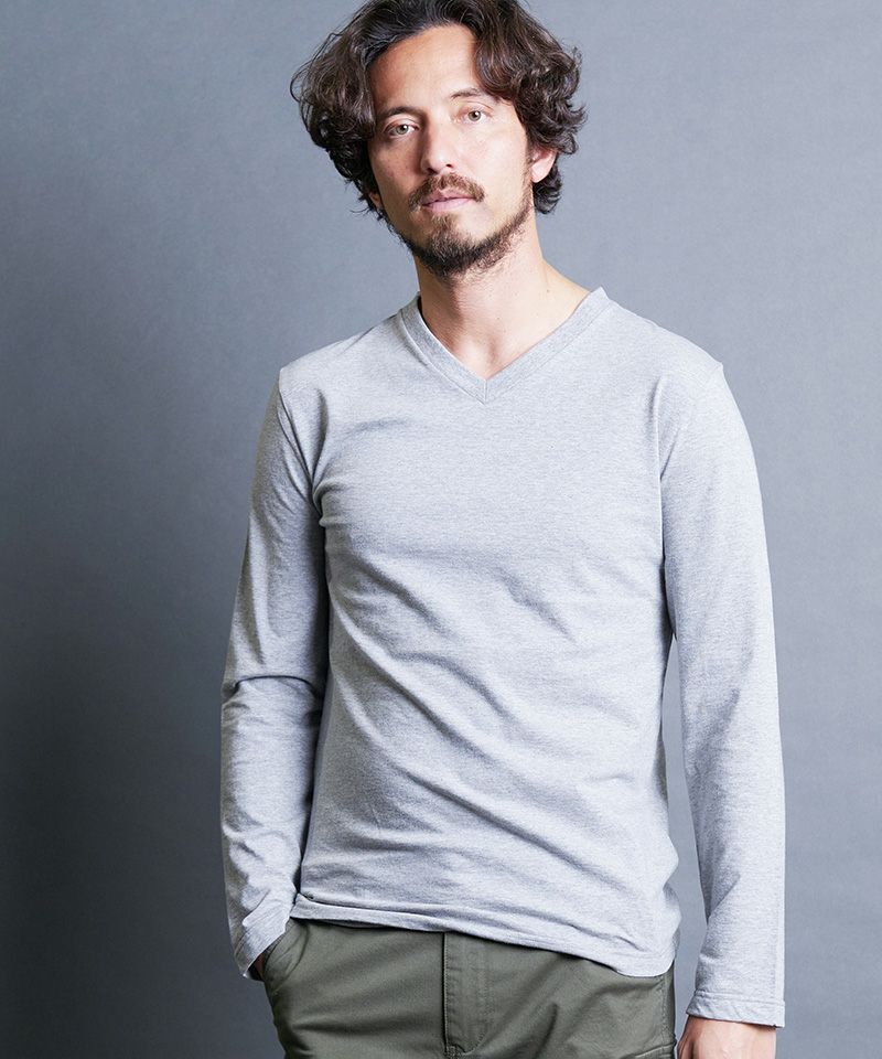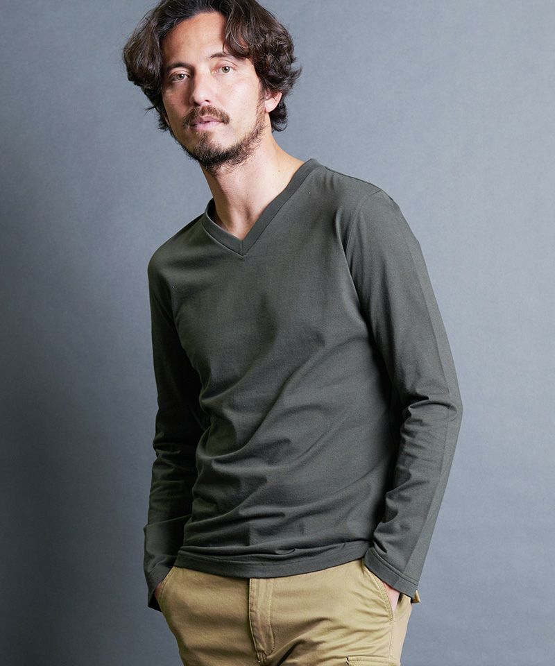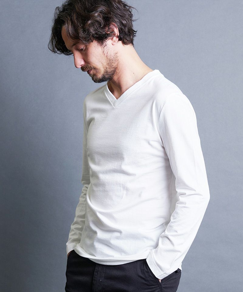 上質で肌触りの良い天竺素材を使用した、ベーシックVネックロングスリーブ。