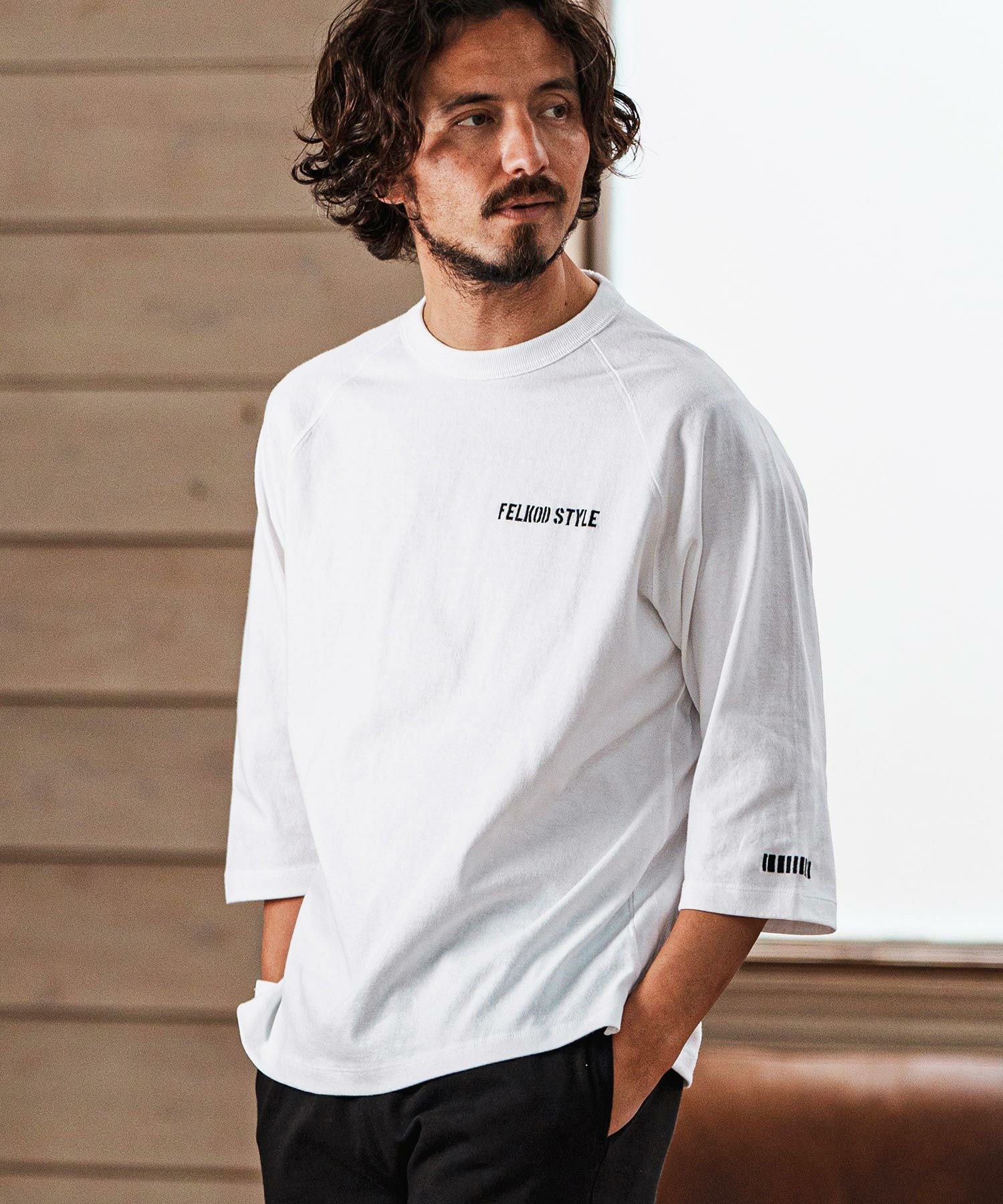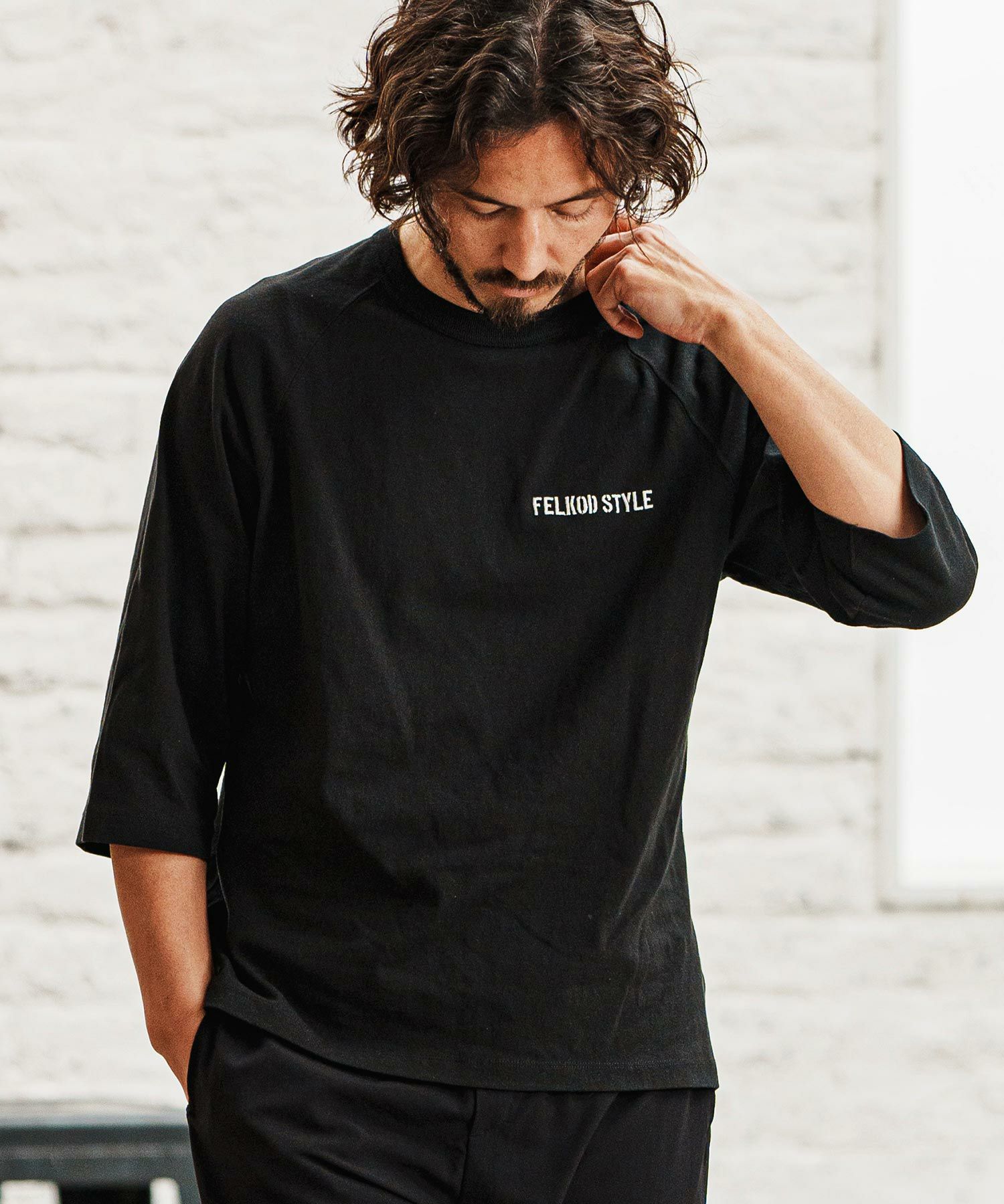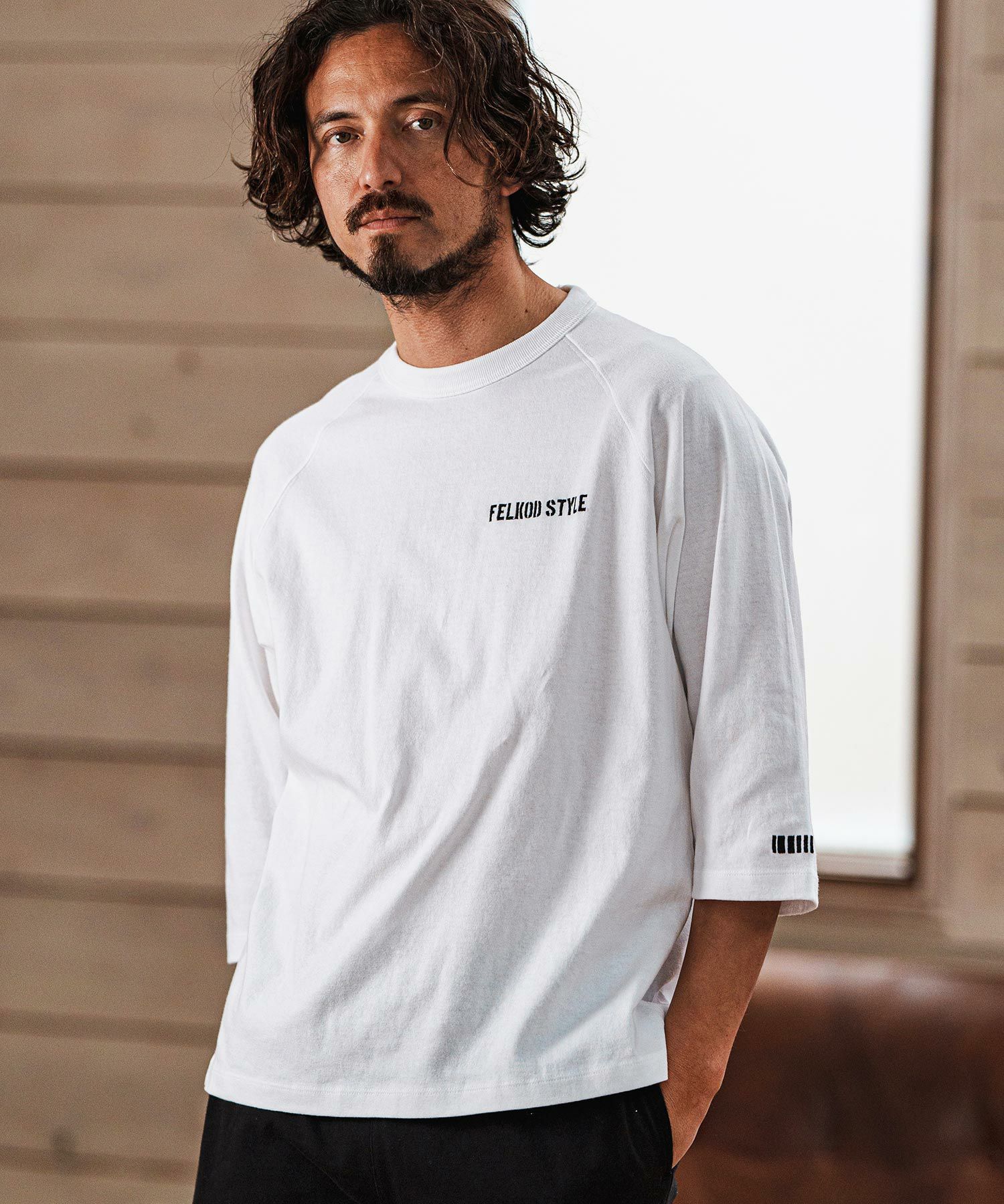 【felkod(フィルコッド)】Dry touch Relax Silhouette 3-4 Sleeve Embroidery Tee Tシャツ(F25S270)