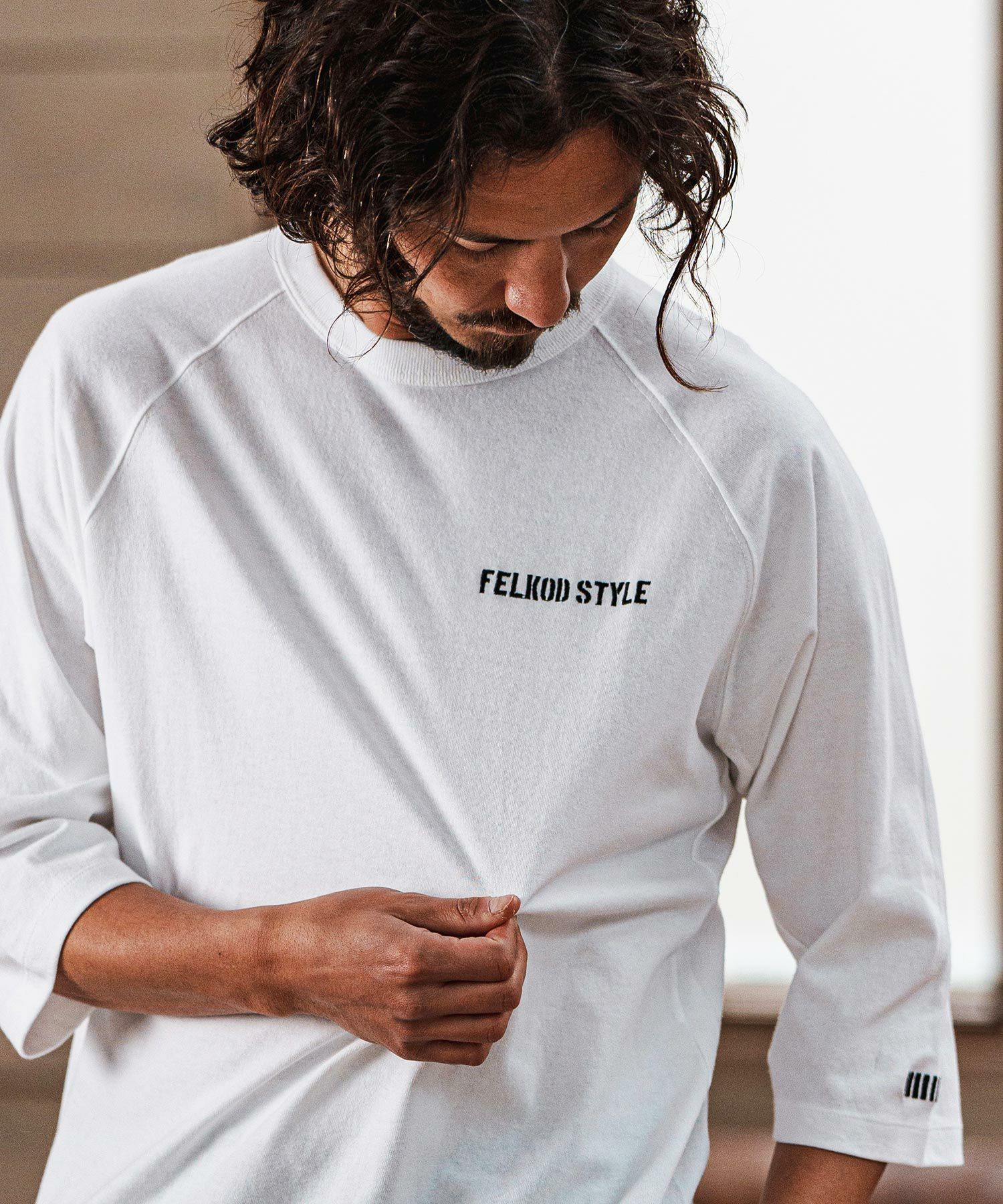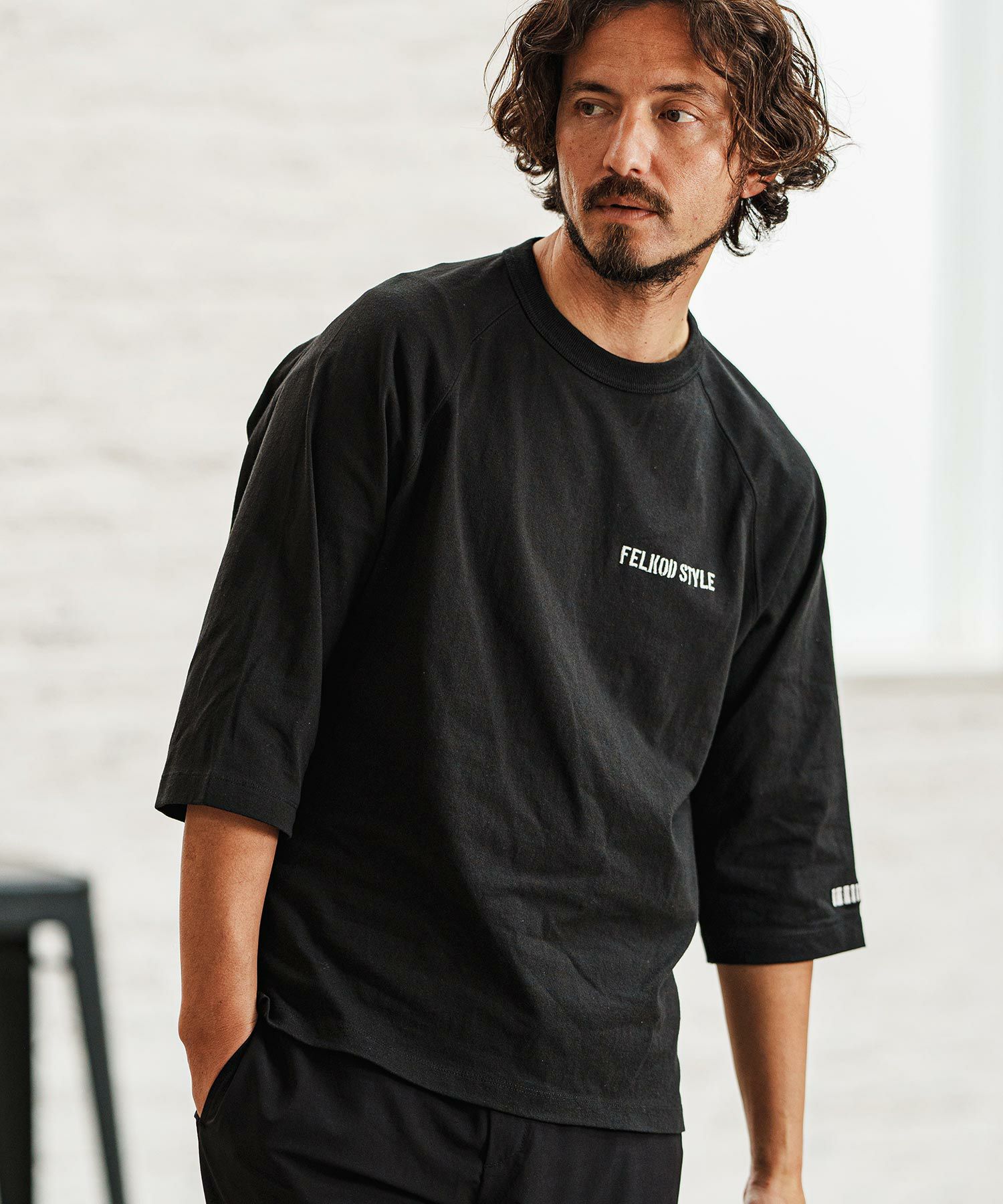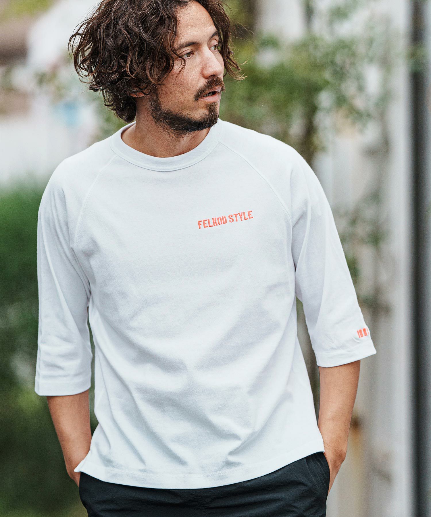 【felkod(フィルコッド)】Dry touch Relax Silhouette 3-4 Sleeve Embroidery Tee Tシャツ(F25S270)