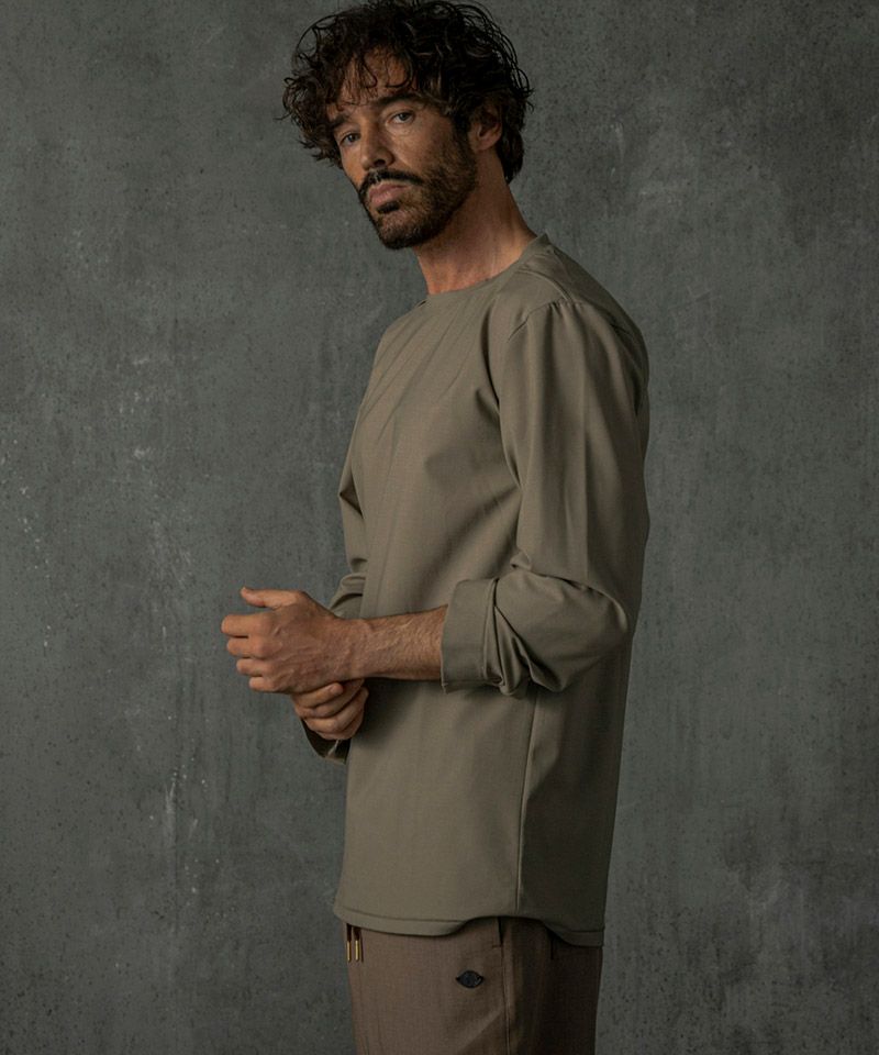 ウール混のストレッチ素材を使用しているため、速乾性、防臭性、保温性に優れた着用時にストレスのかからない一着。