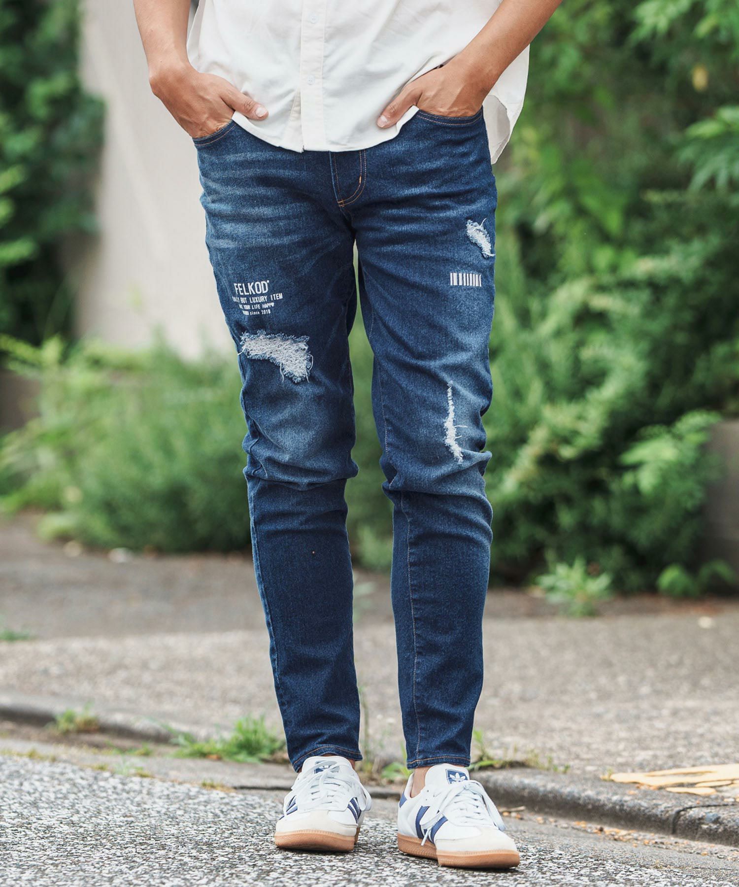 他の画像を見る SALE felkod 60%OFF【felkod(フィルコッド)】Distressed Stretch Skinny Denim Pants デニムパンツ(F24N180) ¥ 29,700 ¥ 11,880 税込 お気に入りに登録する