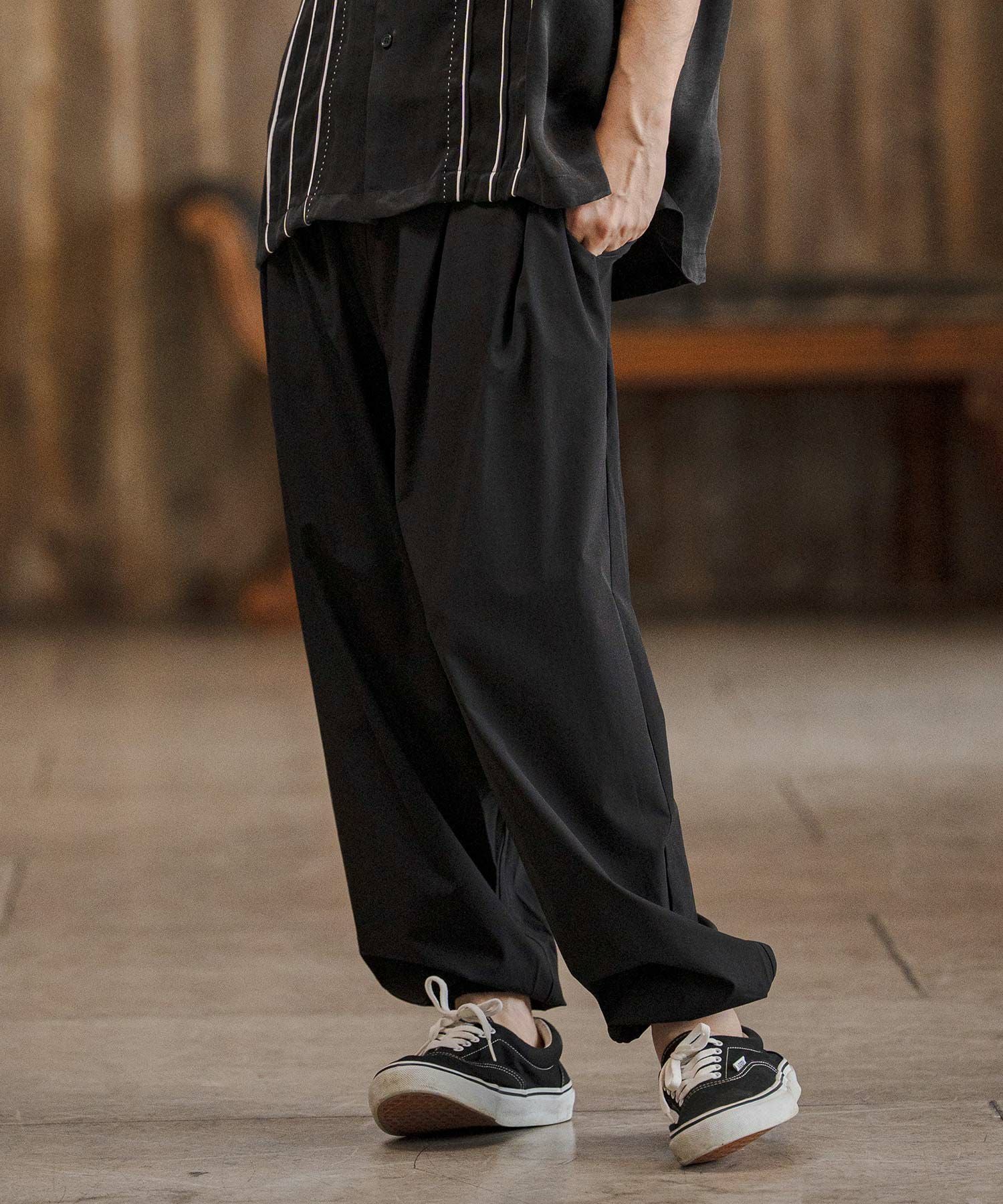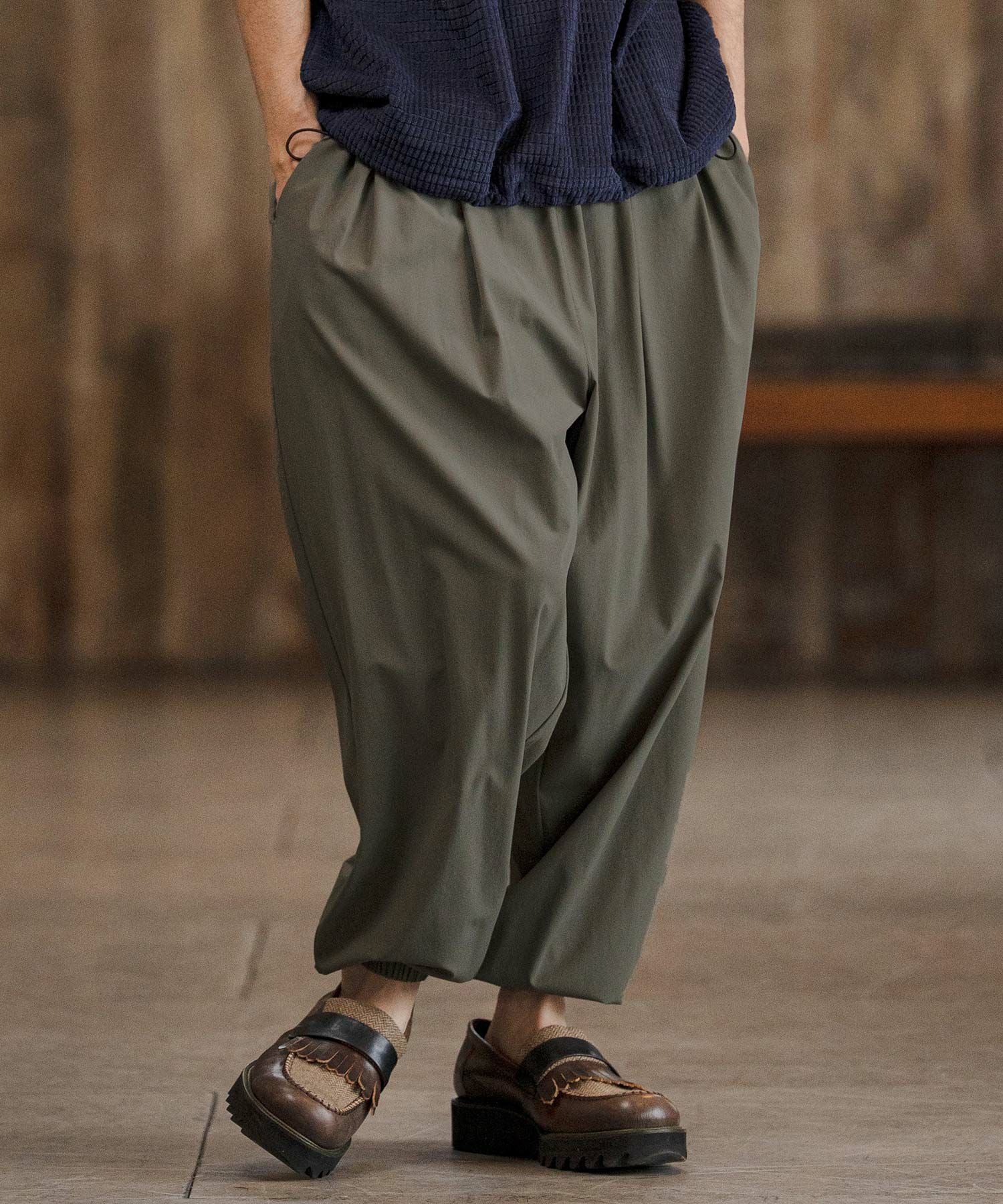 上品な落ち感と立体的なボリュームを両立した、ドレープバルーンパンツ。