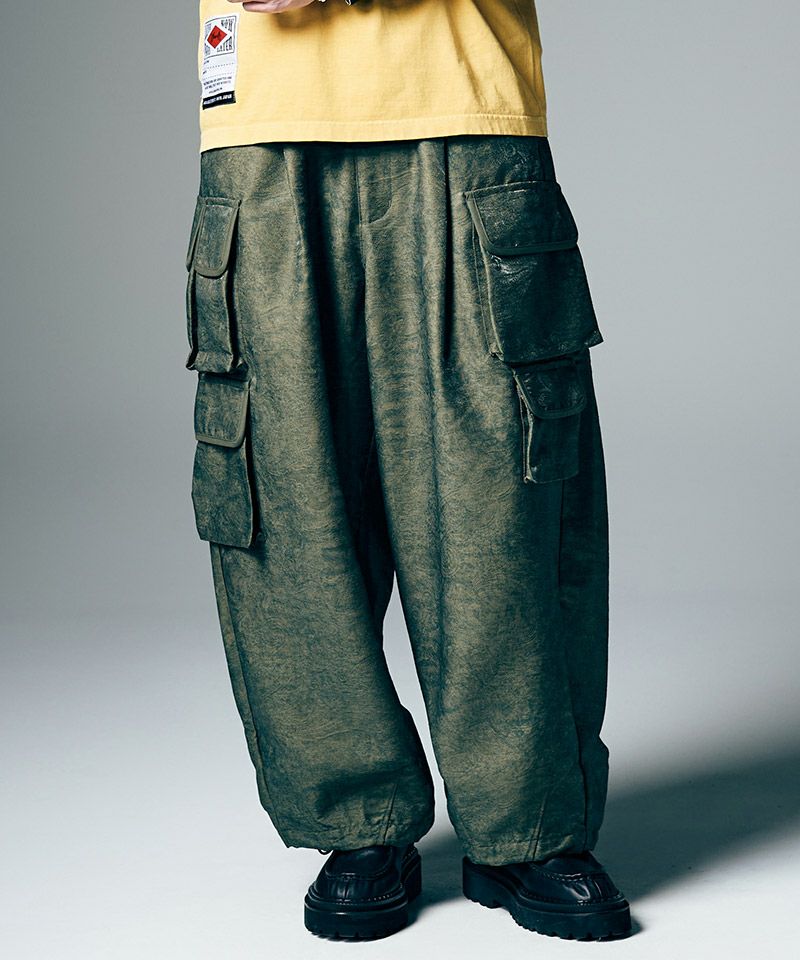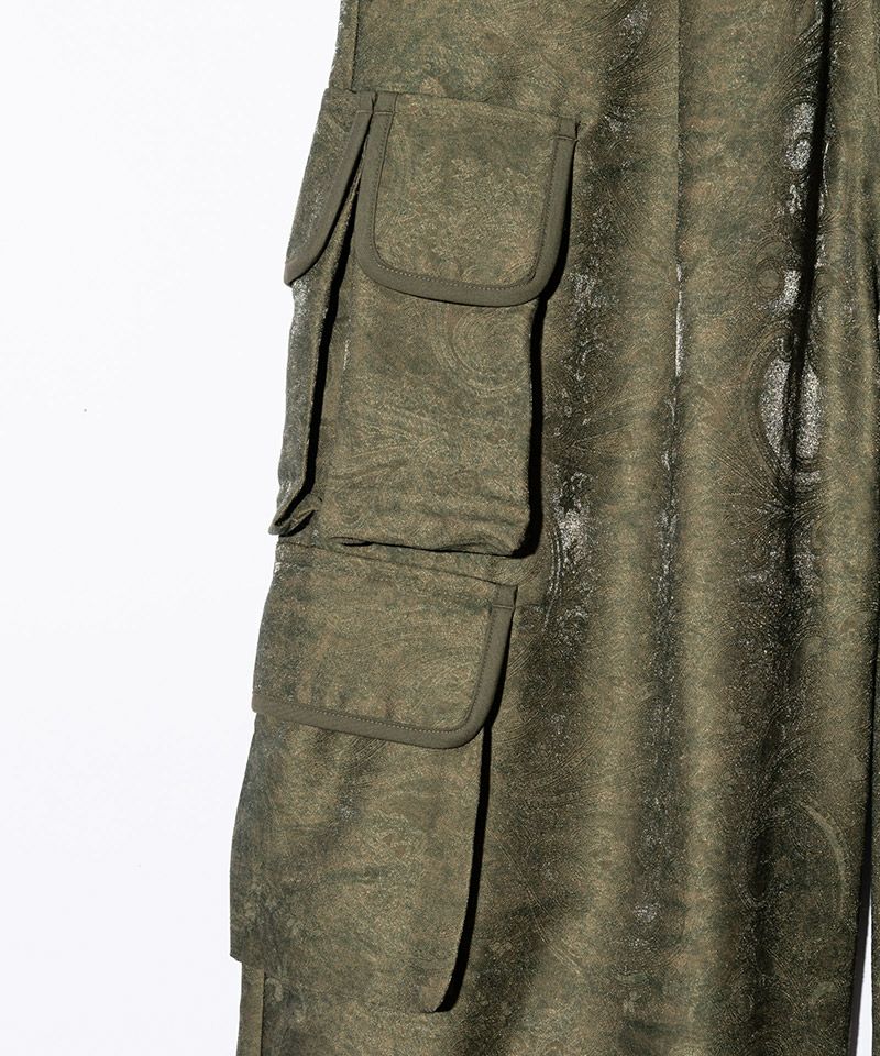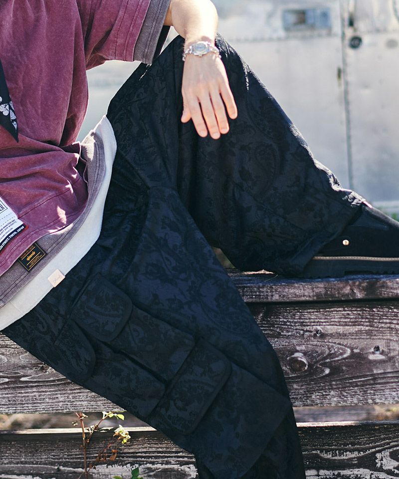 ミリタリーパンツにエレガントなテキスタイルを掛け合わせ、glambならではのラグジュアリーストリートを提案するPaisley Cargo Pants。