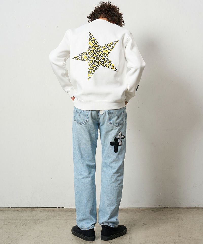 他の画像を見る STUD MUFFIN 【STUD MUFFIN(スタッドマフィン)】TC裏毛起毛 レオパードスター発泡プリント&マルチパッチワーク スエットシャツ(524-02832) ¥ 19,800 税込 お気に入りに登録する