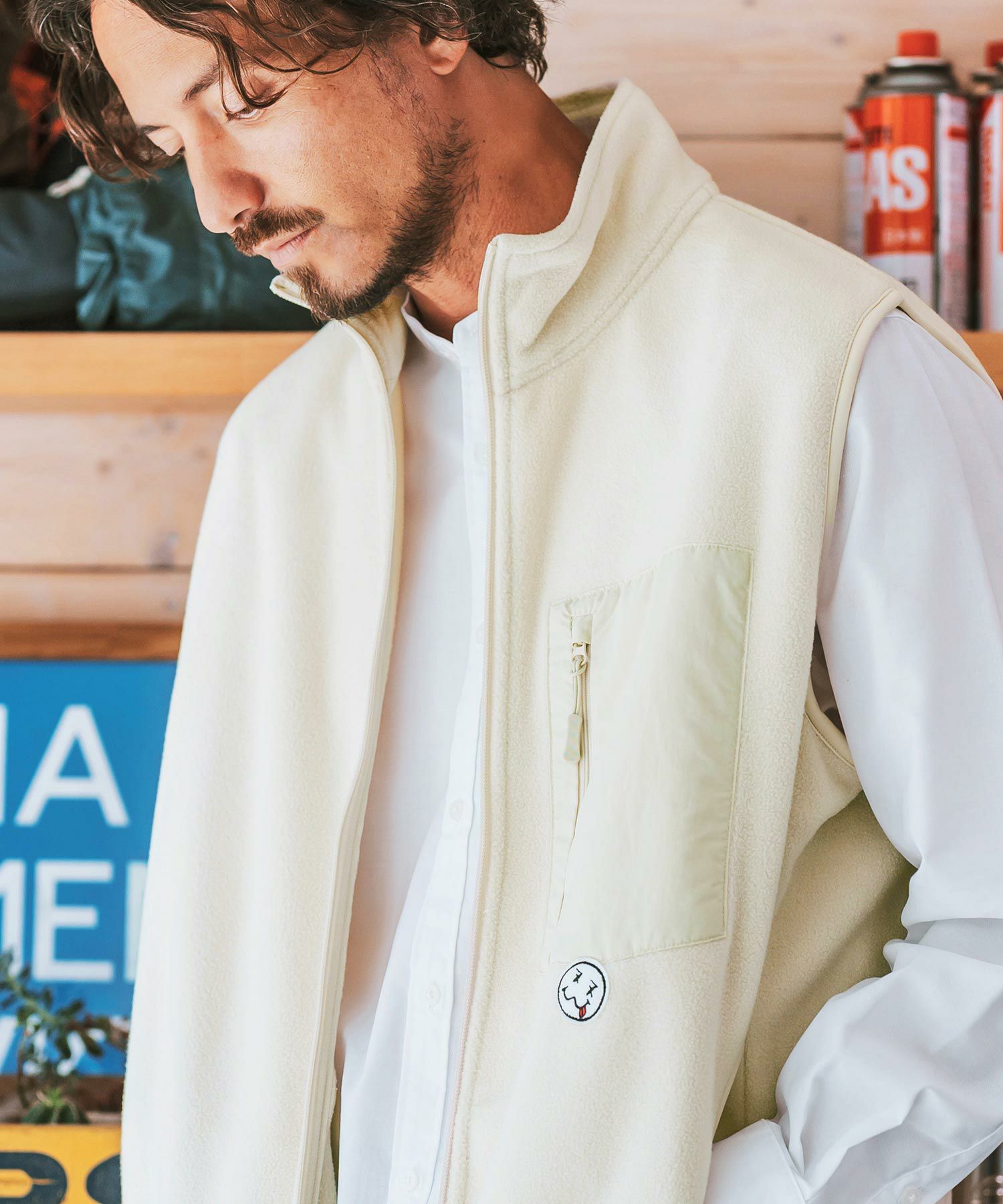 他の画像を見る 1minute 1second 【1minute 1second(ワンミニットワンセカンド)】microfleece zip vest with cursive embroidery フリースジップベスト(1M25F300) ¥ 22,000 税込 お気に入りに登録する