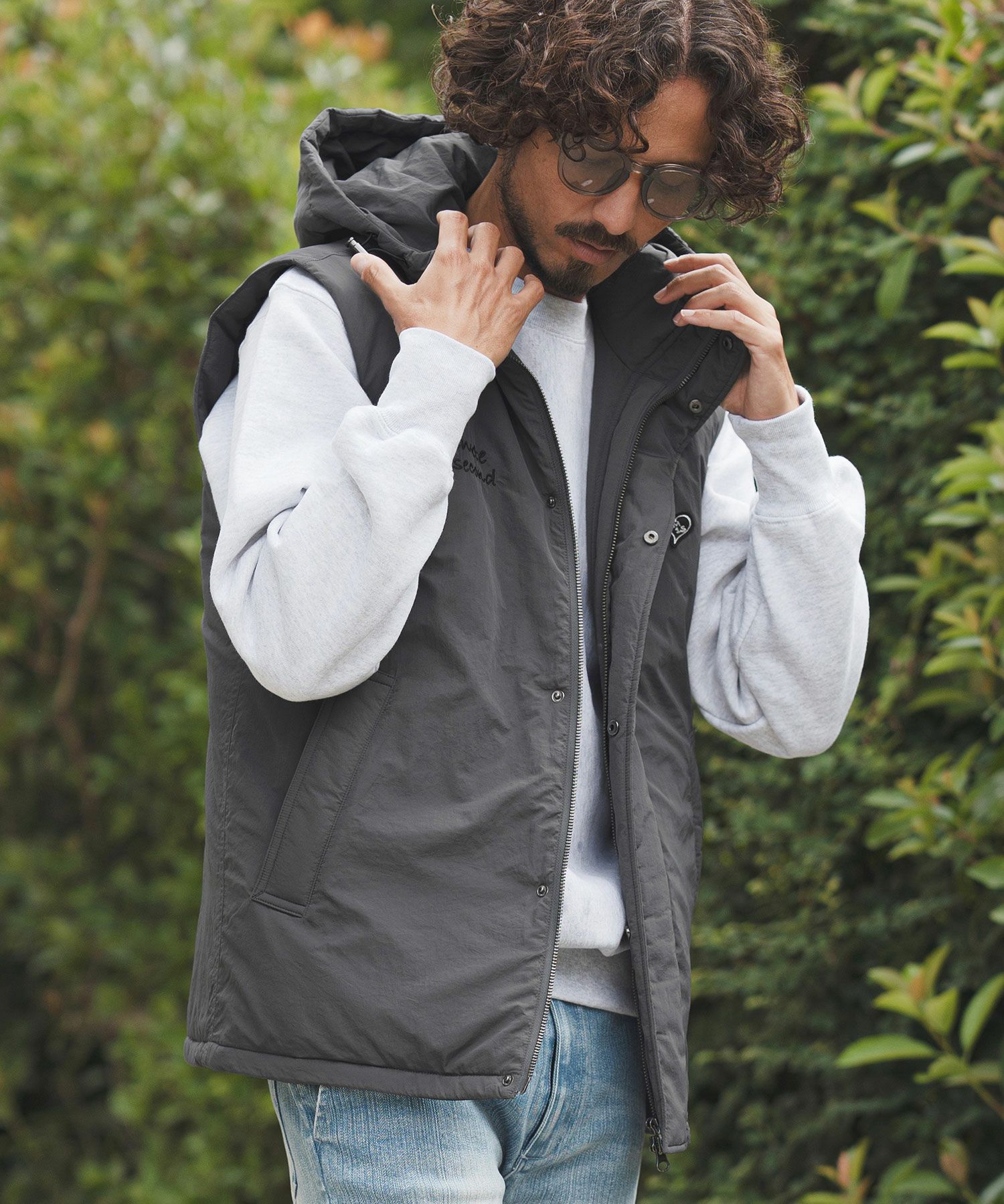 他の画像を見る 1minute 1second 【1minute 1second(ワンミニットワンセカンド)】cursive embroidery hooded vest フーデッドナイロンベスト(1M25F020) ¥ 49,500 税込 お気に入りに登録する