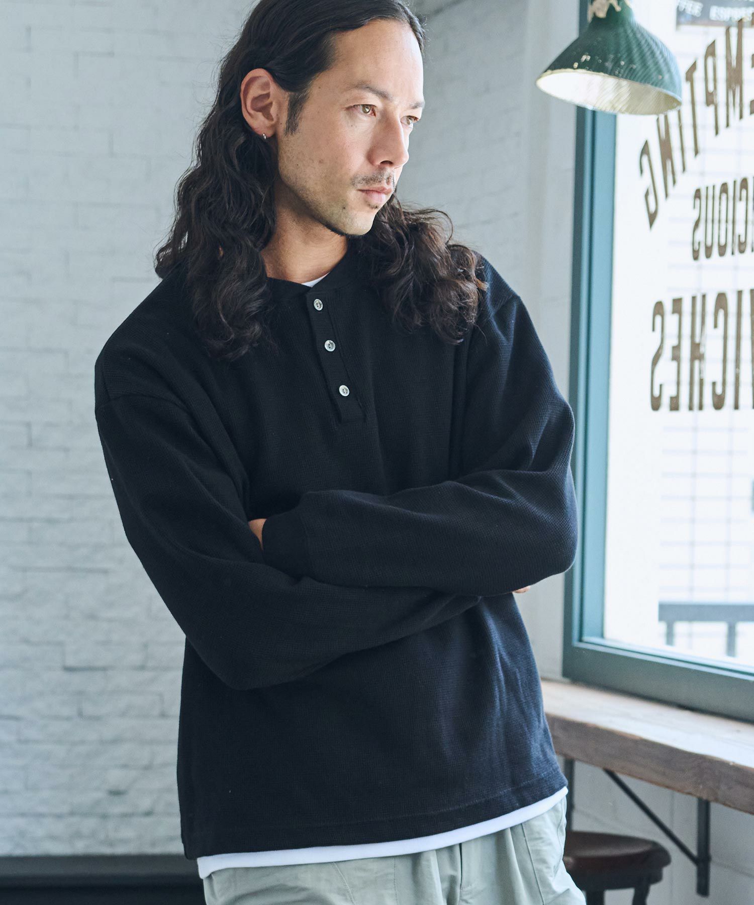 CAMBIO 50%OFF【CAMBIO(カンビオ)】 ワッフルヘンリーネックカットソー(CA-24-33)