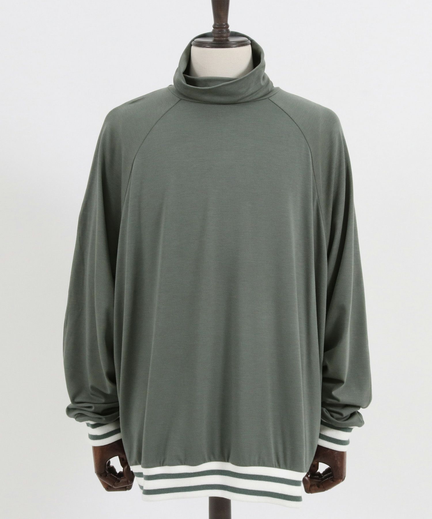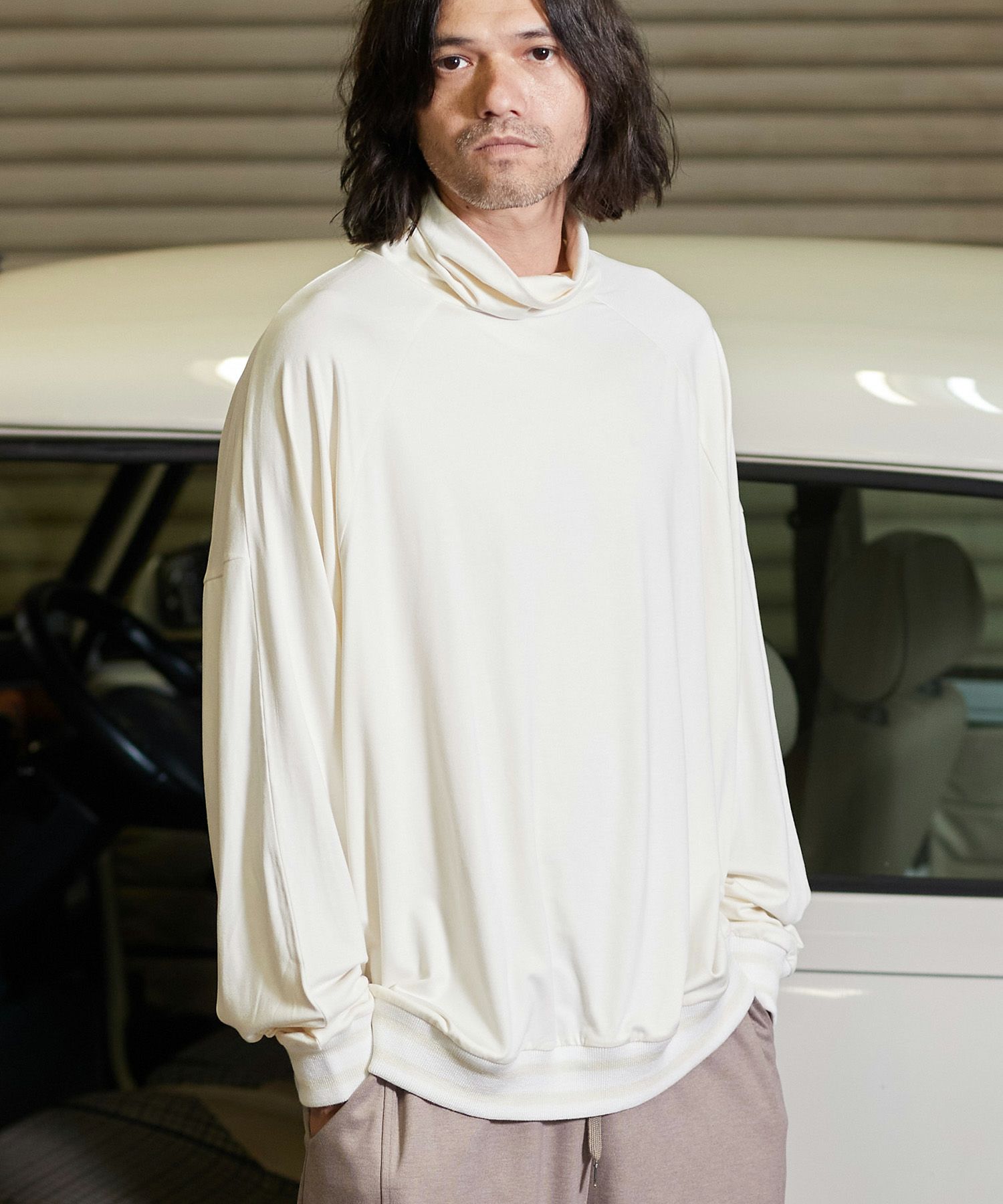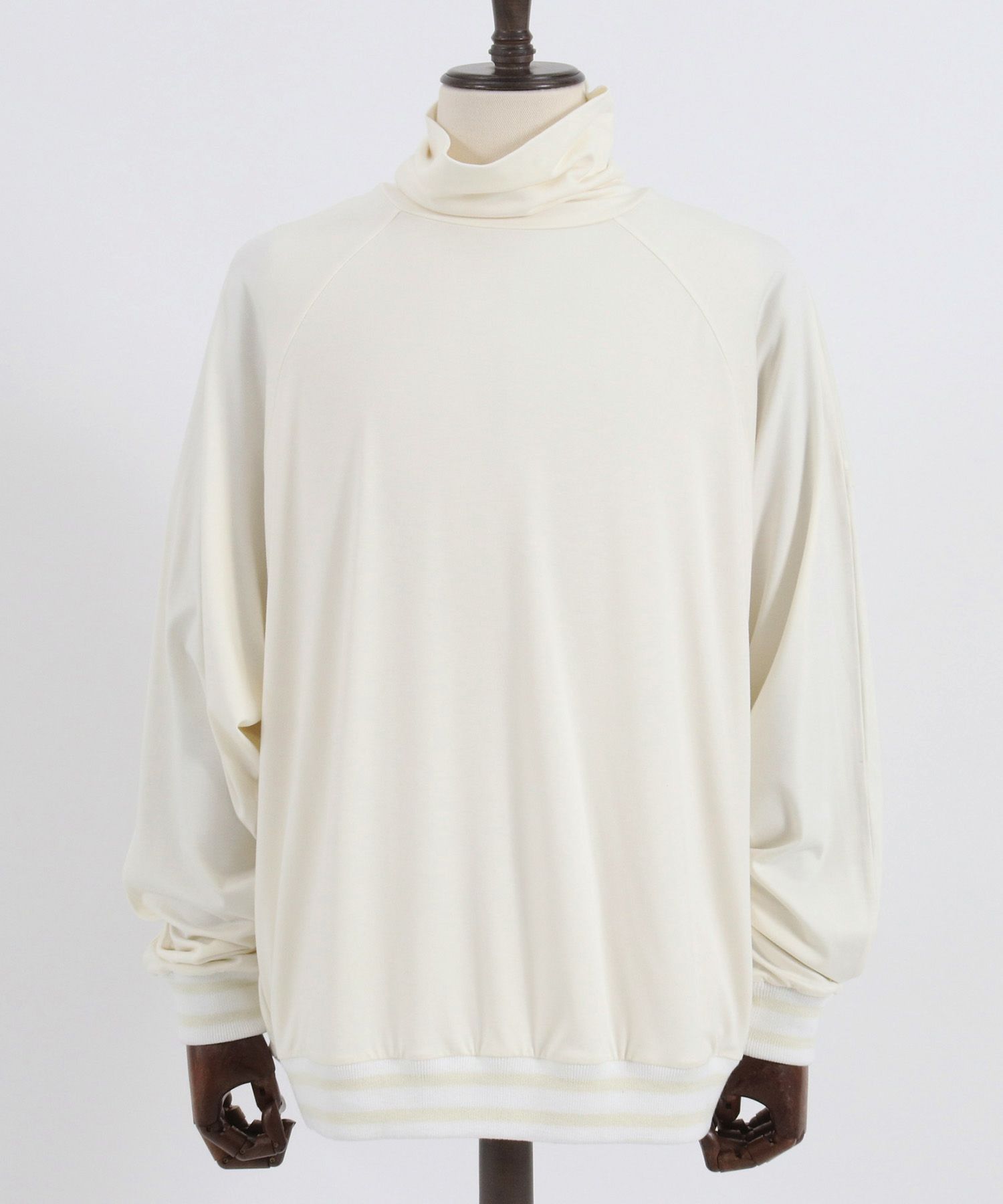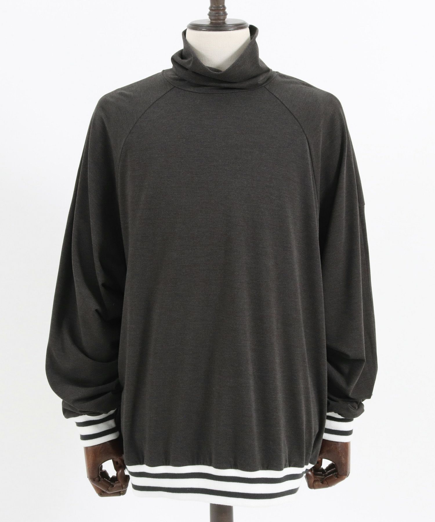 微起毛のカットソー素材を使用したタートルネックTee素材の特性/デザインの特性上、保温機能が高く、ファッション性の高い商品です。