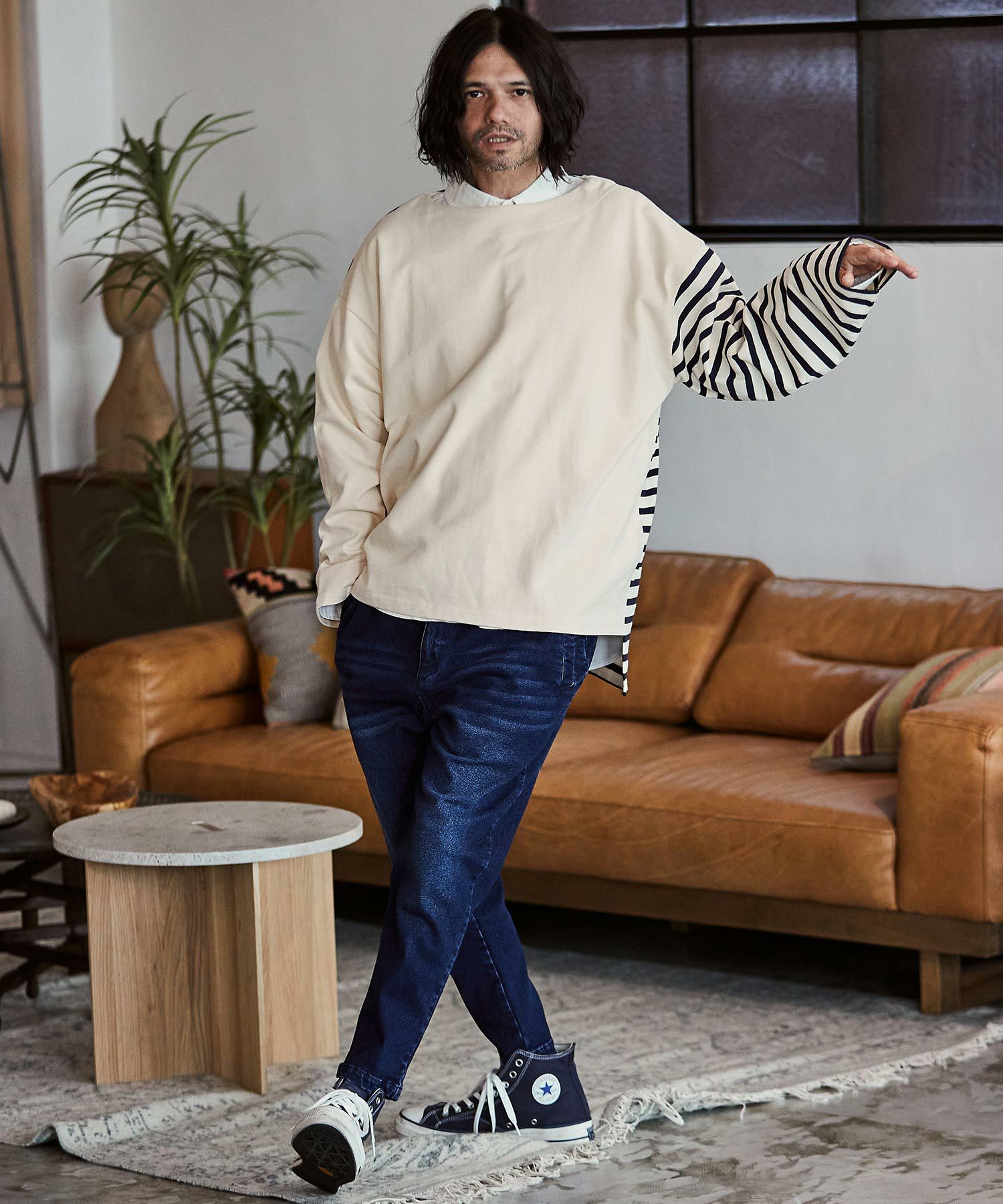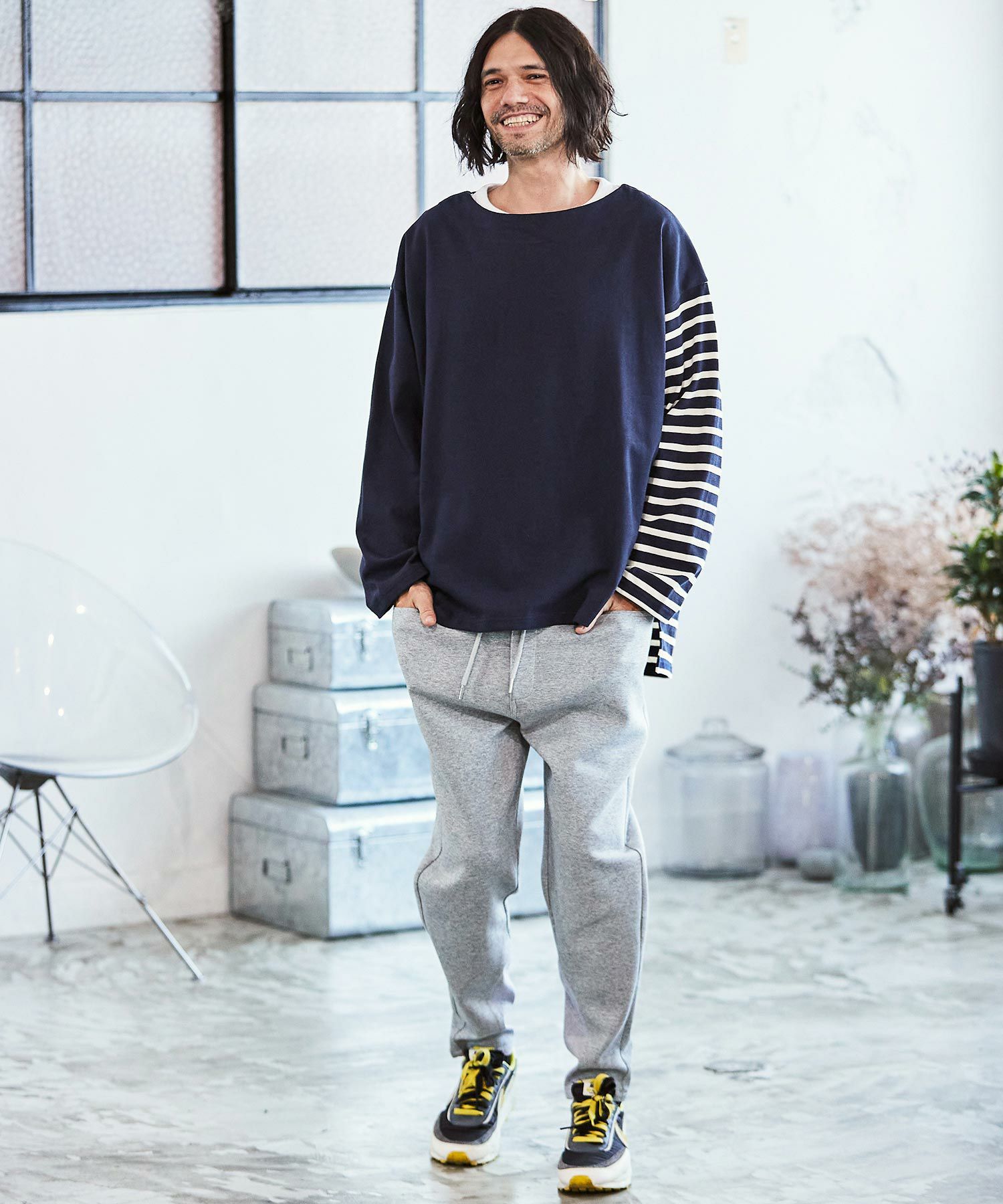 開き過ぎないボートネックの絶妙具合が一枚でもレイヤードでも活躍してくれます。