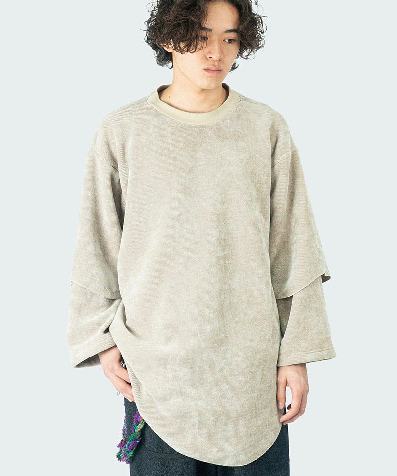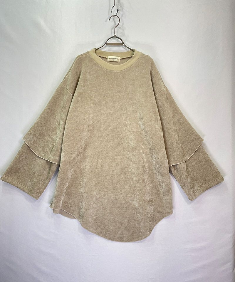 モール糸(少し毛羽立った糸)を使用した変形ロングカットソーです。