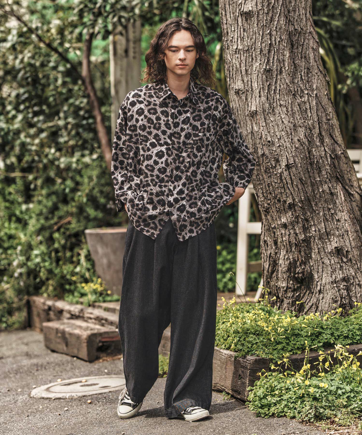 GLIMCLAP 30%OFF【GLIMCLAP(グリムクラップ)】Triple-pleated trousers-Brushed texture & Full patterned textile- ワイドストレートパンツ(19-029-gla-cf)