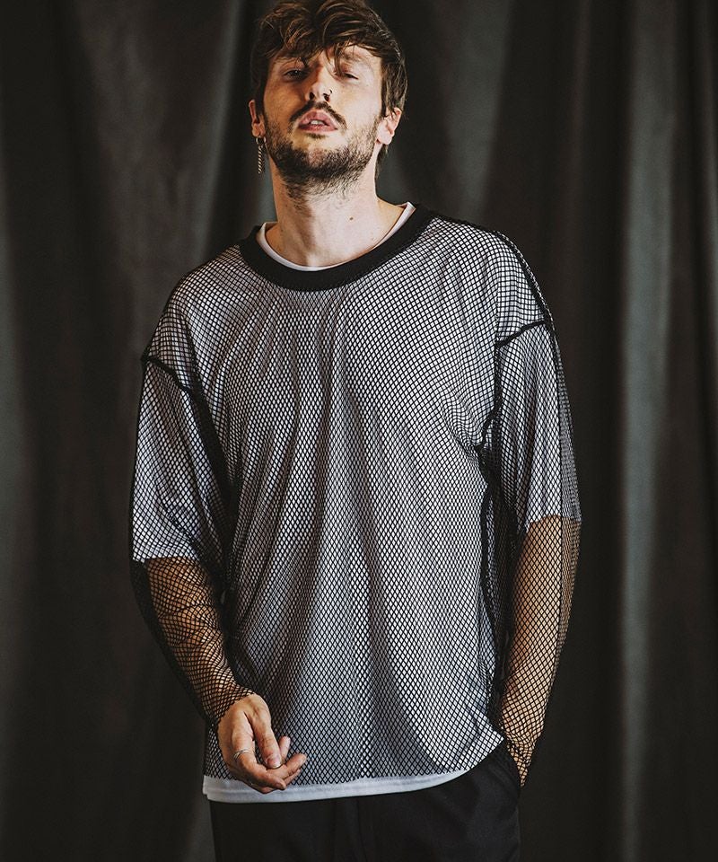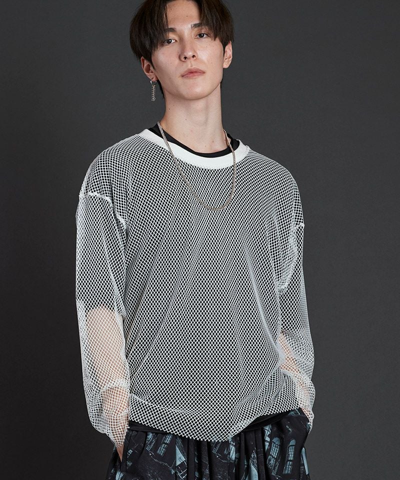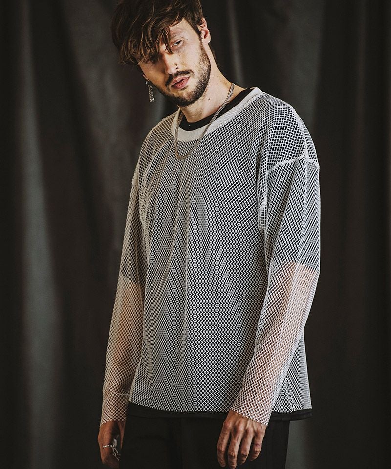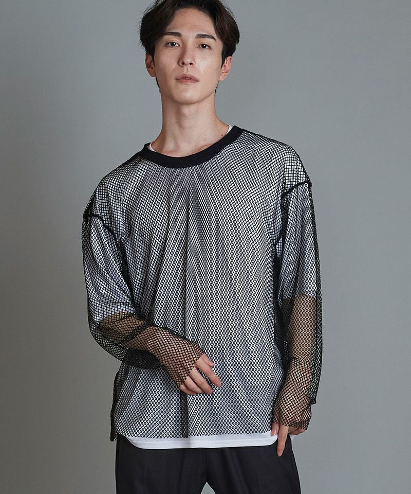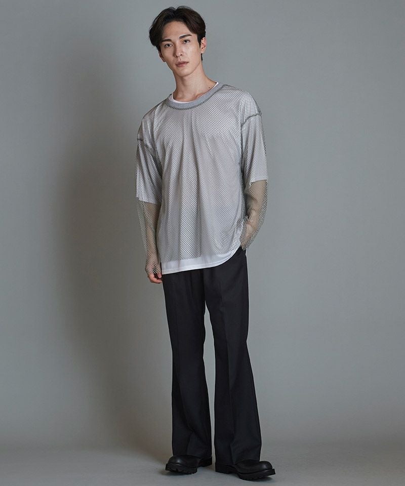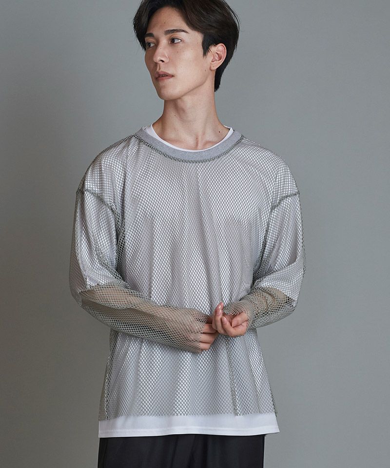 NO ID. 70%OFF【NO ID.(ノーアイディー)】レイヤードメッシュロンT カットソー(455006-824T)