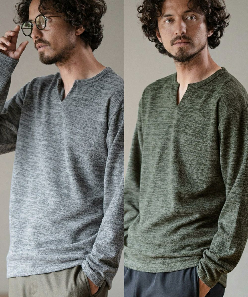 ダウンの下に1枚でサラッと着れるかな?と思って購入したのですが、裏地はあまり着心地が良くなくて、Vネックの下着を着て上に着るようにしてます。デザインも良いですが、グレーを購入しましてが綺麗な色味で気に入ってます。