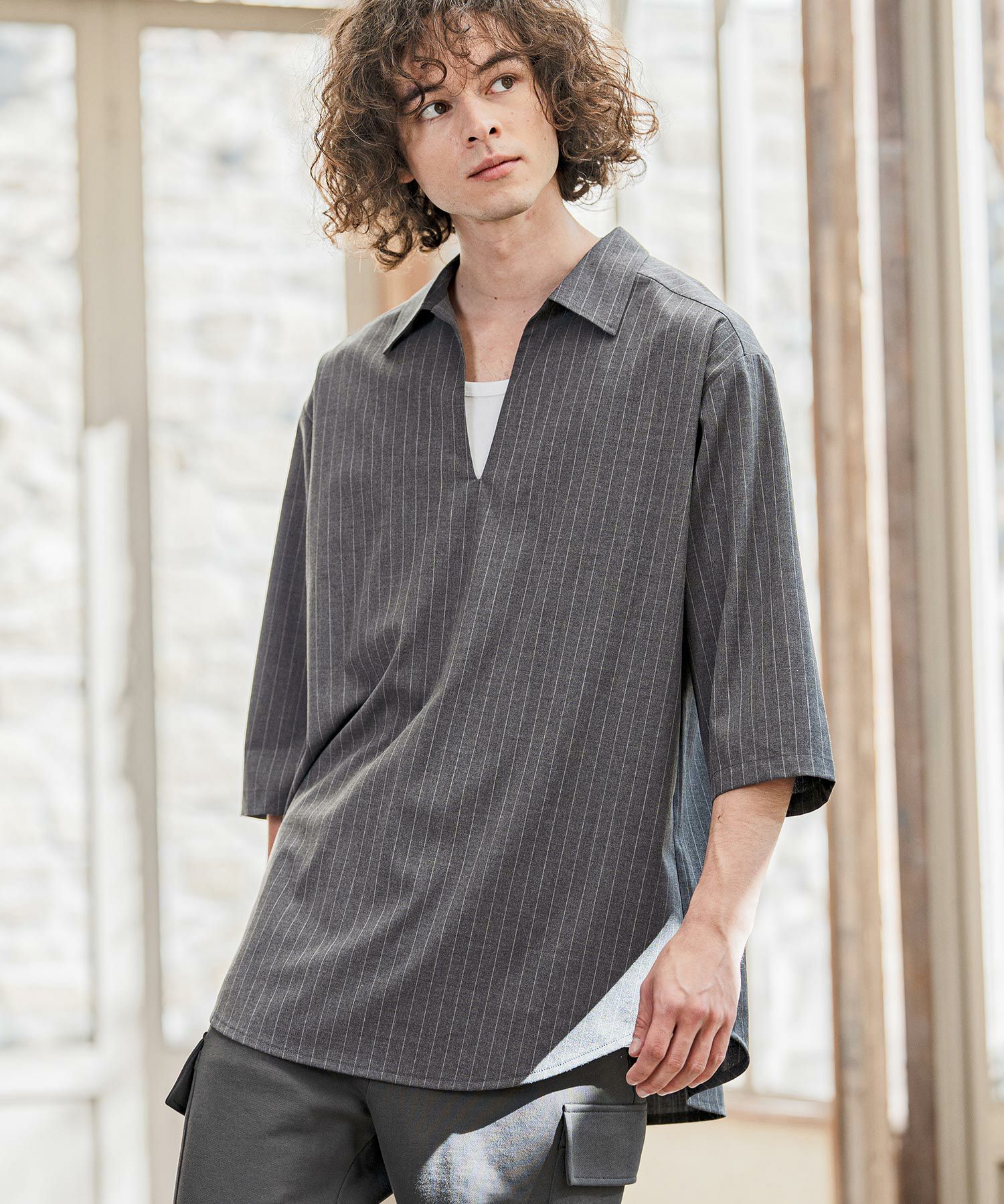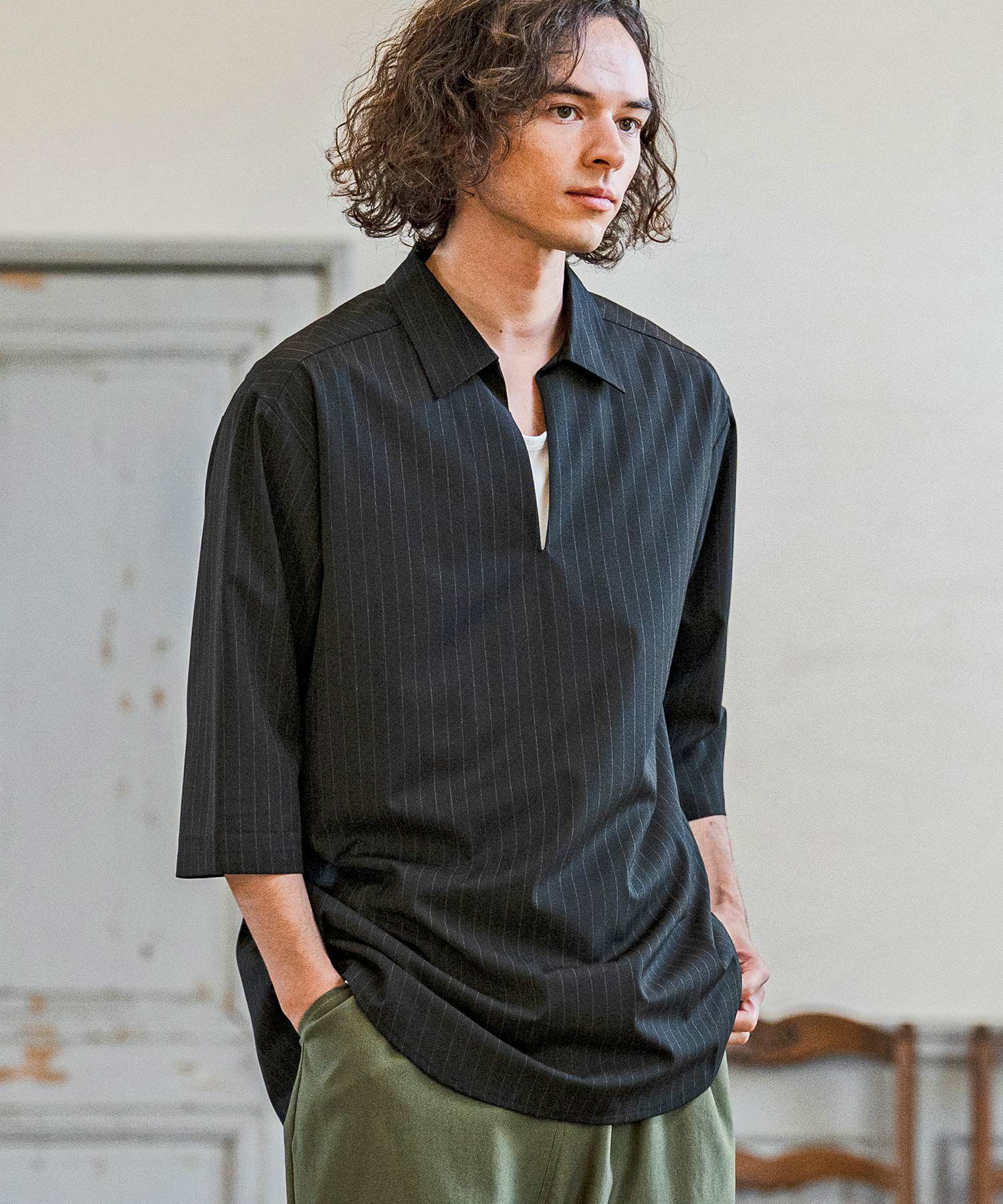 他の画像を見る 予約商品 ポイント10倍 CAMBIO 【CAMBIO(カンビオ)】【予約販売4月下旬~5月上旬入荷】Classic Pinstripe Skipper 3-4 Sleeve Pullover Shirts 七分袖プルオーバーシャツ(S67826cmb) ¥ 13,750 税込 お気に入りに登録する