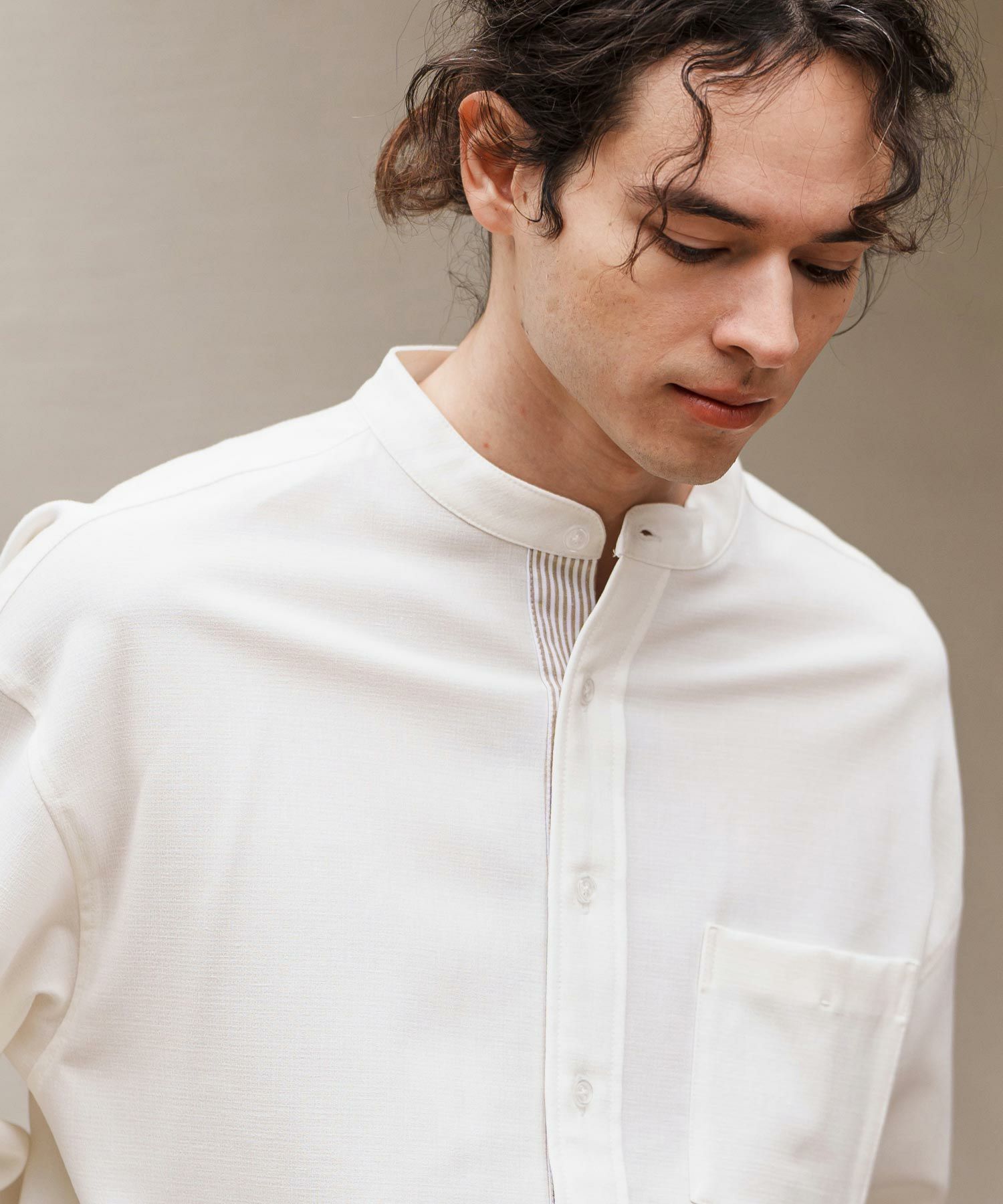 他の画像を見る wjk reluxe 【wjk reluxe】ripstop no collar hook shirts ノーカラーフックシャツ(WR25S-01) ¥ 29,700 税込 お気に入りに登録する